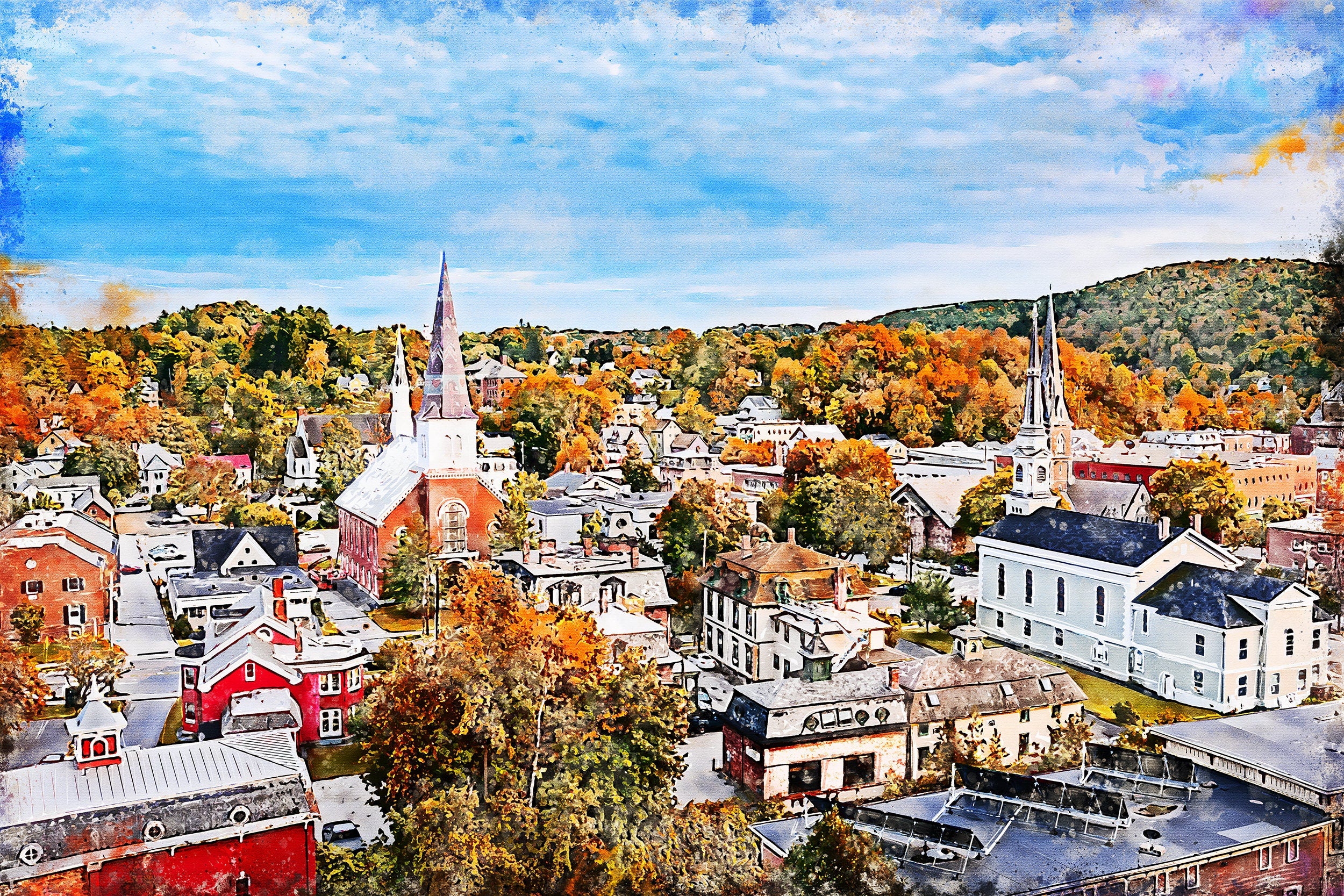 Montpelier Vermont watercolor canvas, Vermont watercolor Canvas, Montpelier Vermont Wall Art, watercolor.,city watercolor