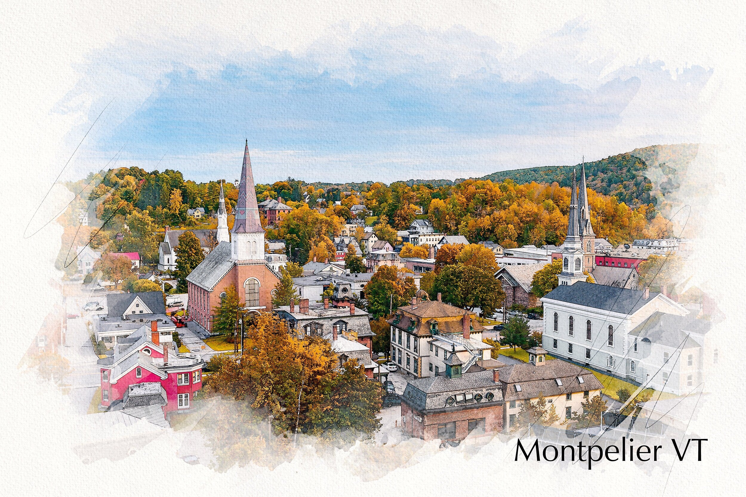 Lovely watercolor of Montpelier on canvas framed and ready to hang. Stunning colors that make for the perfect wall decor. Montpelier watercolor wall art