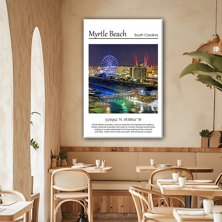 Embrace the allure of Myrtle Beach in your home today with this luxurious canvas print. Transform your space and bask in the beauty of this iconic destination. Add a touch of coastal elegance to your decor with this Myrtle Beach travel art canvas print.