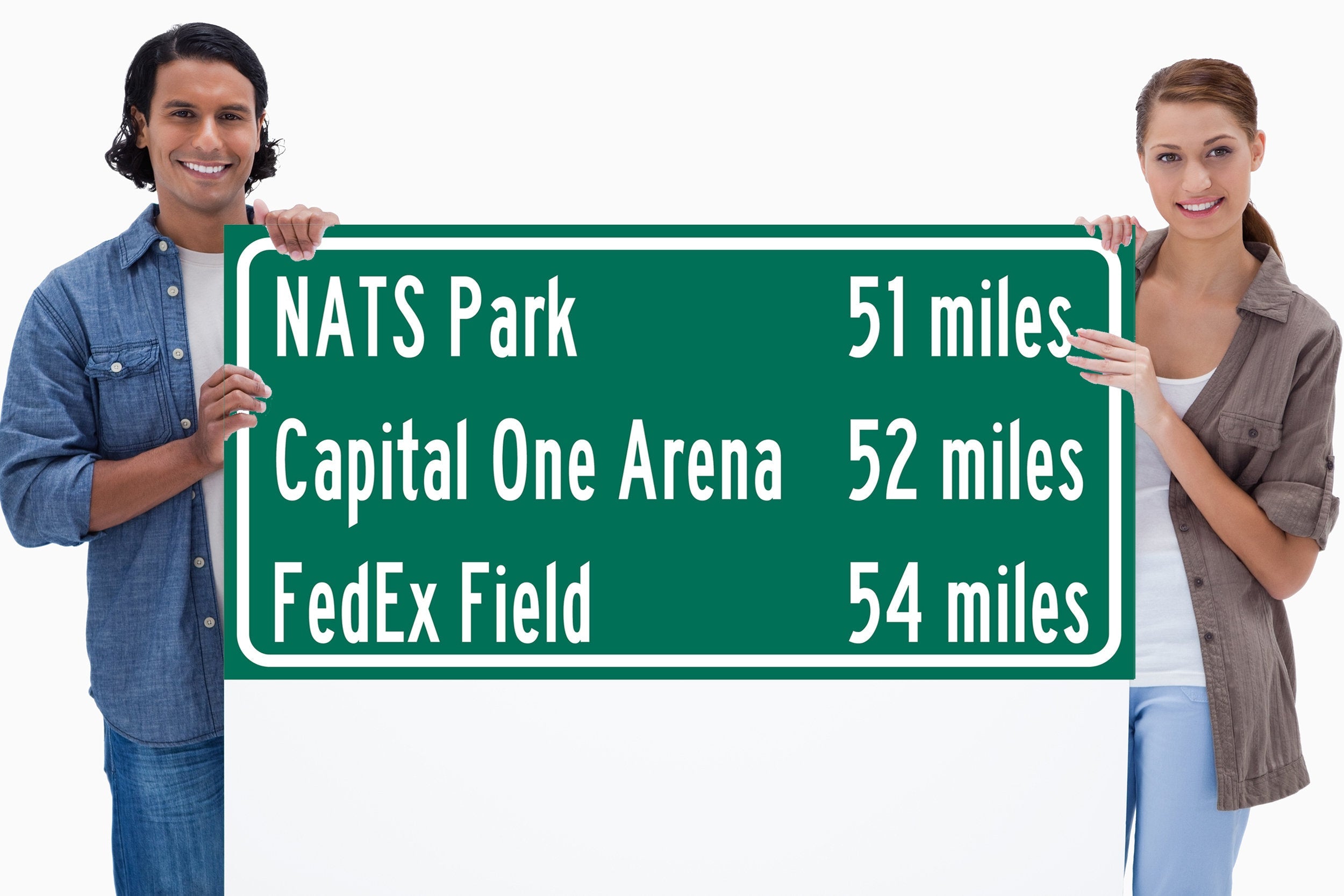 Nationals Park/Fed Ex Field/Capital One arena/ Washington Nationals, WTF, Washington Capitals |Distance Sign | Mileage Sign | Highway Sign