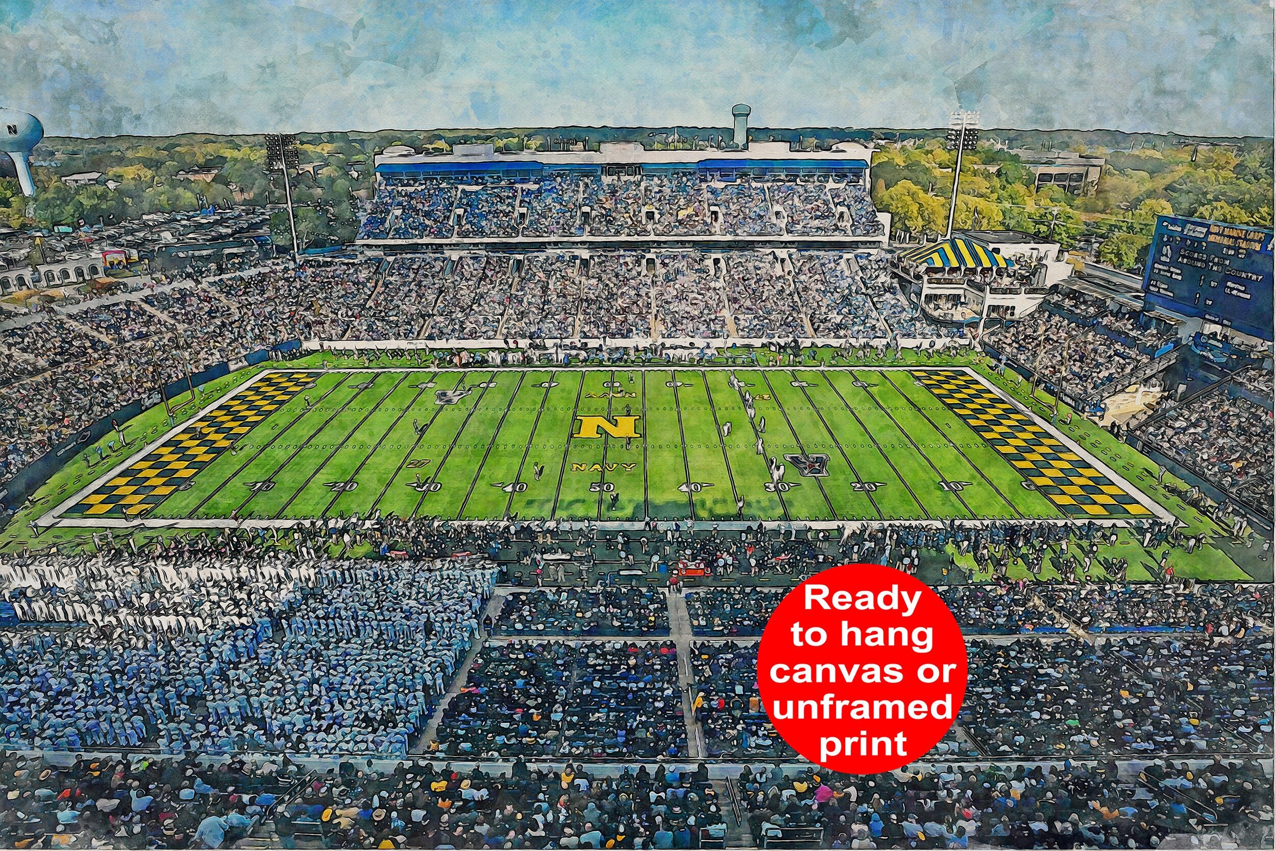 Navy Midshipmen , Navy-Marine Corps Memorial Stadium , Watercolor Digital Sketch Print Canvas Print , United States Naval Academy