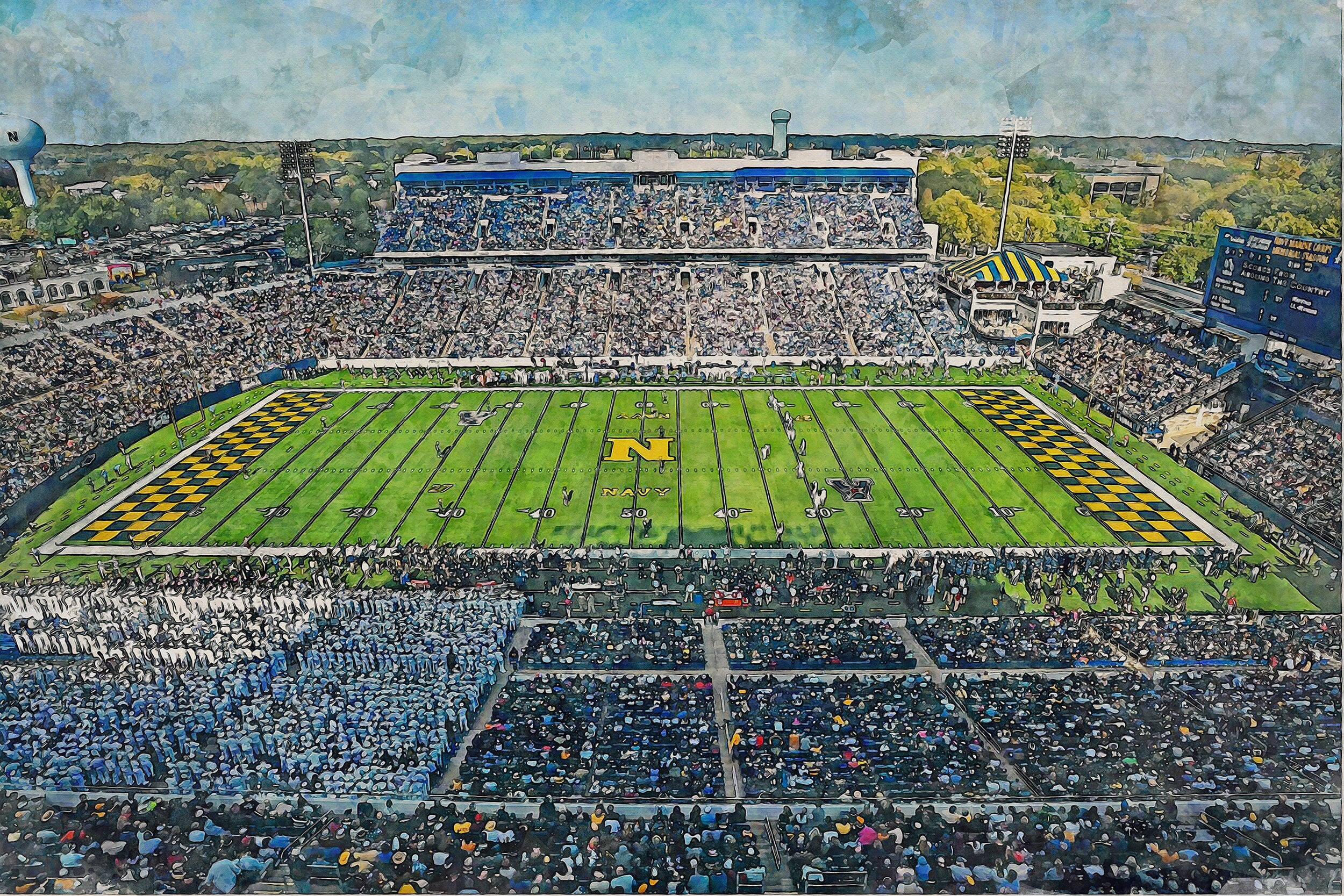 Beautiful Digital watercolor of Navy-Marine Corps Memorial Stadium at United States Naval Academy