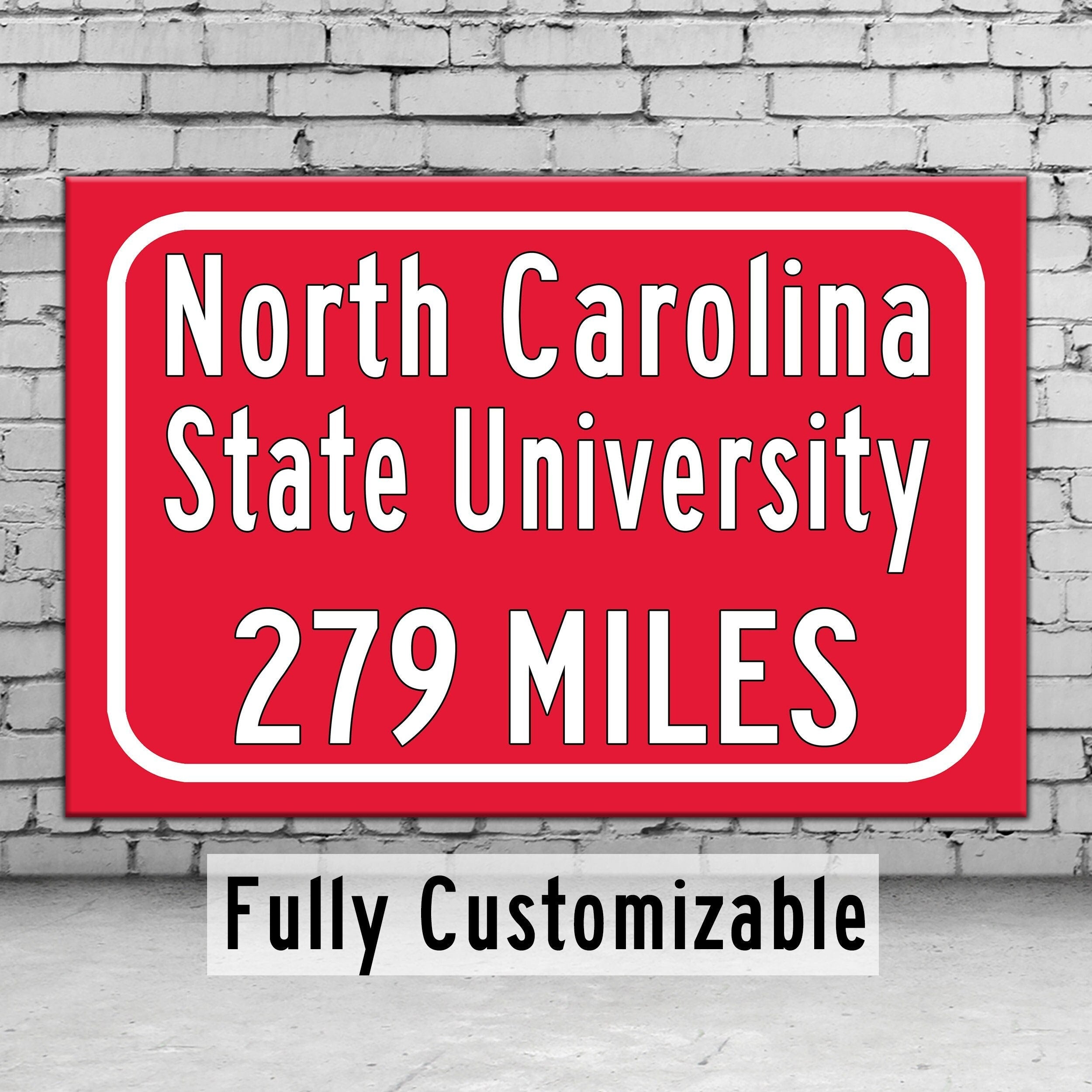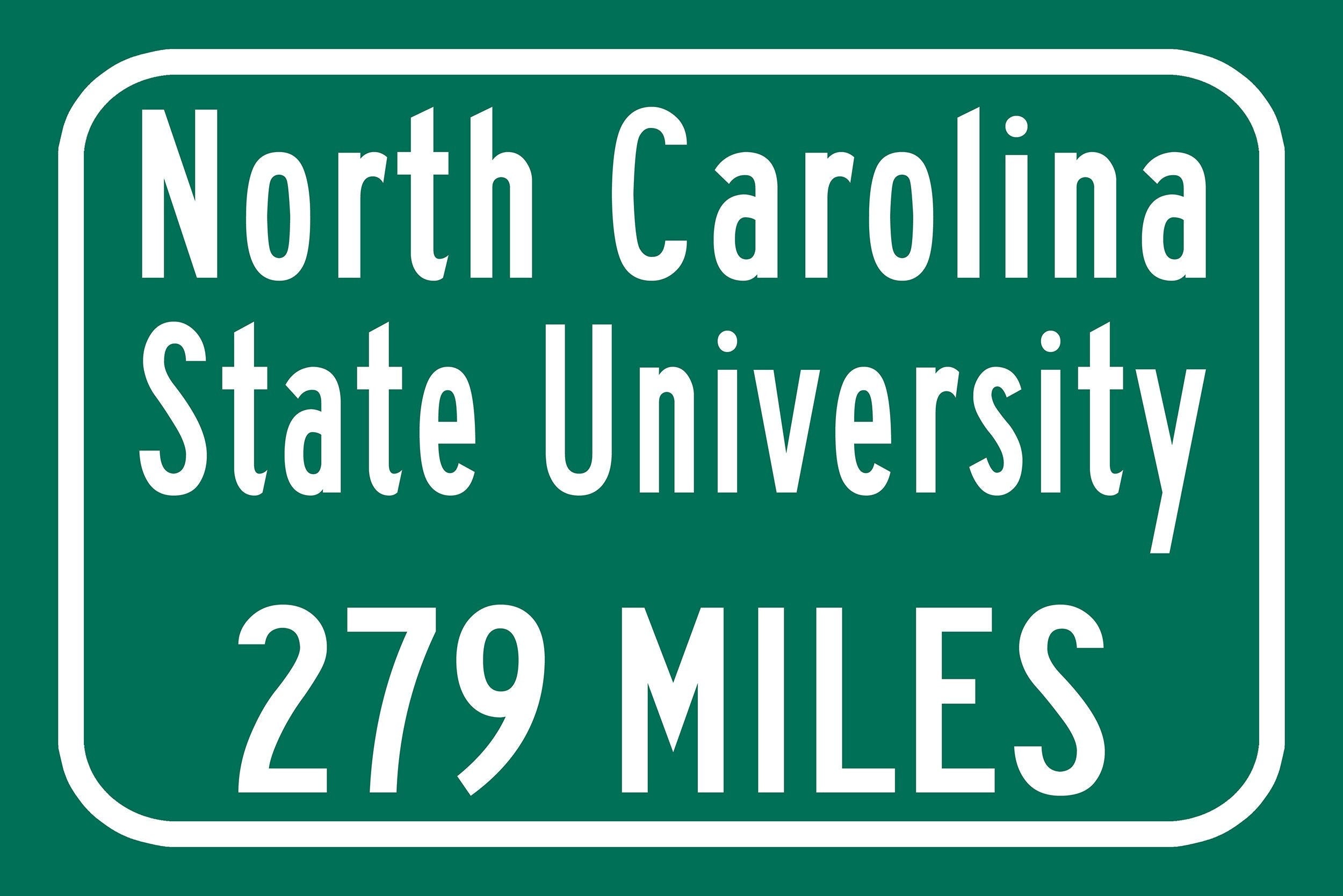 Personalized Highway Distance sign to North Carolina State. North Carolina State sign. North Carolina Wolfpack sign.