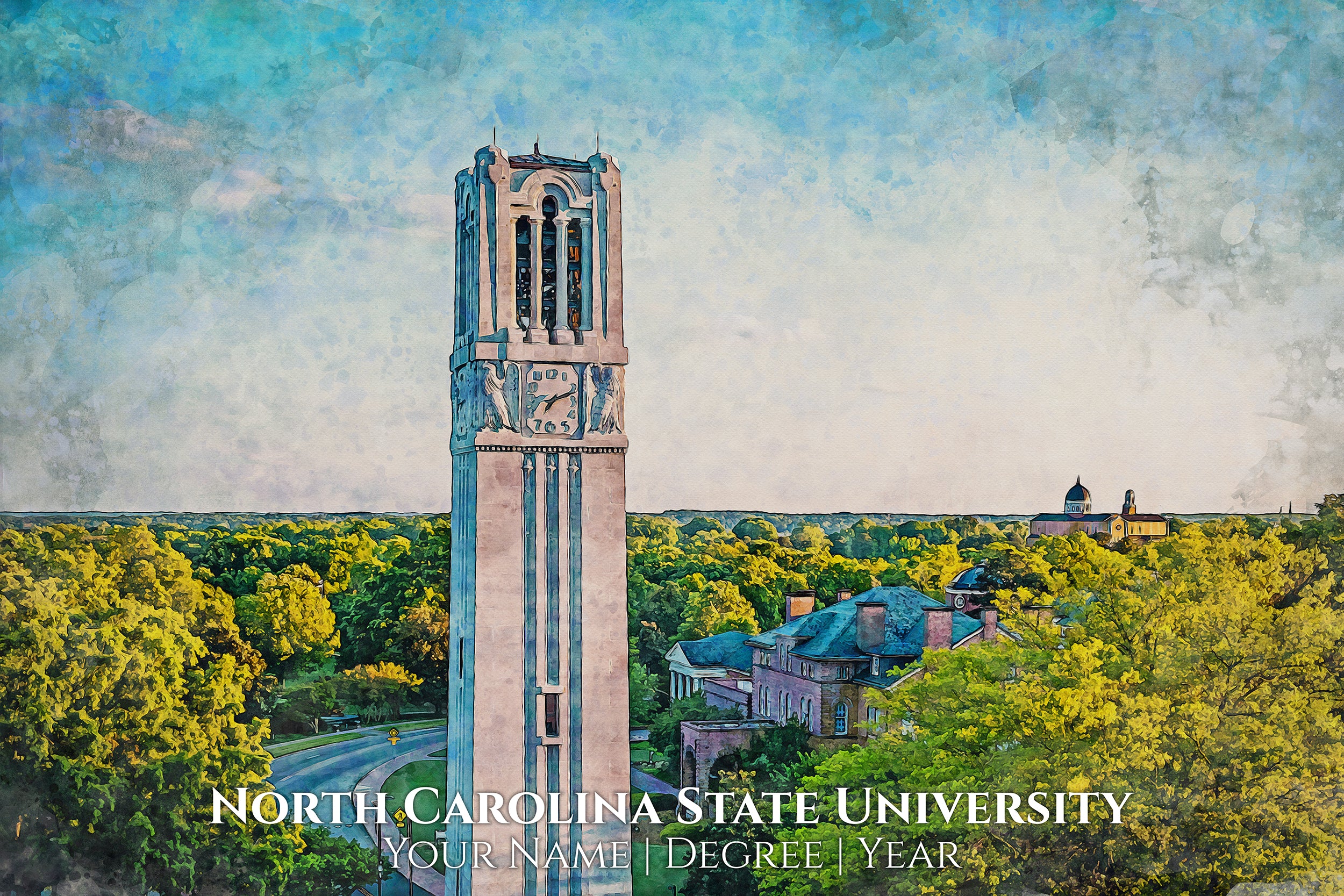 You will love these watercolor digital prints of North Carolina State University. Perfect for a graduation gift. These make wonderful gift for North Carolina State University Alumni and fans. Feel free to customize it as well when you check out. We will send a proof for you to approve before we print so please check your email about 24hrs after you order