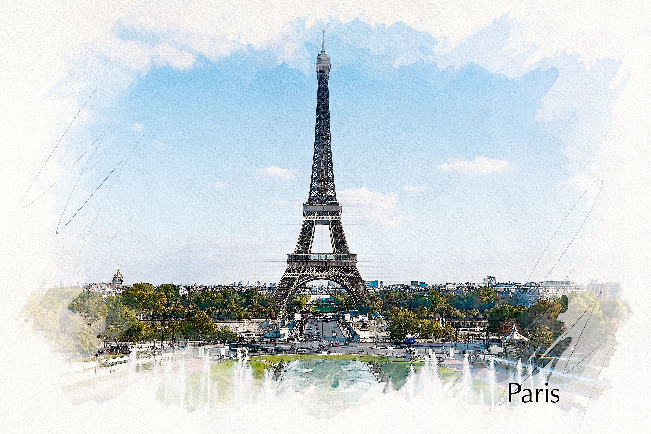 Stunning Photo of the Paris France skyline. Great for a piece of wall art. Great for a piece of wall art. Available as a single canvas at 16″ x 24″ , 24″ x 36″ , or 32″ x 48″ or we can make you a special 3 panel work of art. Paris watercolor