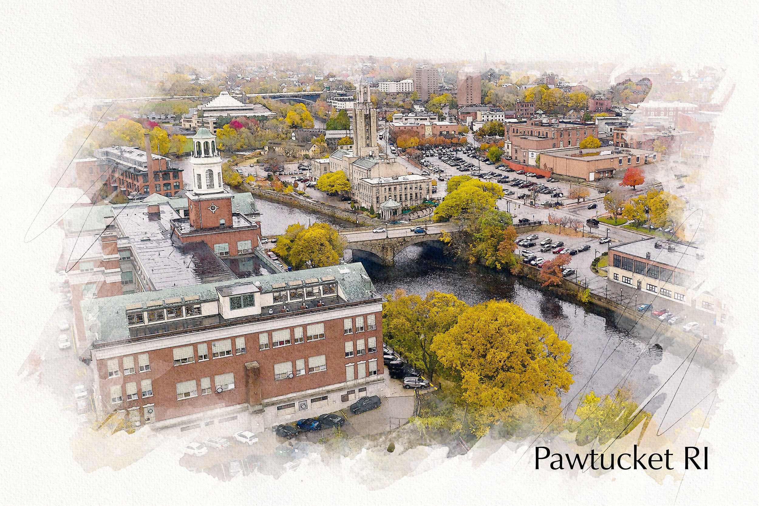 The beautiful watercolor of Pawtucket on canvas and ready to hang. Stunning colors that make for the perfect wall decor. Pawtucket RI watercolor canvas