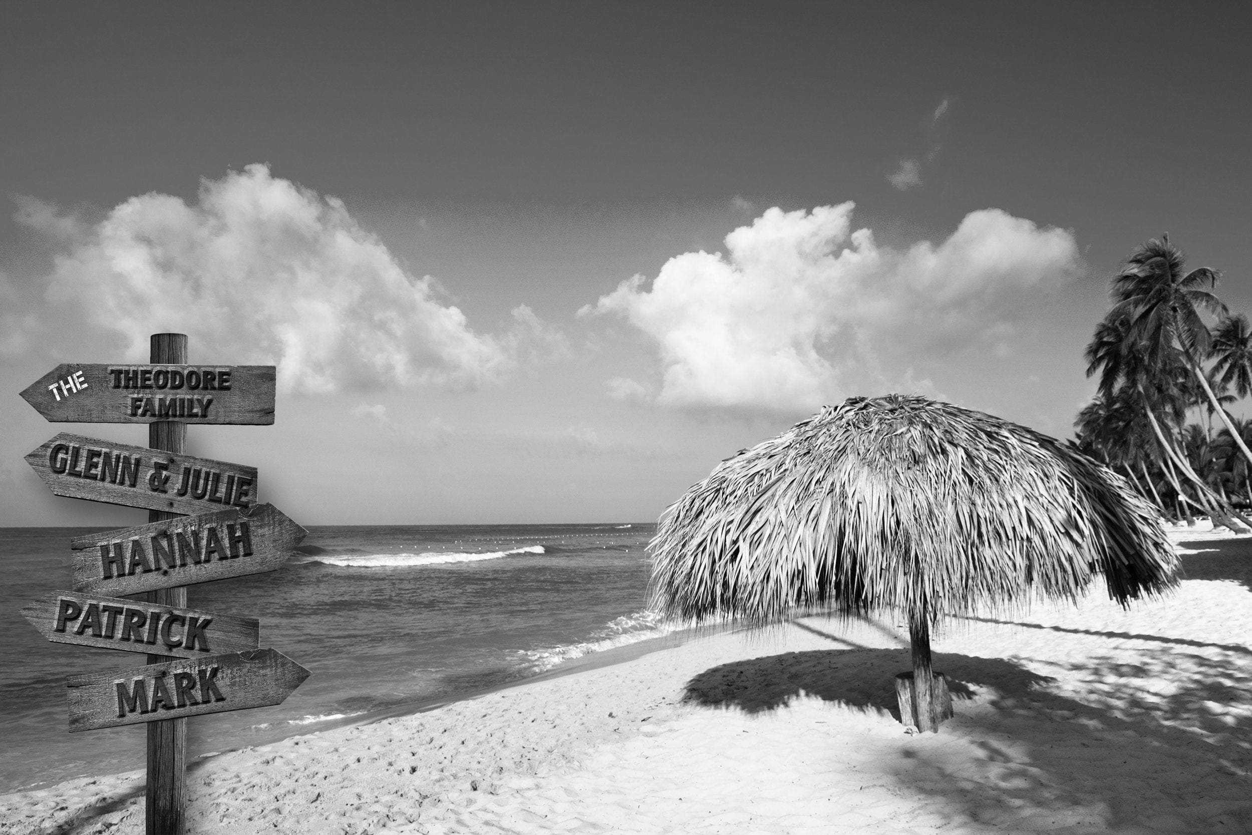 Personalized with multiple names on a beautiful beach printed on canvas and mounted. This is a perfect family gift for those closest to you. Our fabulous print is customized with your family names. After ordering, leave personalization and check your email within 24 hours for a proof. We will not print until you approve the proof. Family multi names gift