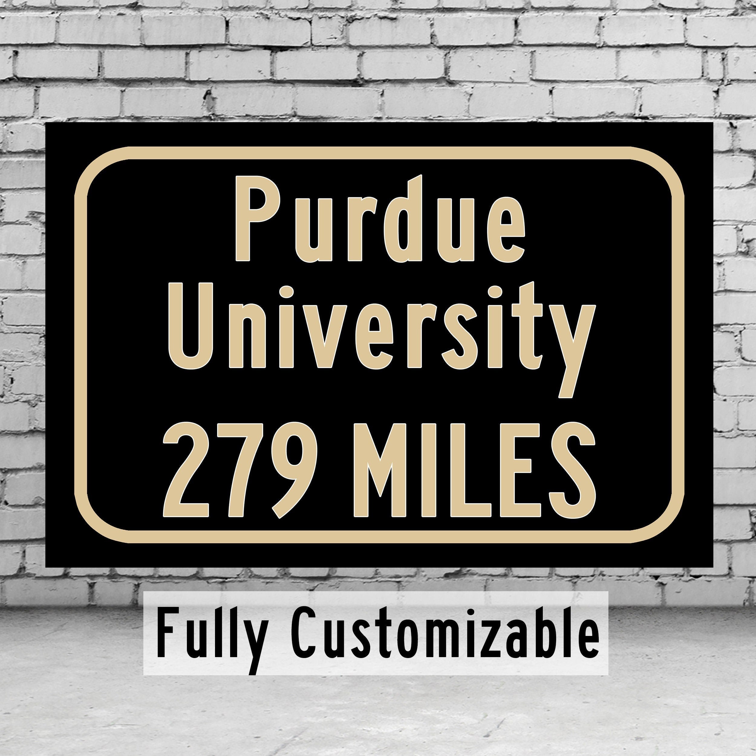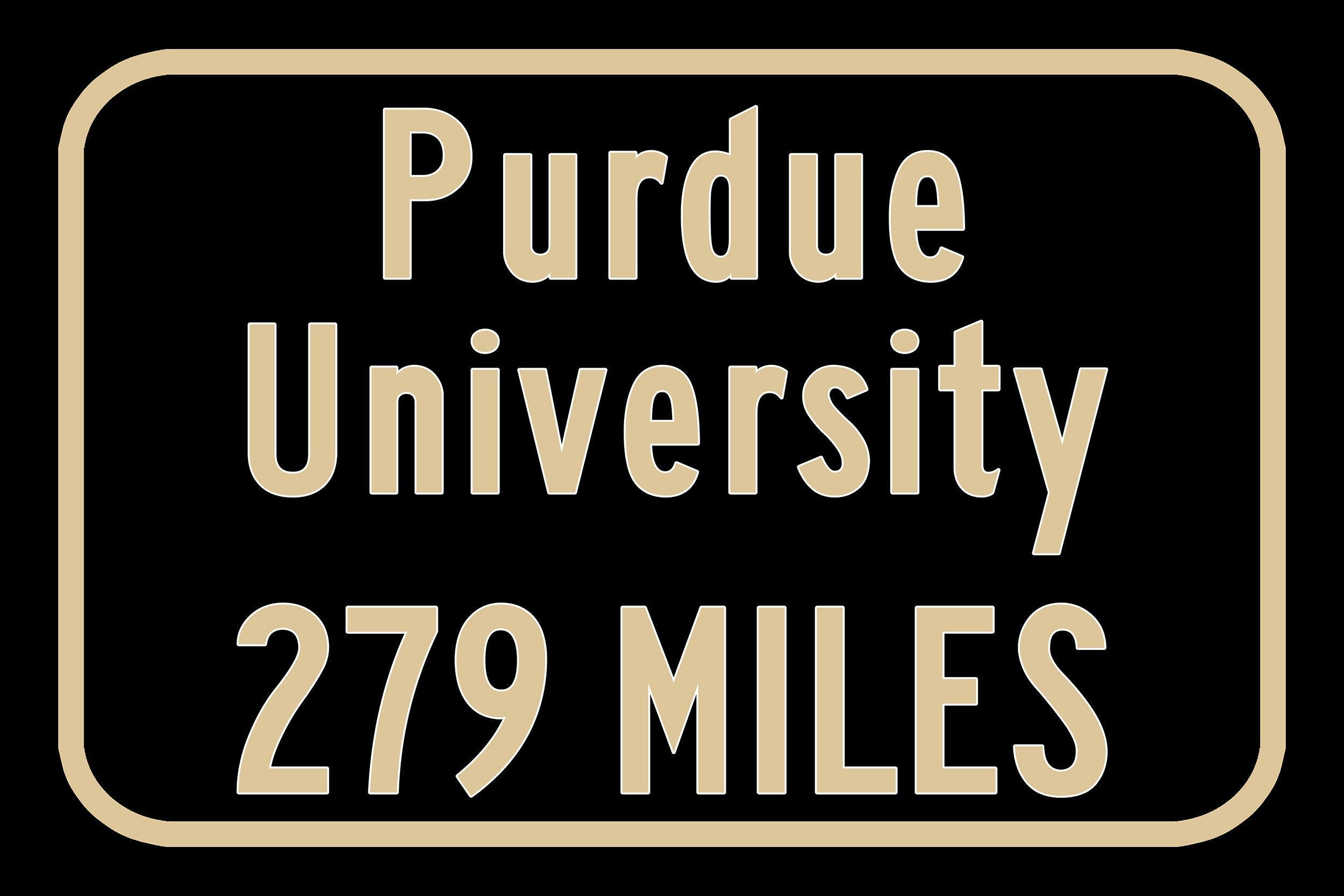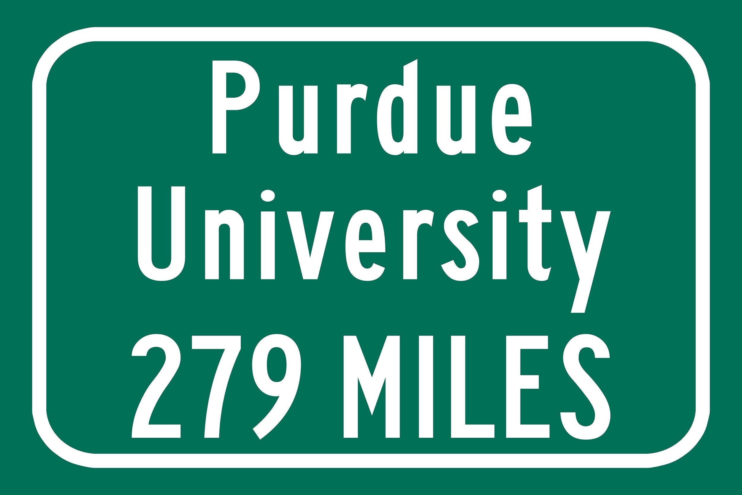 Personalized Highway Distance sign to Purdue University in West Lafayette . Purdue University Boilermaker Sign