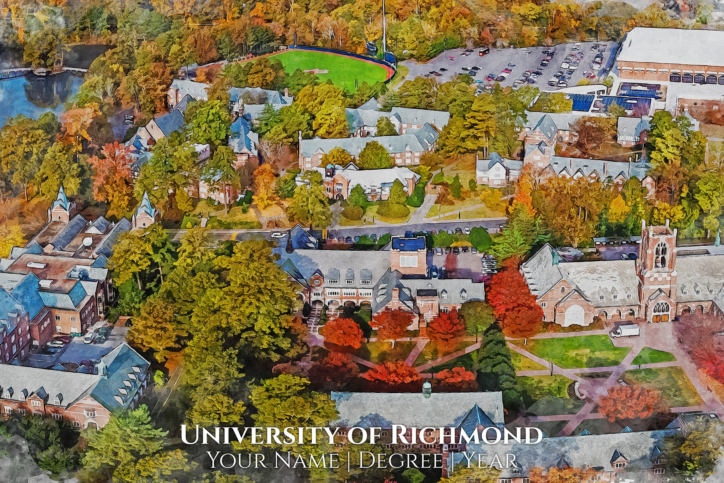 You will love these watercolor digital prints of Richmond University . Perfect for a graduation gift. These make wonderful gift for Richmond University Alumni and fans. Feel free to customize it as well when you check out. We will send a proof for you to approve before we print so please check your email about 24hrs after you order