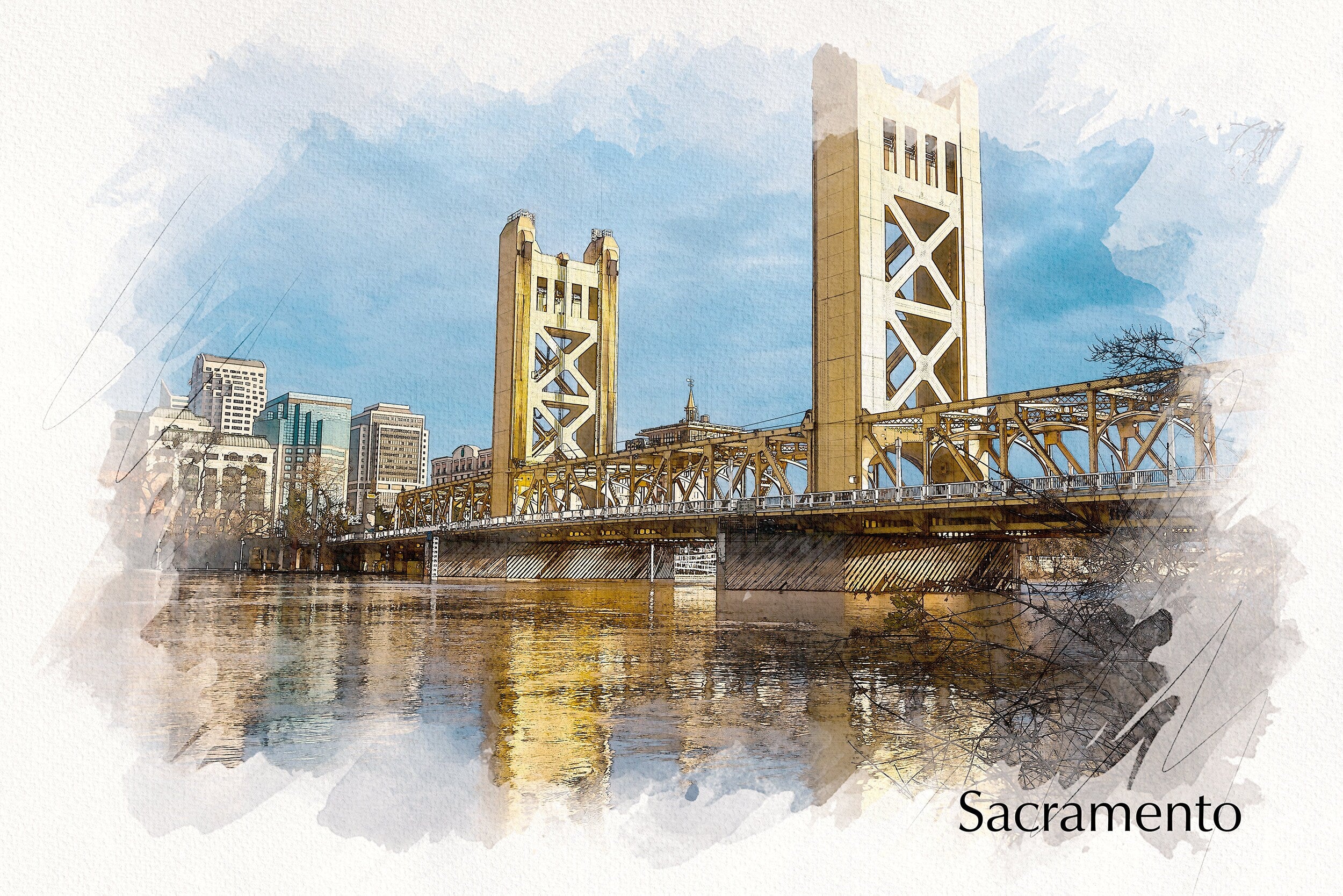 Stunning Photo of the Sacramento California skyline. Great for a piece of wall art. Available as a single canvas at 16″ x 24″ , 24″ x 36″ , or 32″ x 48″ or we can make you a special 3 panel work of art or if you prefer, a digital download and you can print it your self. (no physical product sent) Sacramento watercolor wall art