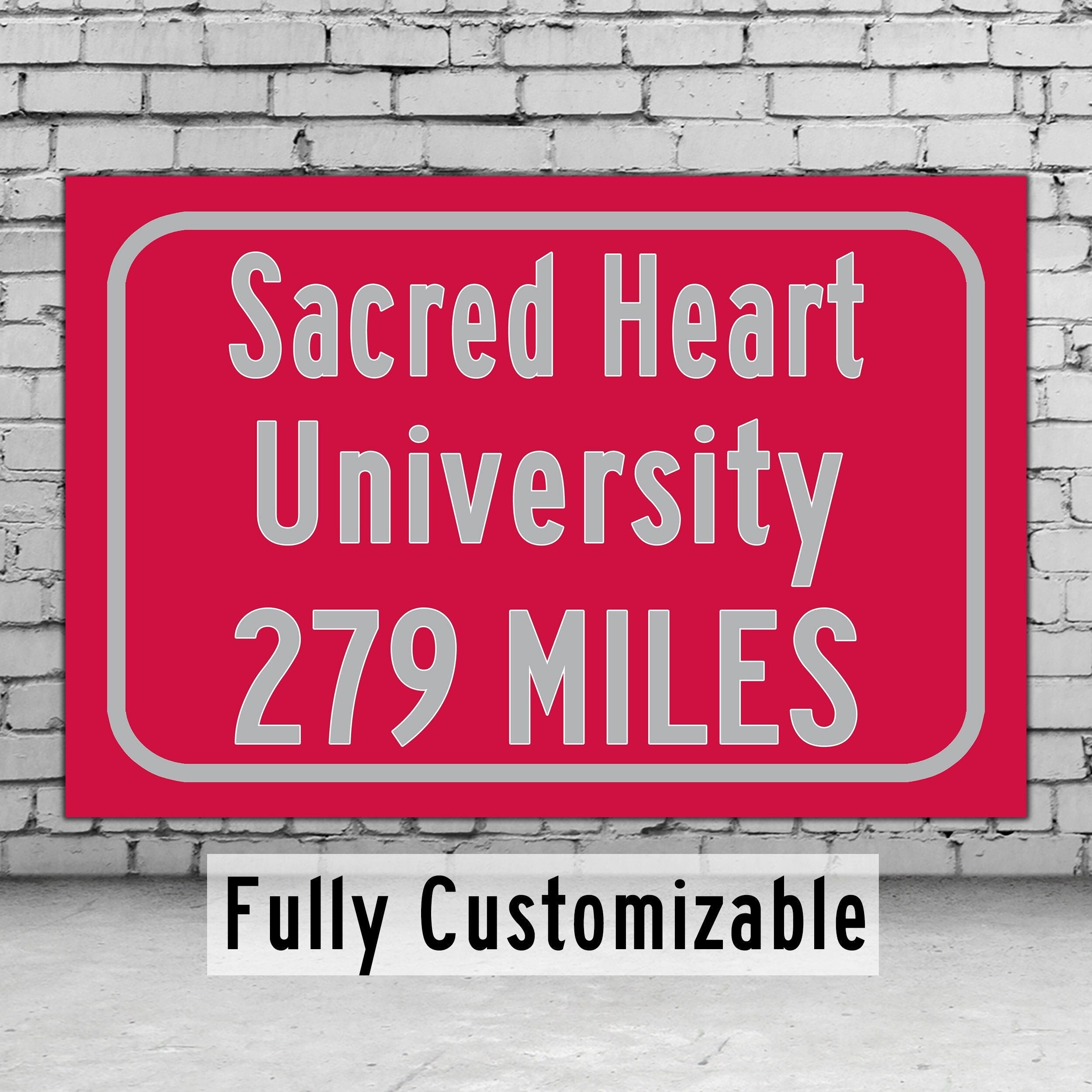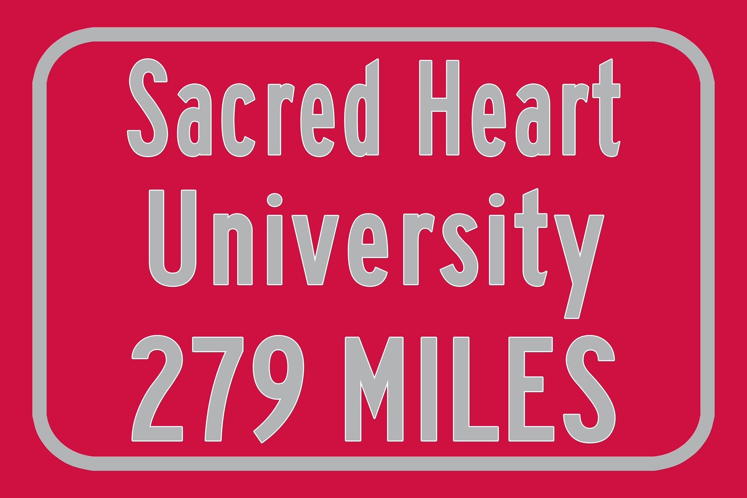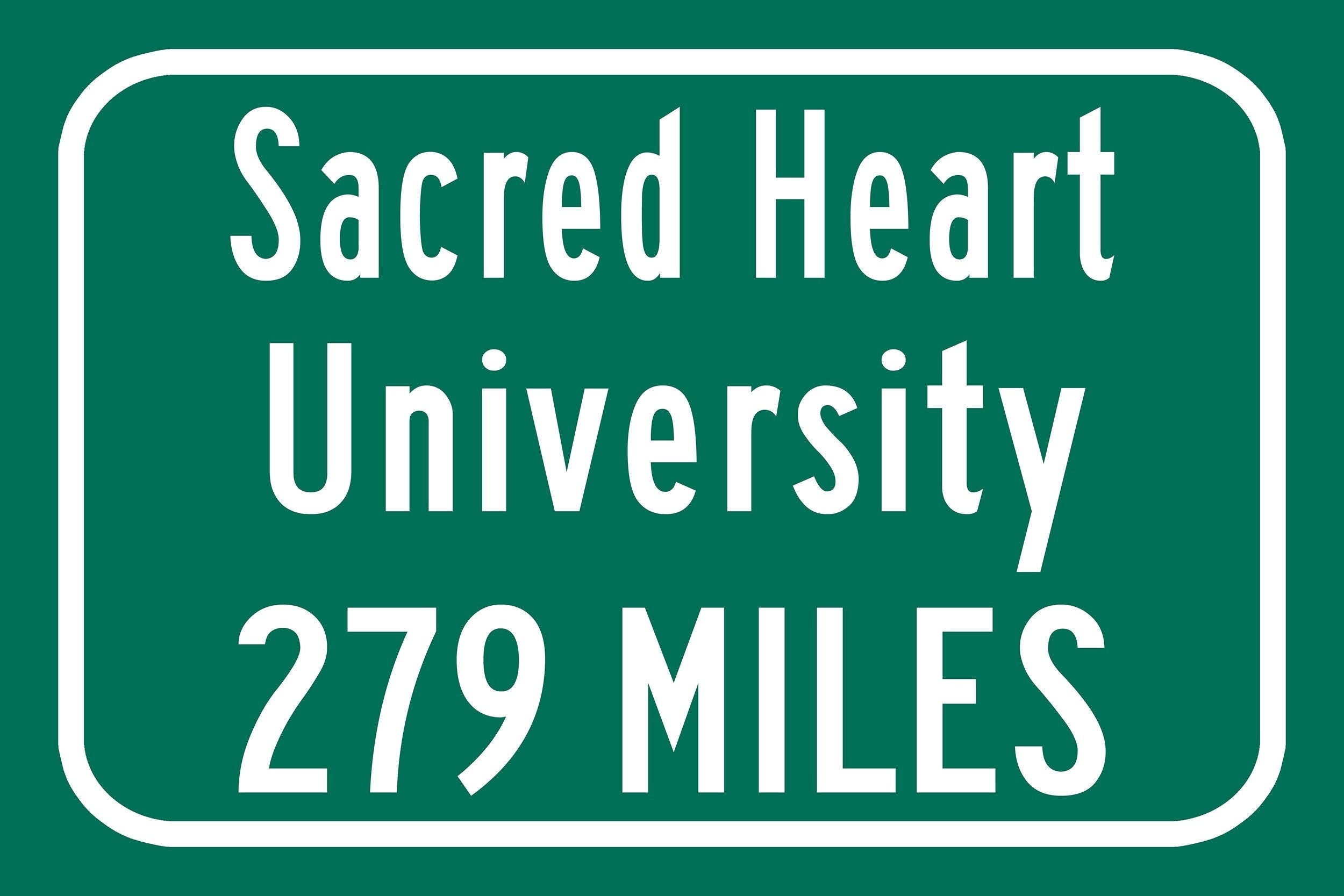 Personalized Highway Distance sign to Sacred Heart University / Fairfield Connecticut / Sacred Heart Pioneers /