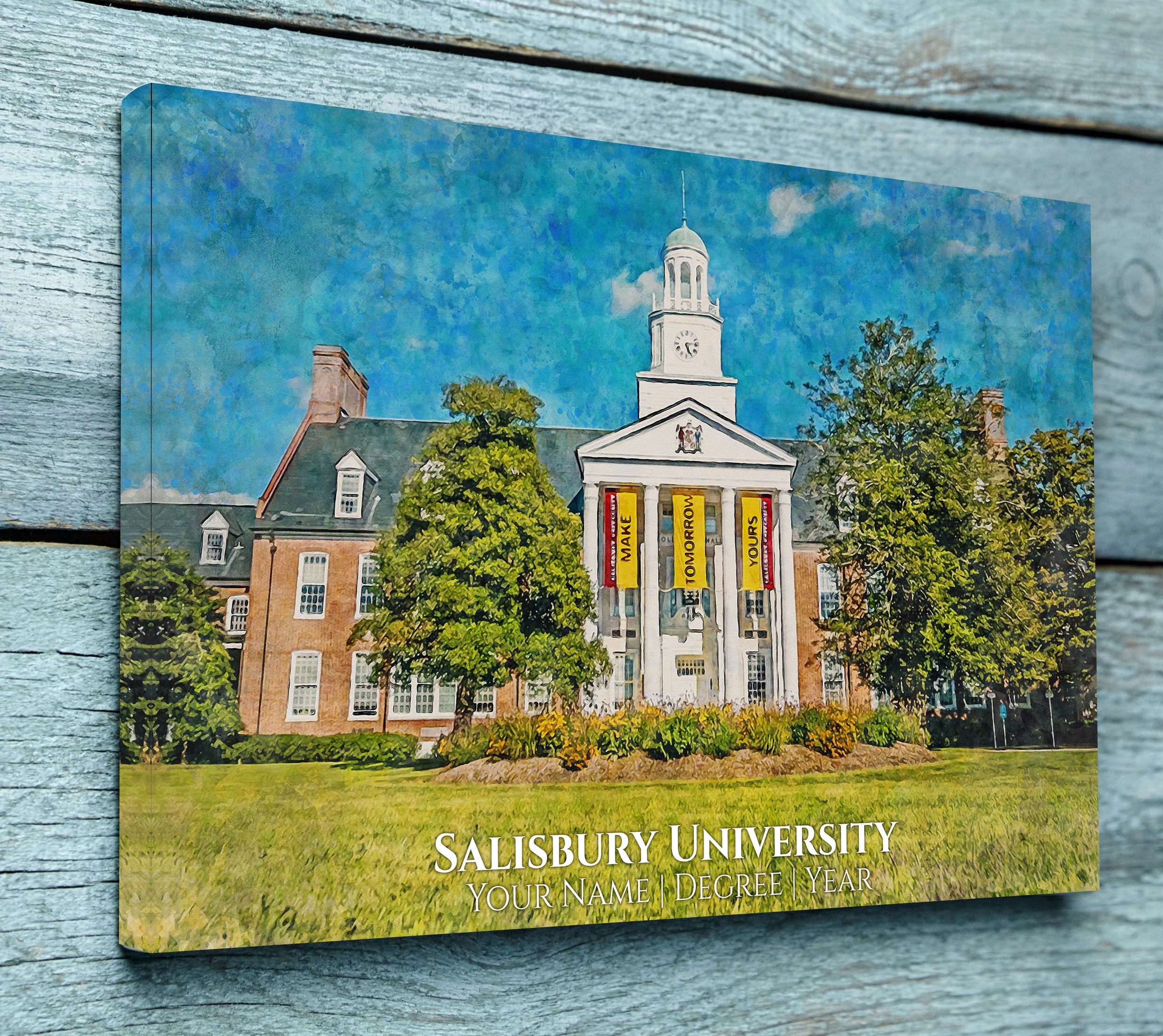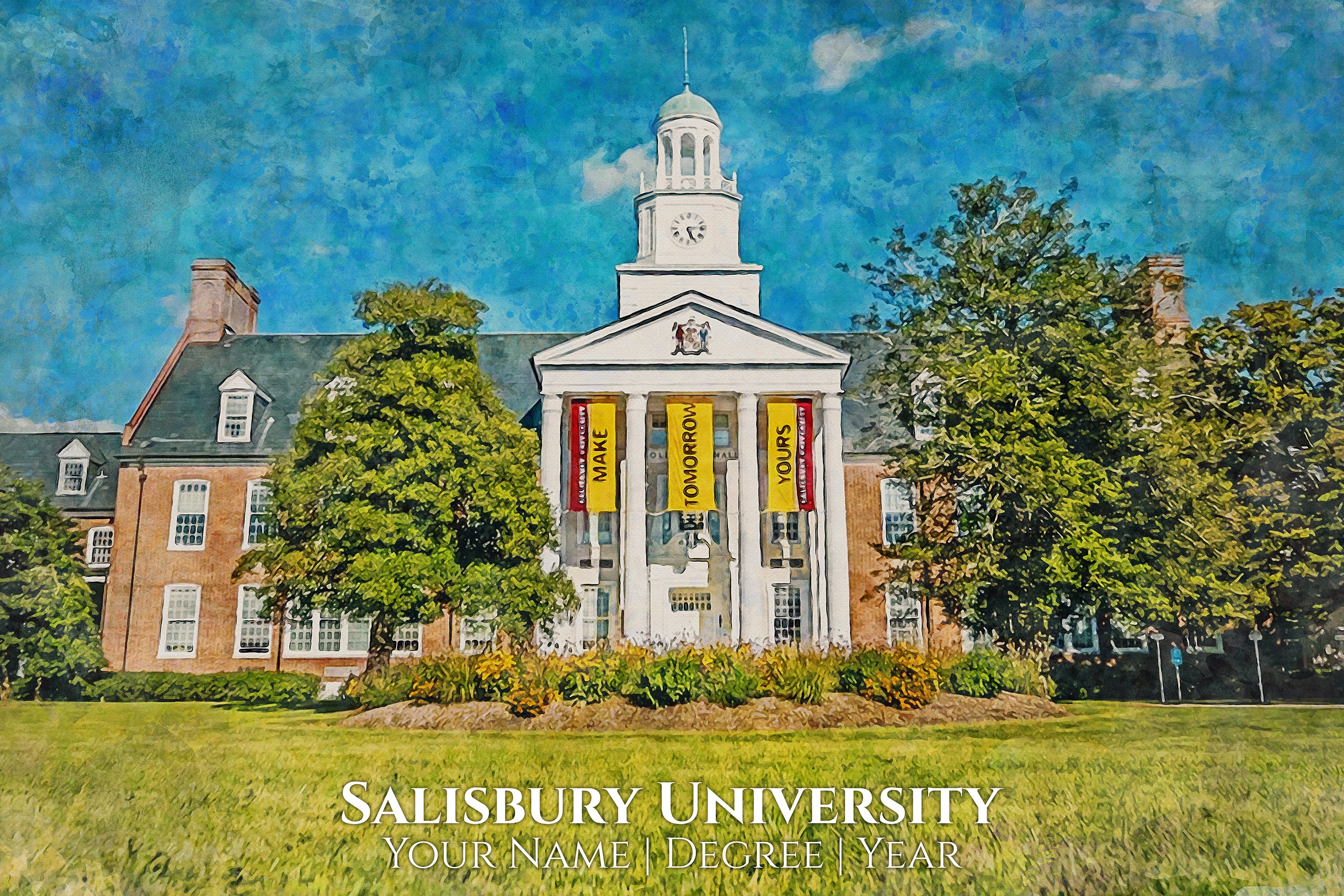 You will love these watercolor digital prints of Salisbury State University. Perfect for a graduation gift. These make wonderful gift for Salisbury State University Alumni and fans. Feel free to customize it as well when you check out. We will send a proof for you to approve before we print so please check your email about 24hrs after you order