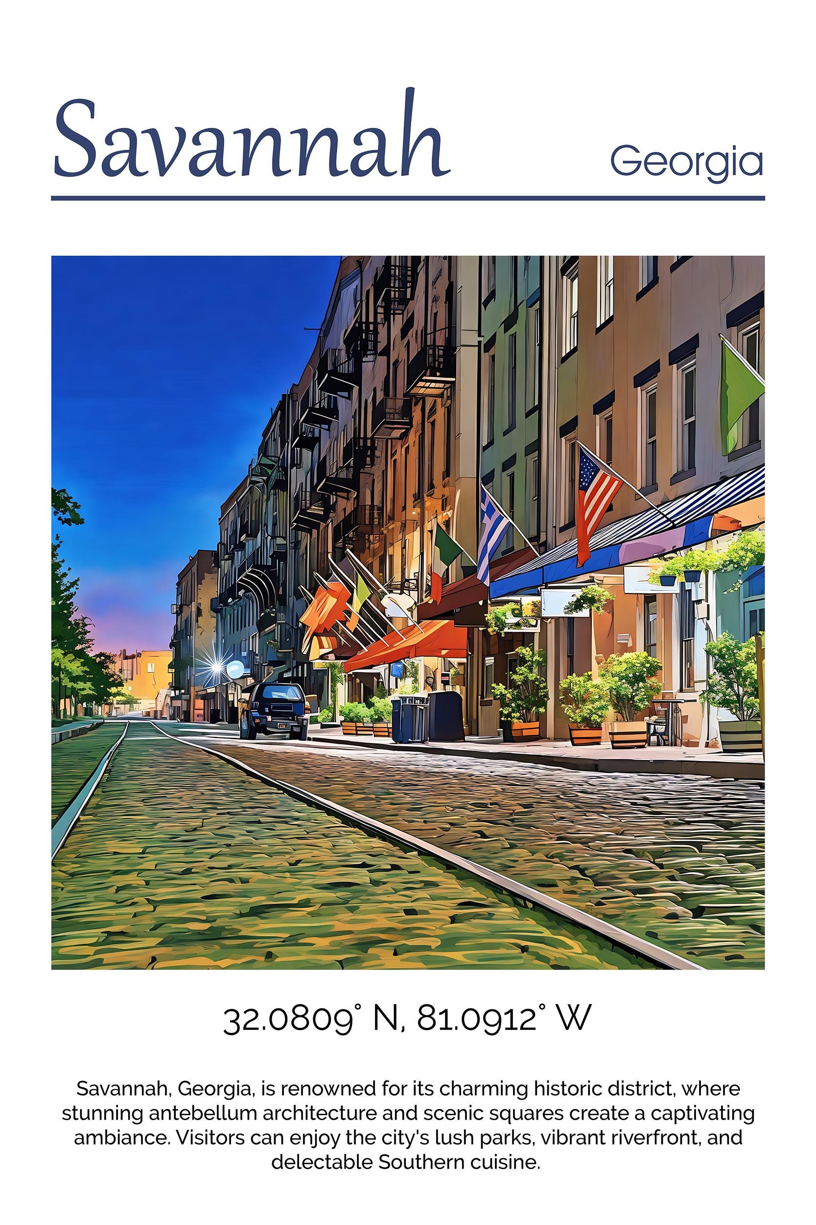 created Savannah Georgia wall art is perfect for any room in your home. Savannah is one of the most beautiful cities in the country.