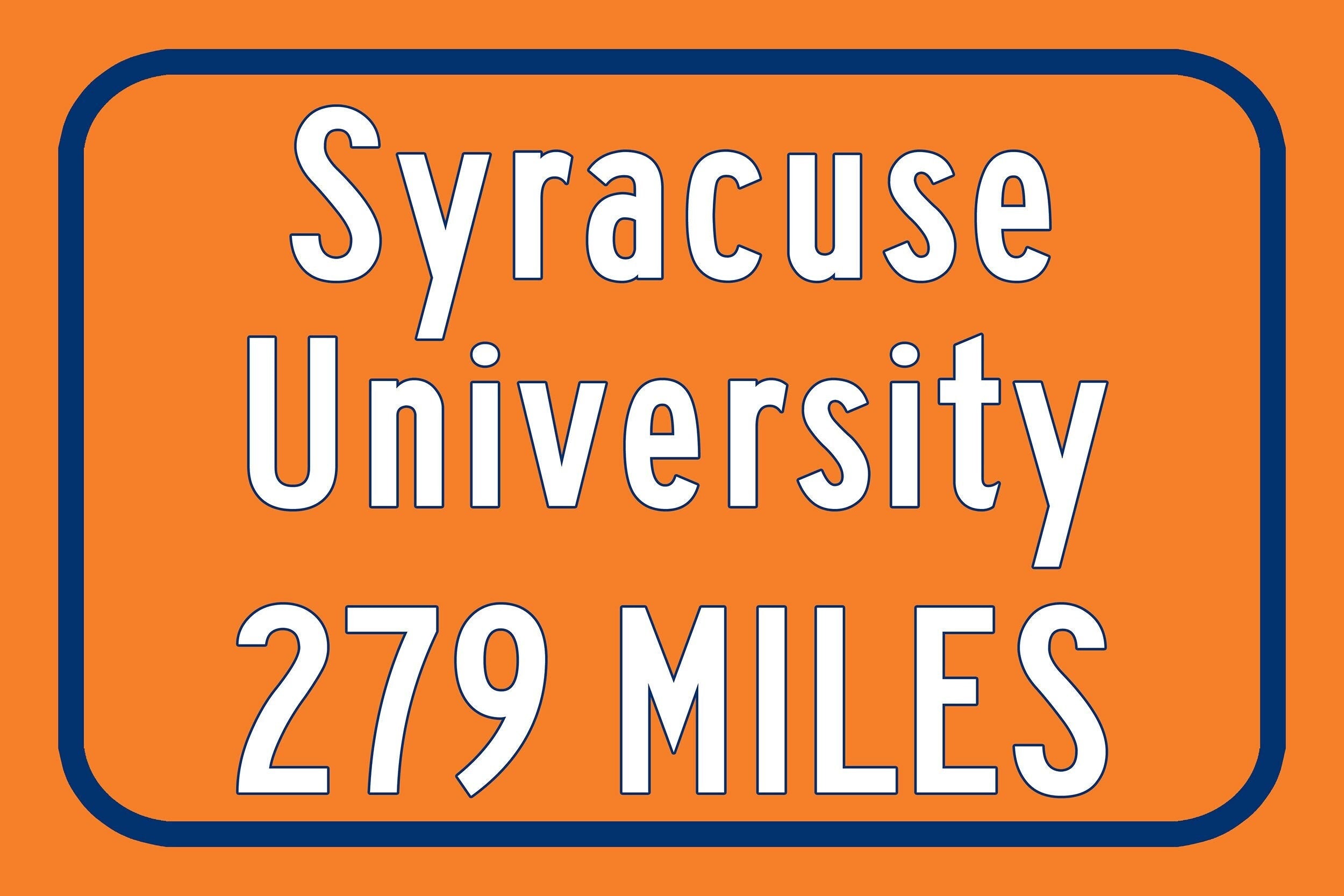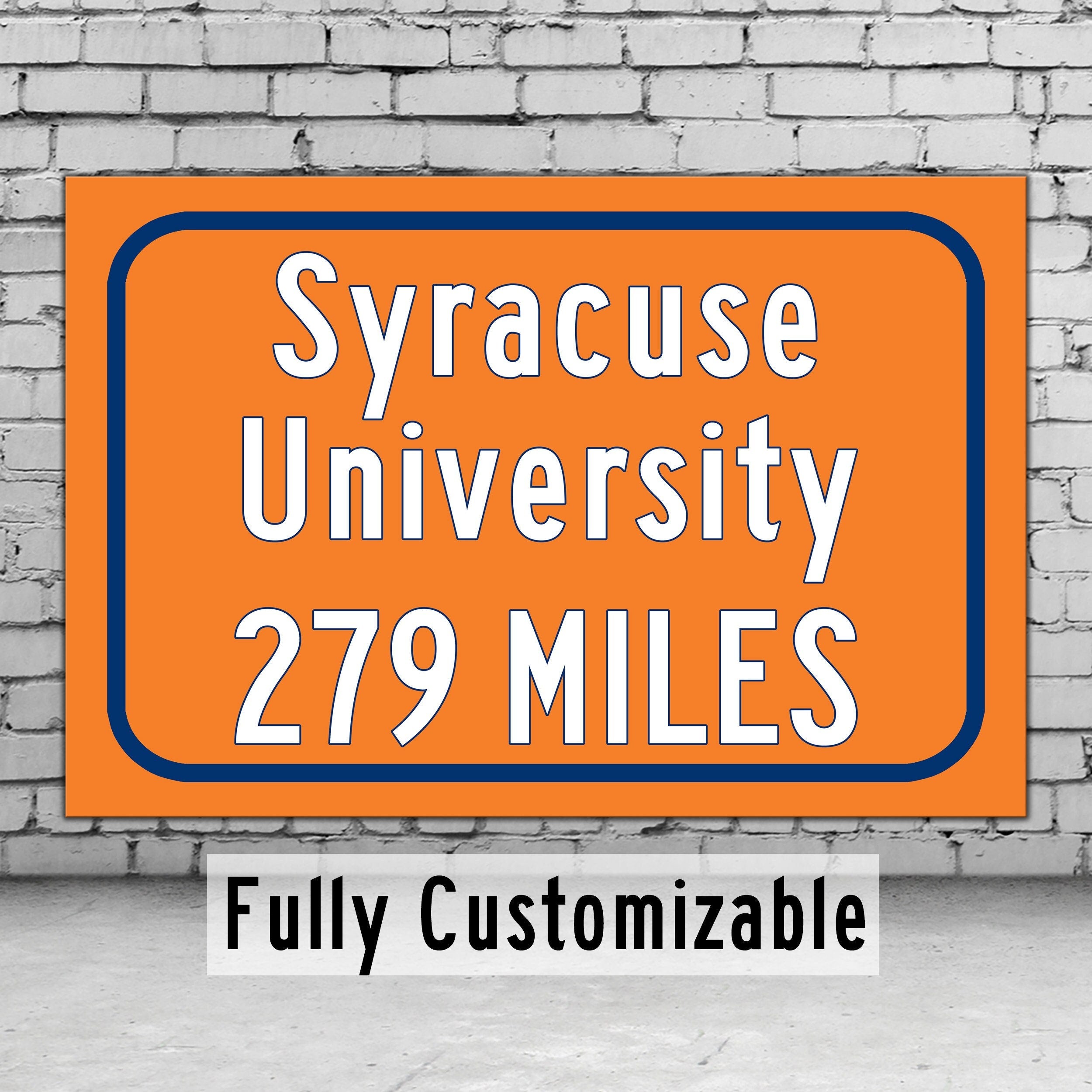 Personalized Highway Distance sign to Syracuse New York. University of Syracuse sign. Syracuse Orange sign.