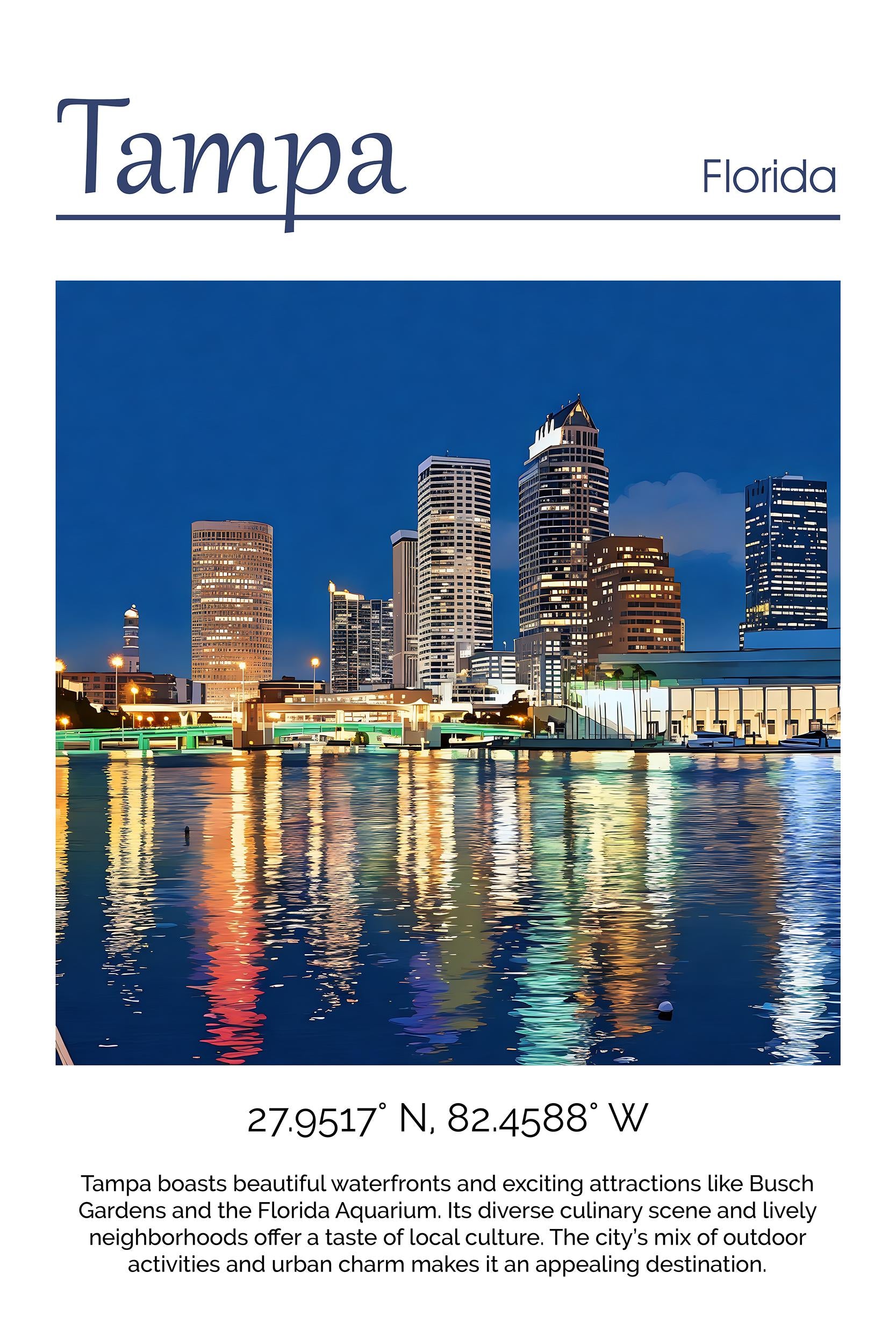 Add this Tampa travel art canvas print to your collection today and let the charm of this city brighten up your space!