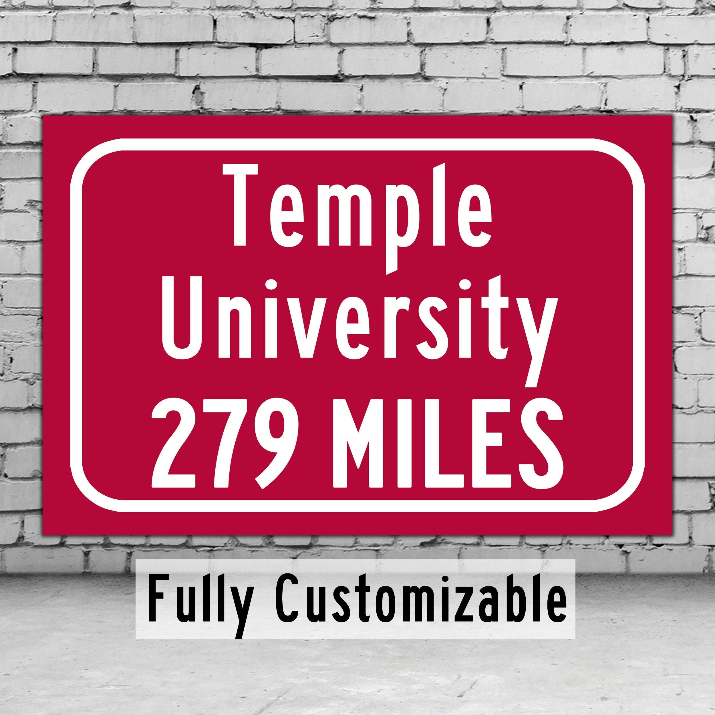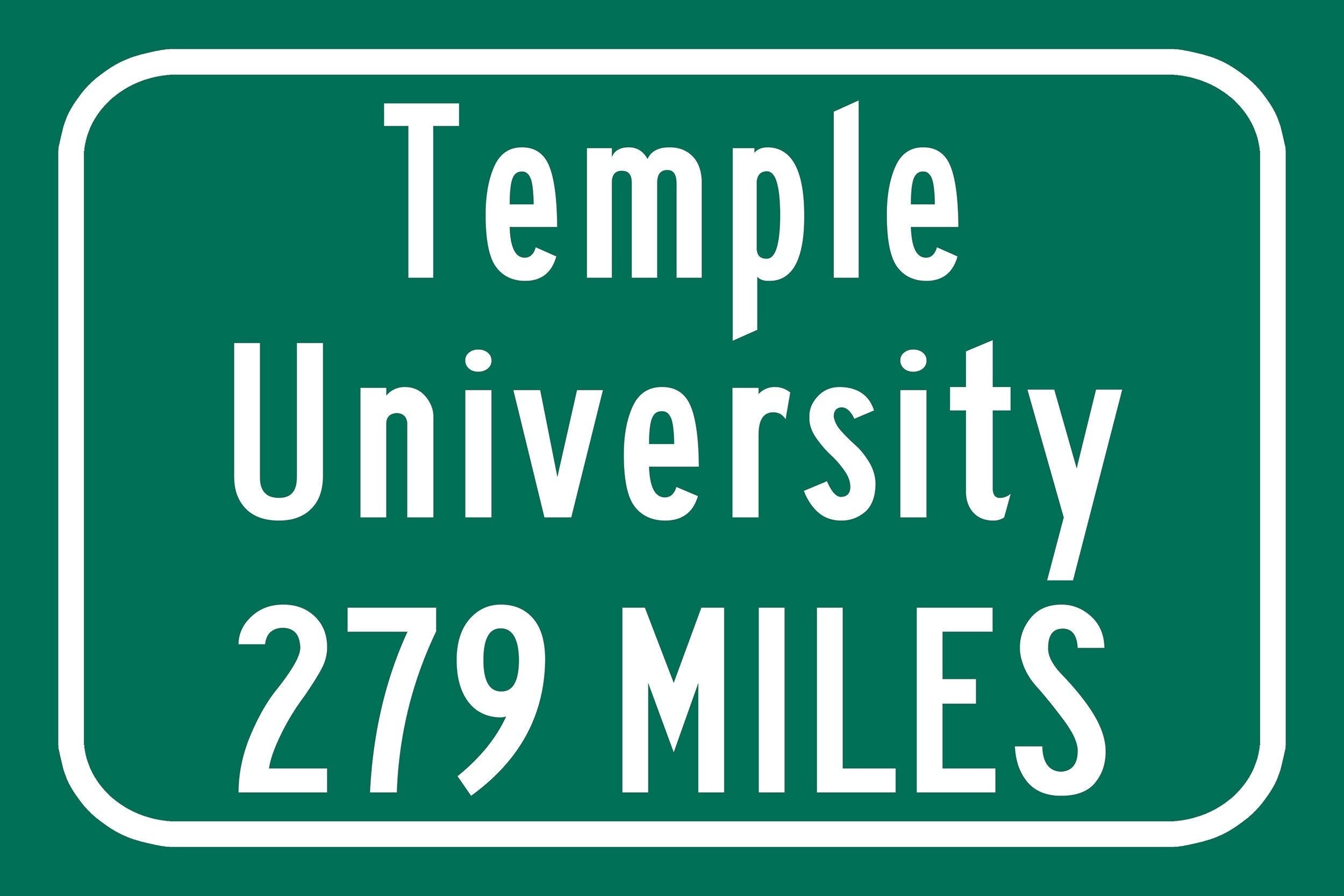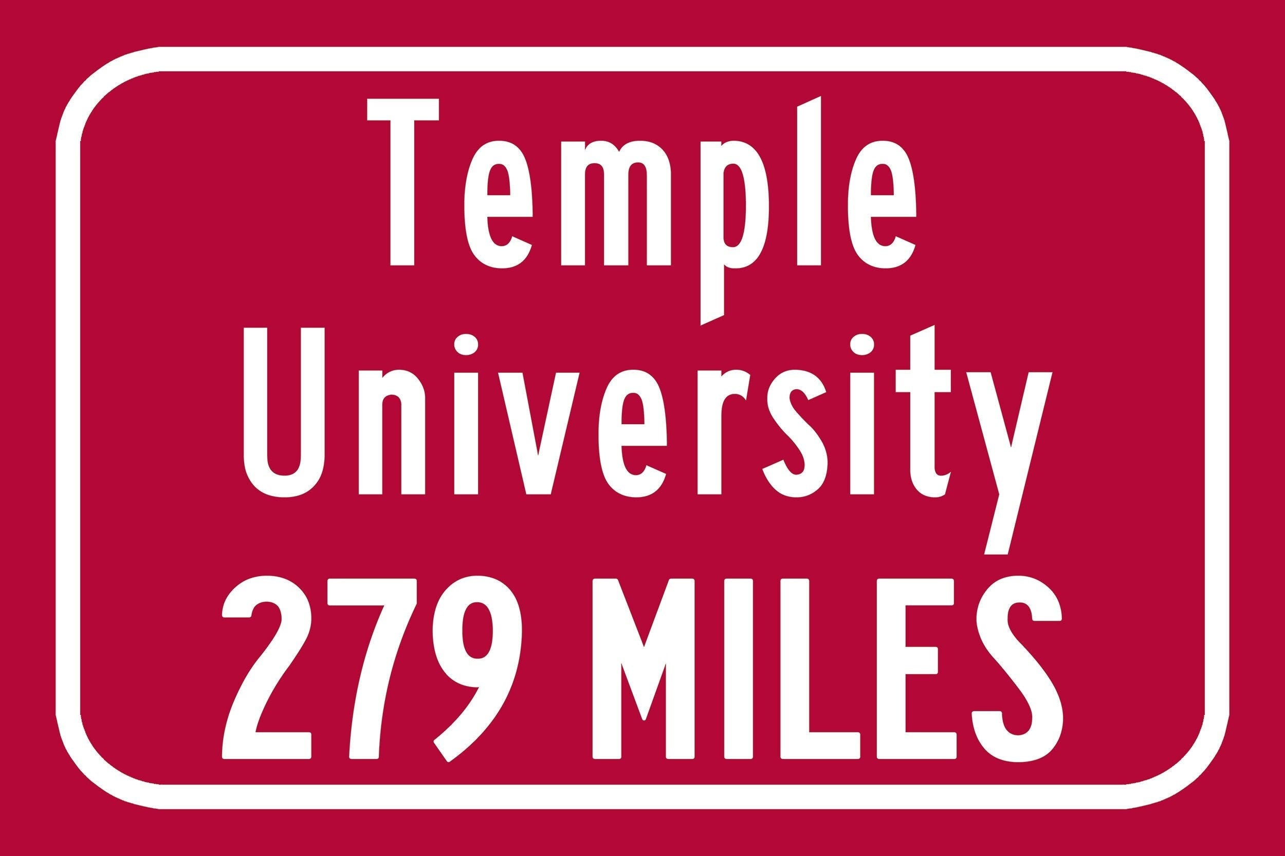 Personalized Highway Distance sign to Temple University. Temple University . Temple Owls sign.
