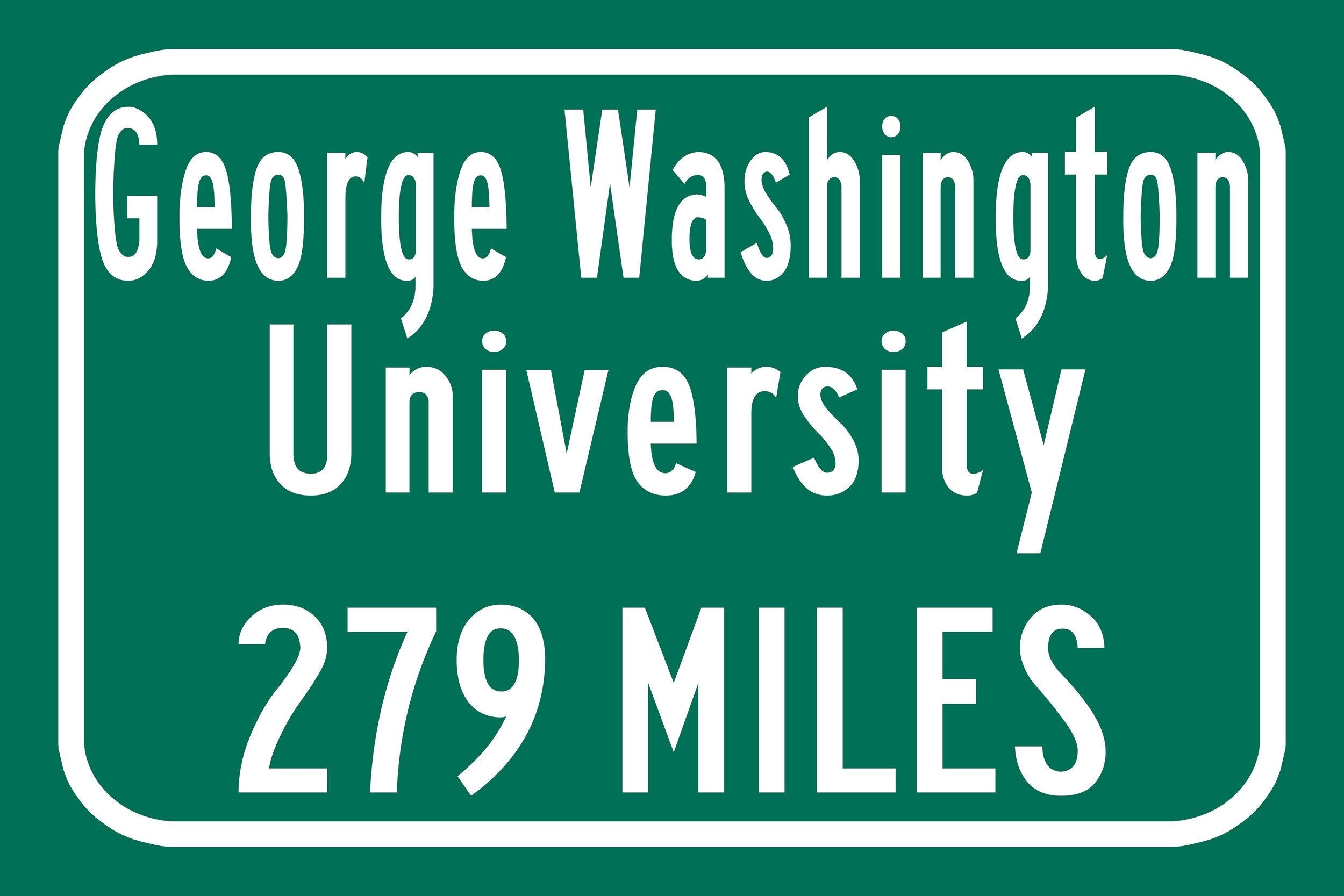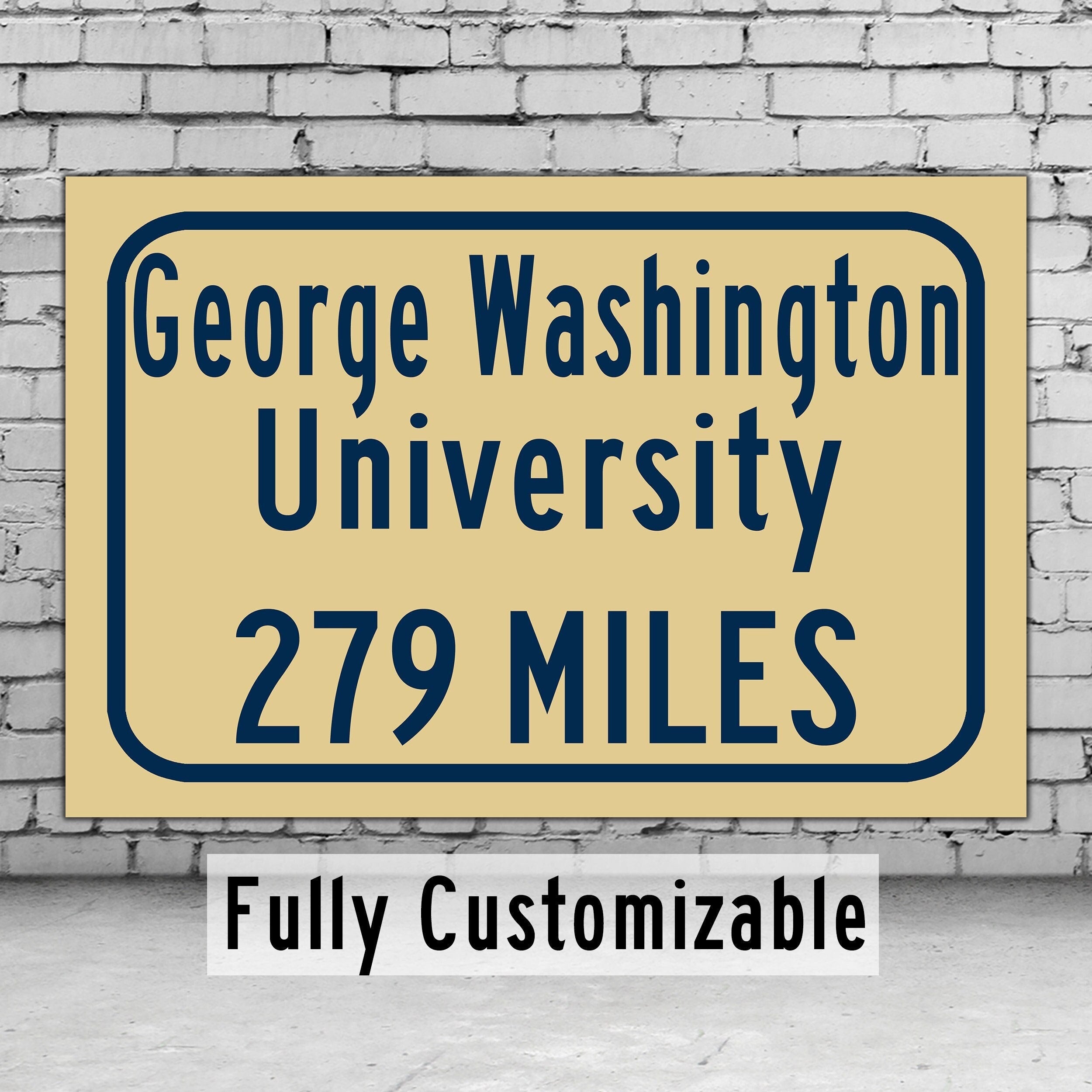 Personalized Highway Distance sign to The George Washington University / The George Washington University sign. George Washington Colonials sign.