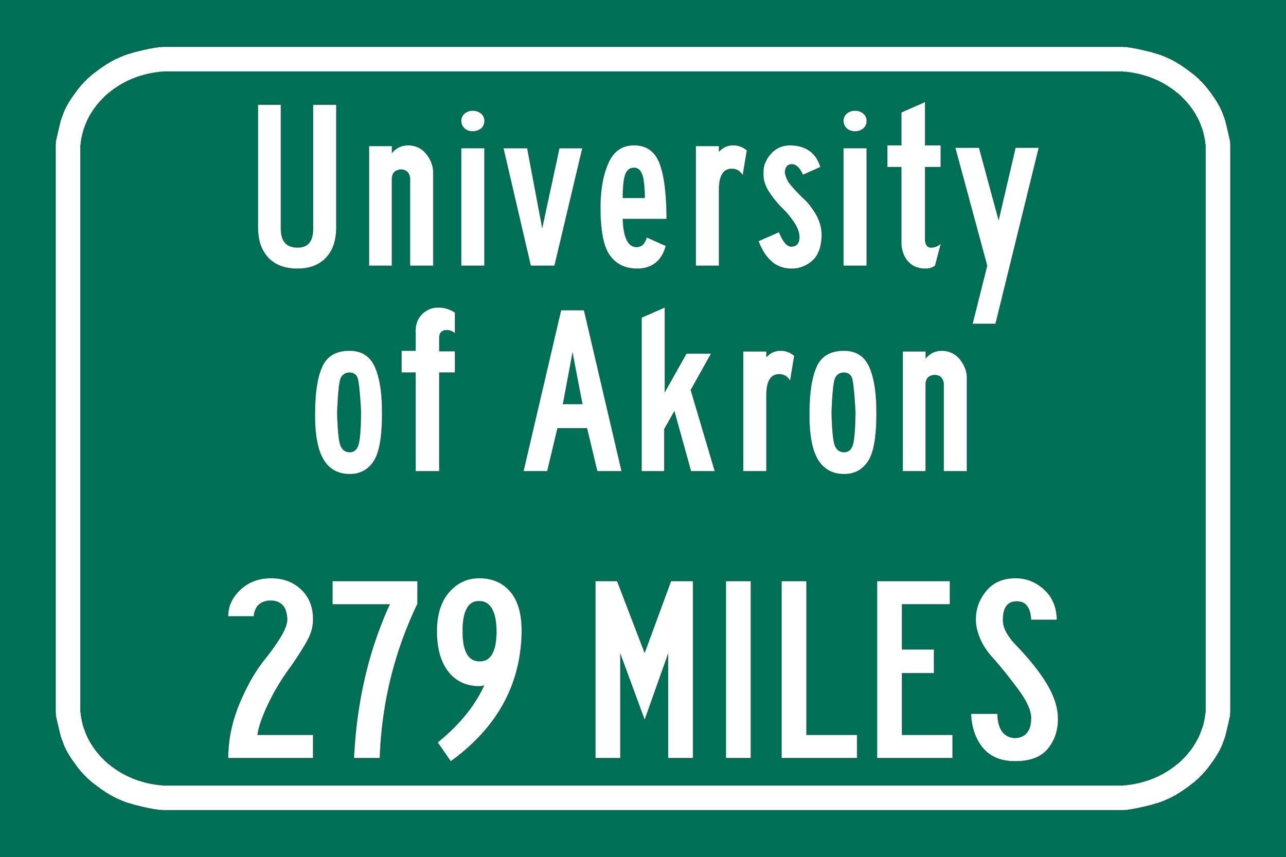 Personalized Highway Distance sign to The University of Akron / Akron Ohio / Akron Zips