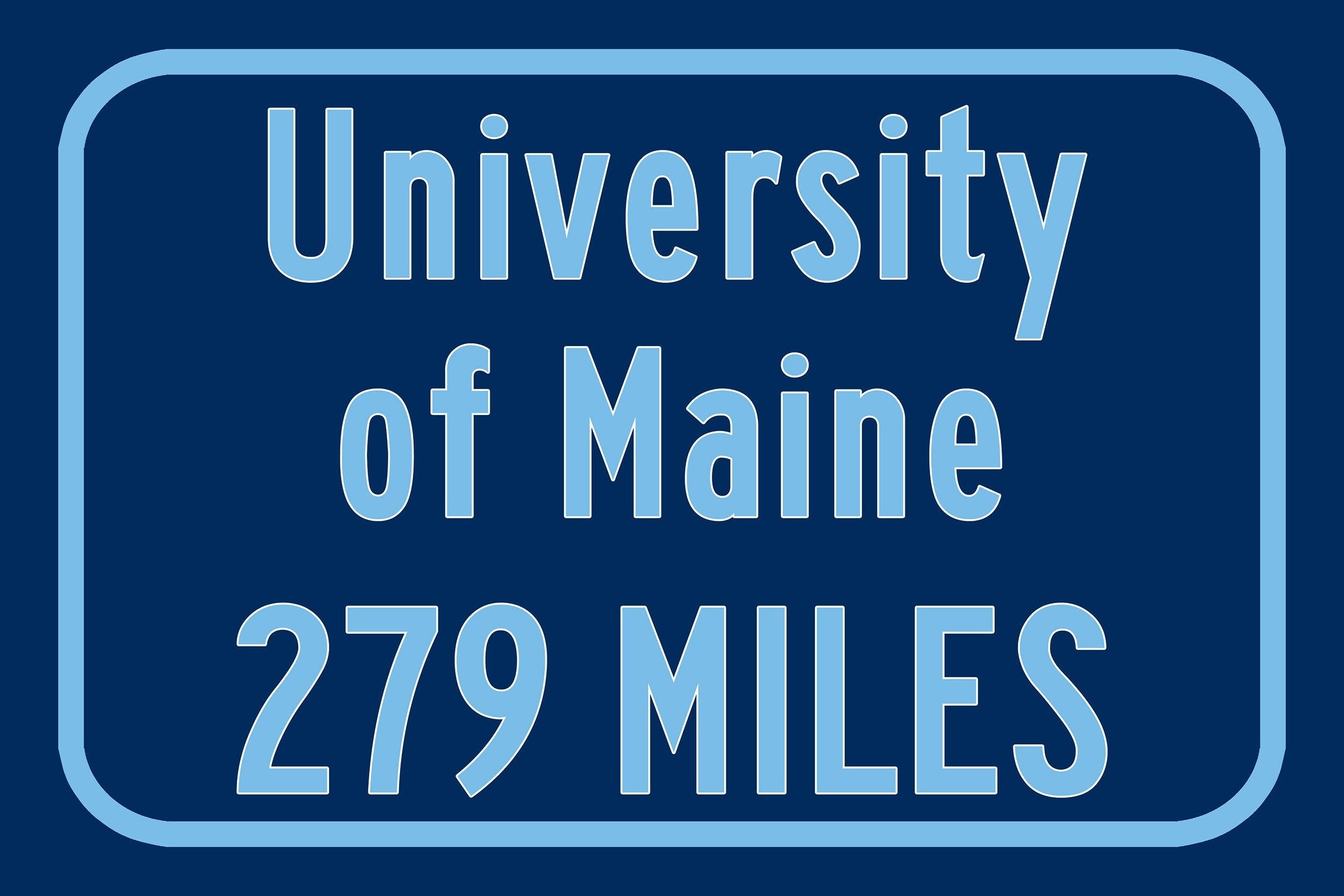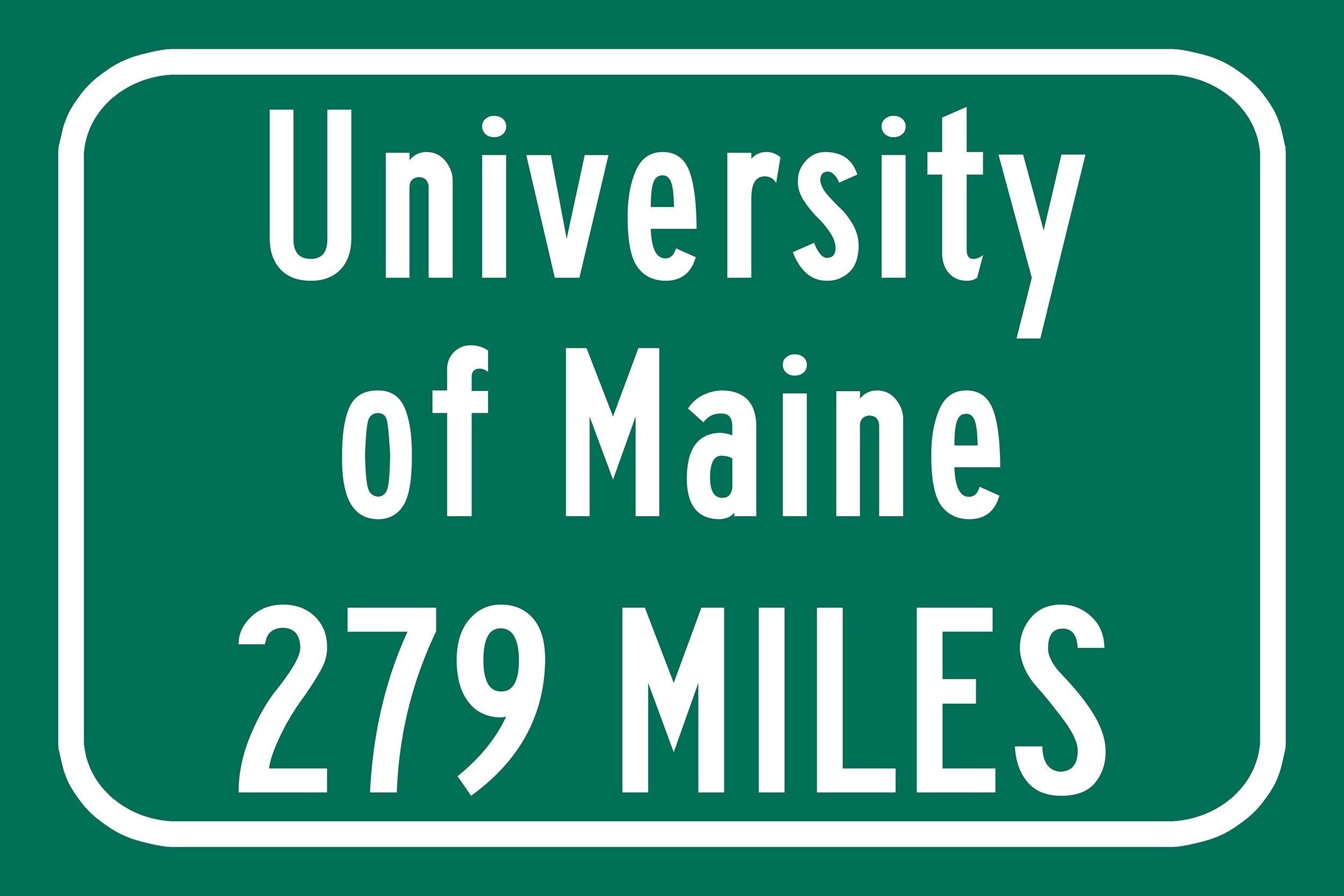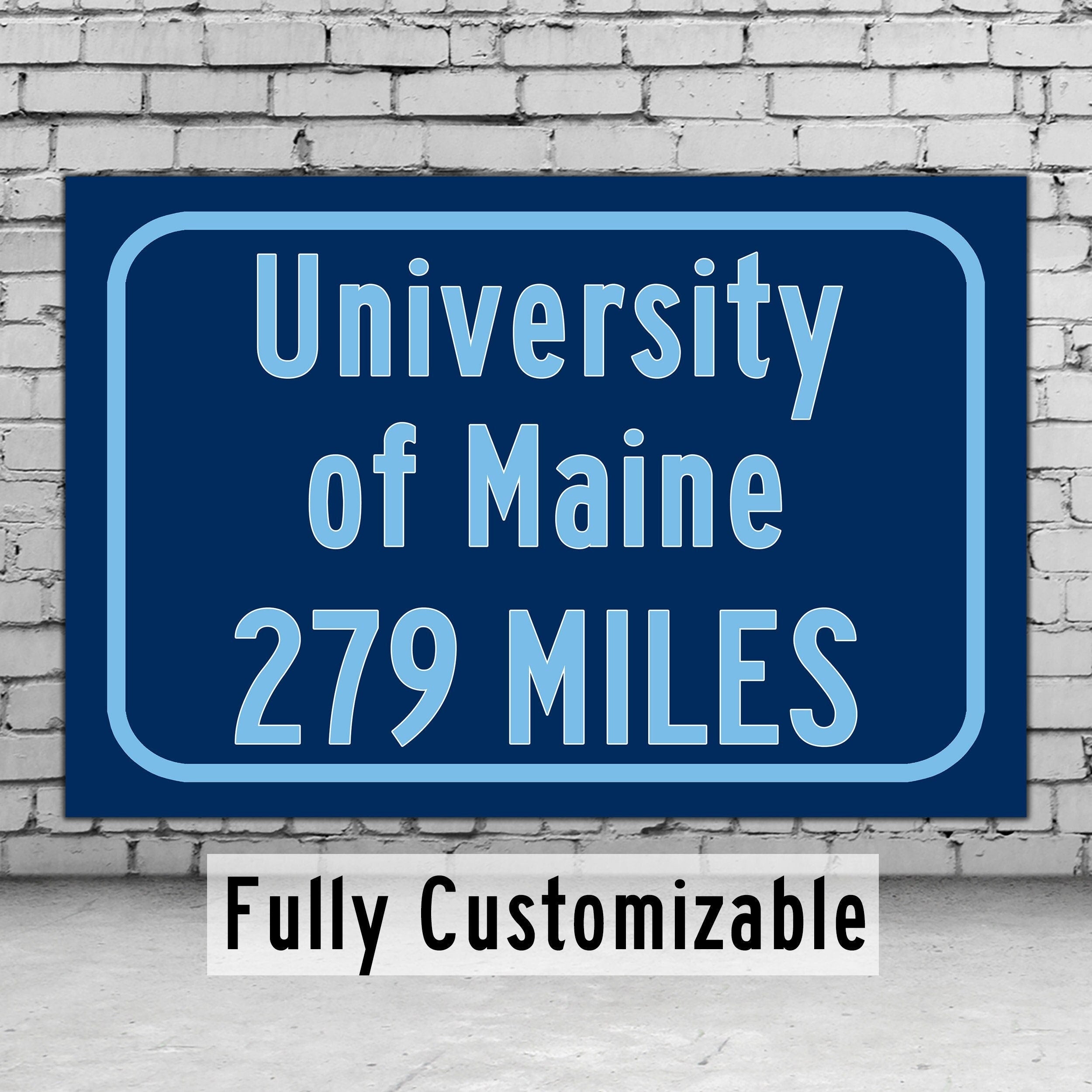 Personalized Highway Distance sign to The University of Maine / The University of Maine sign. Maine Black Bears sign.