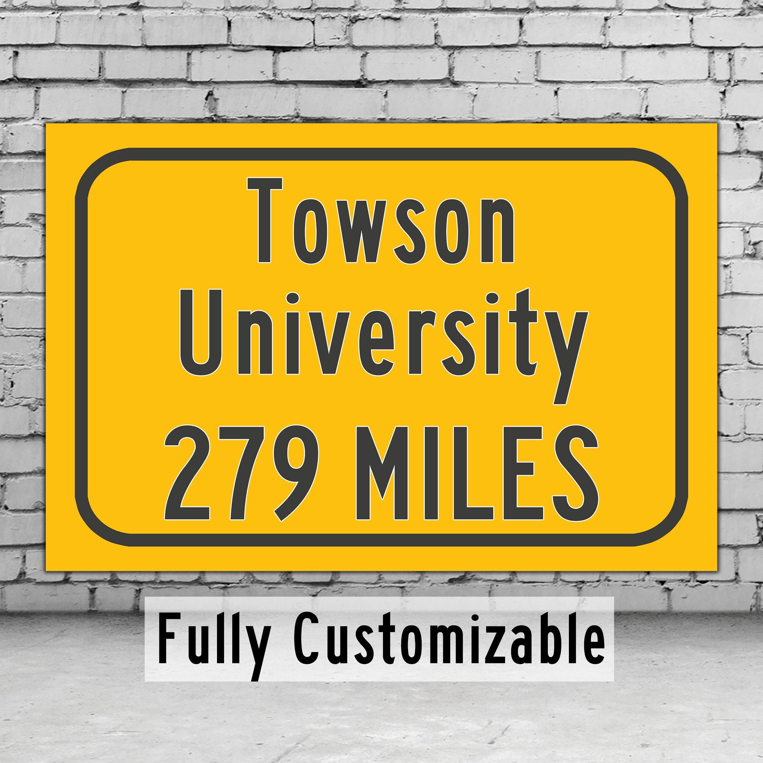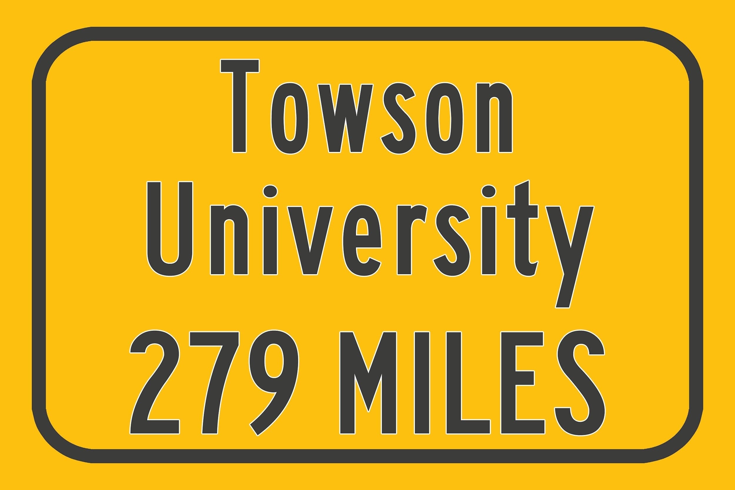Personalized Highway Distance sign to Towson University / Towson Maryland / Towson Tigers