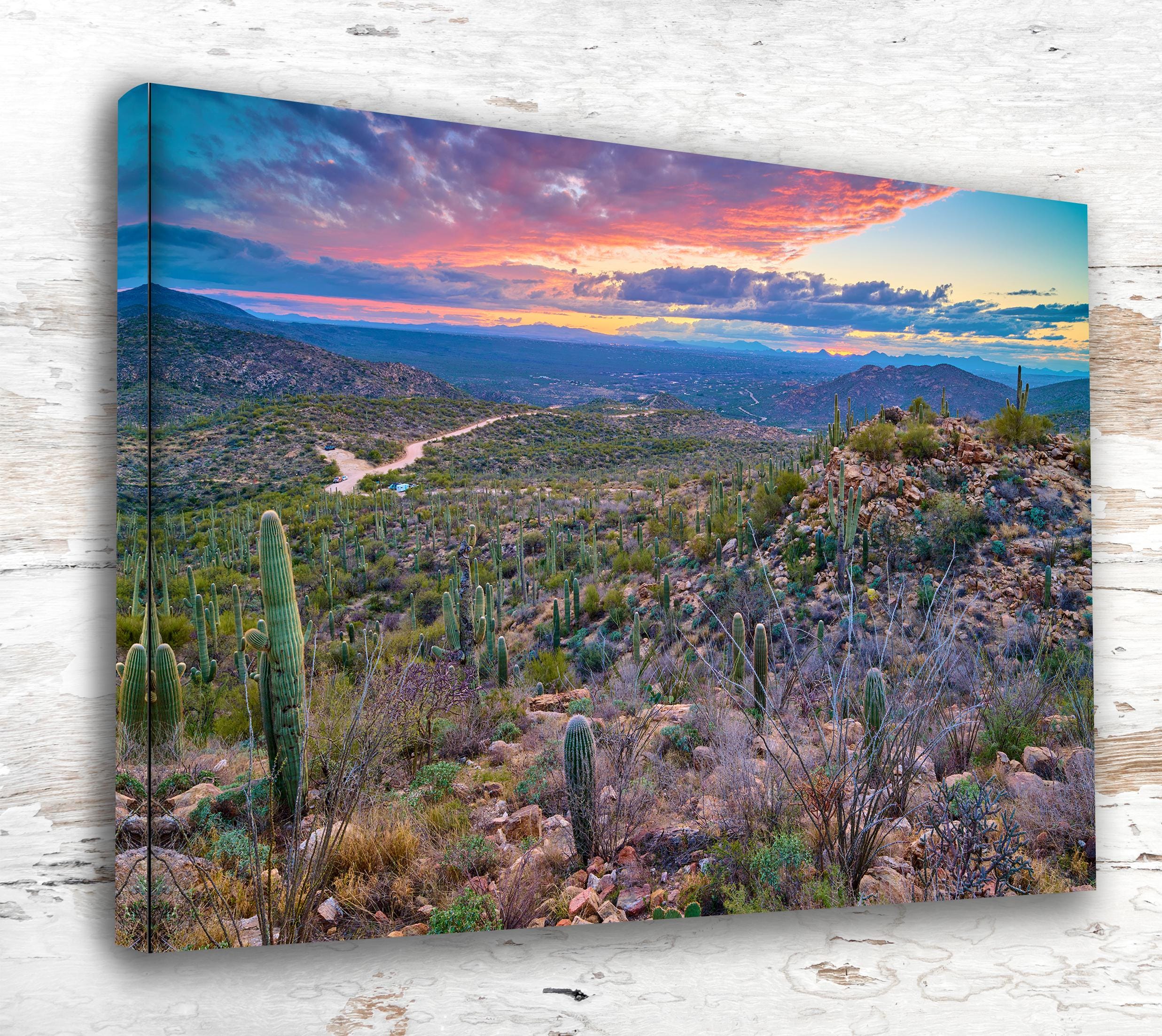 Bring the vibrant energy of Tucson into your home with this stunning travel art canvas. This Tucson wall art captures the essence of this lovely city in Arizona, making it a perfect addition to your home decor.
