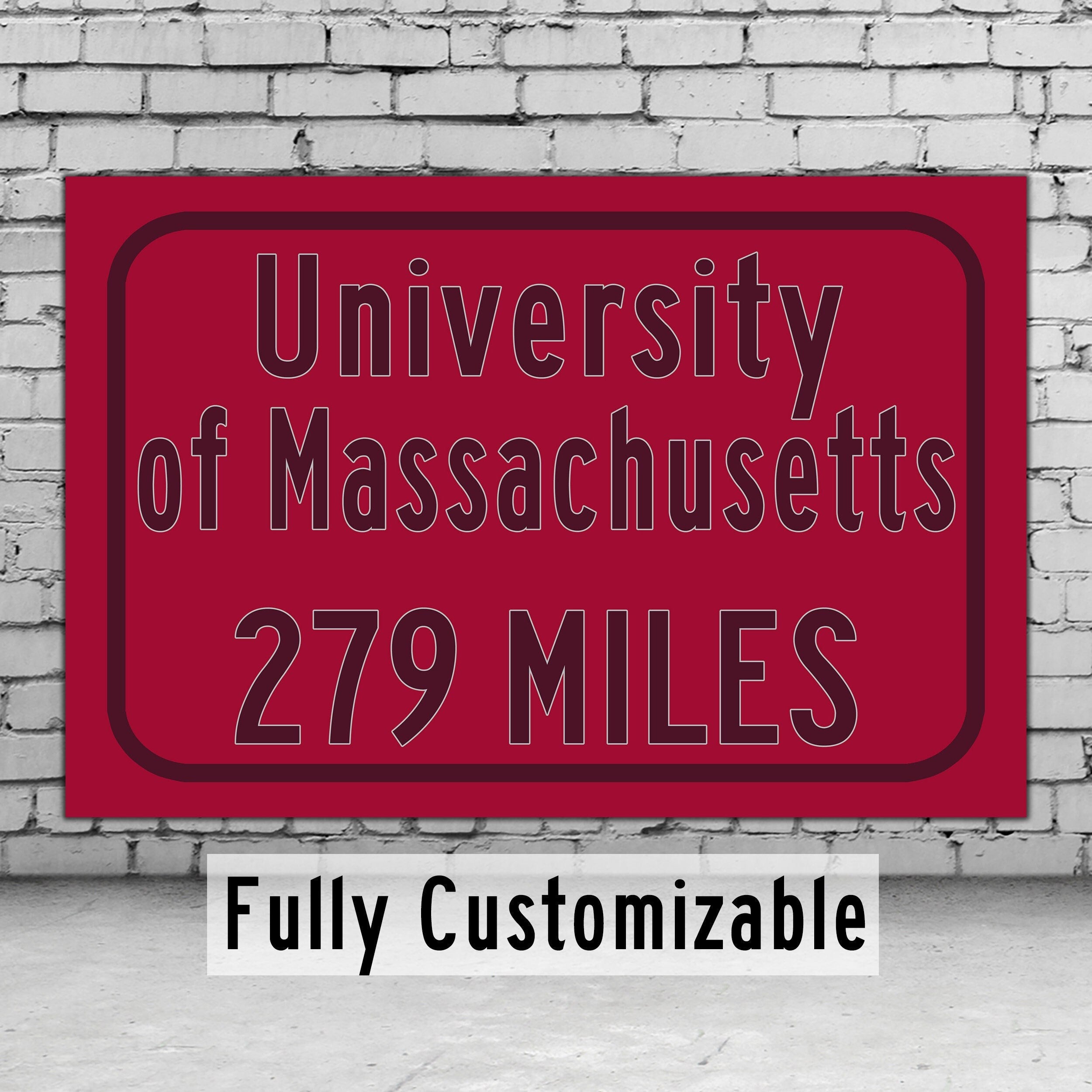 UMass / Custom College Highway Distance Sign /UMass / UMass Minutemen /