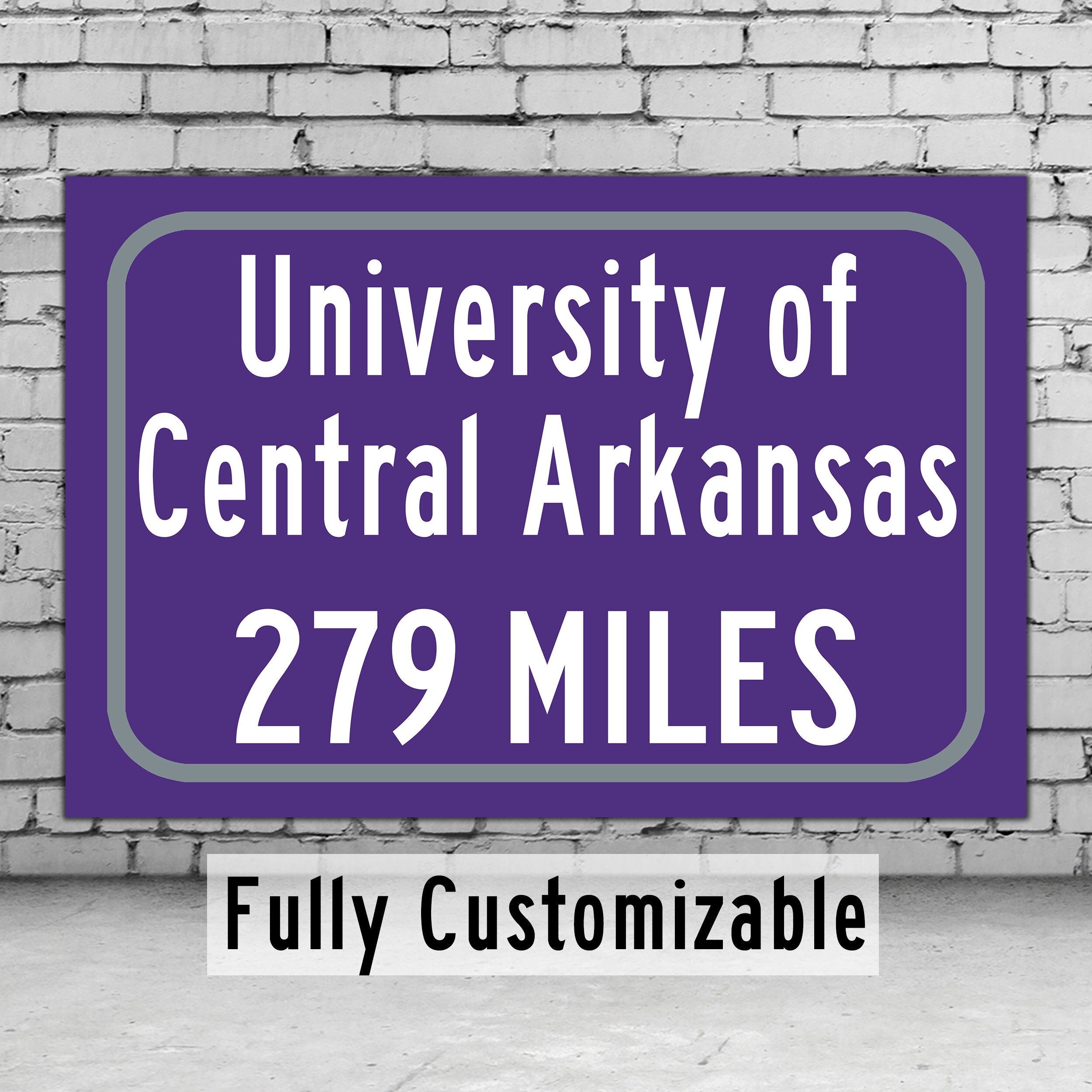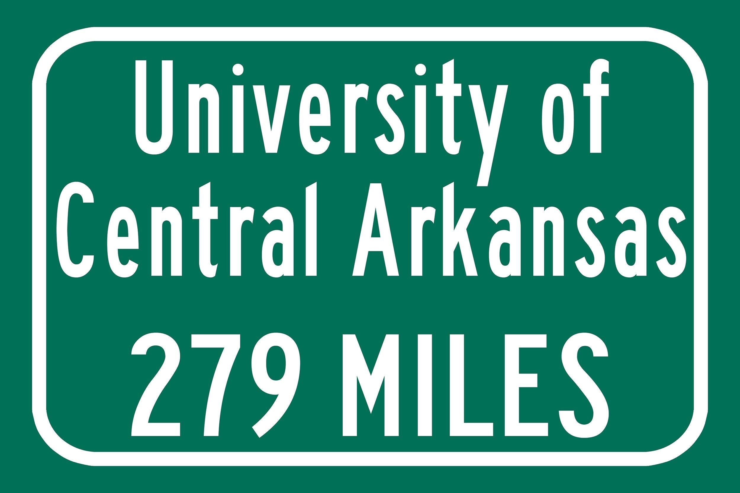 Personalized Highway Distance sign to University of Central Arkansas / Conway Arkansas / Centrel Arkansas Bears