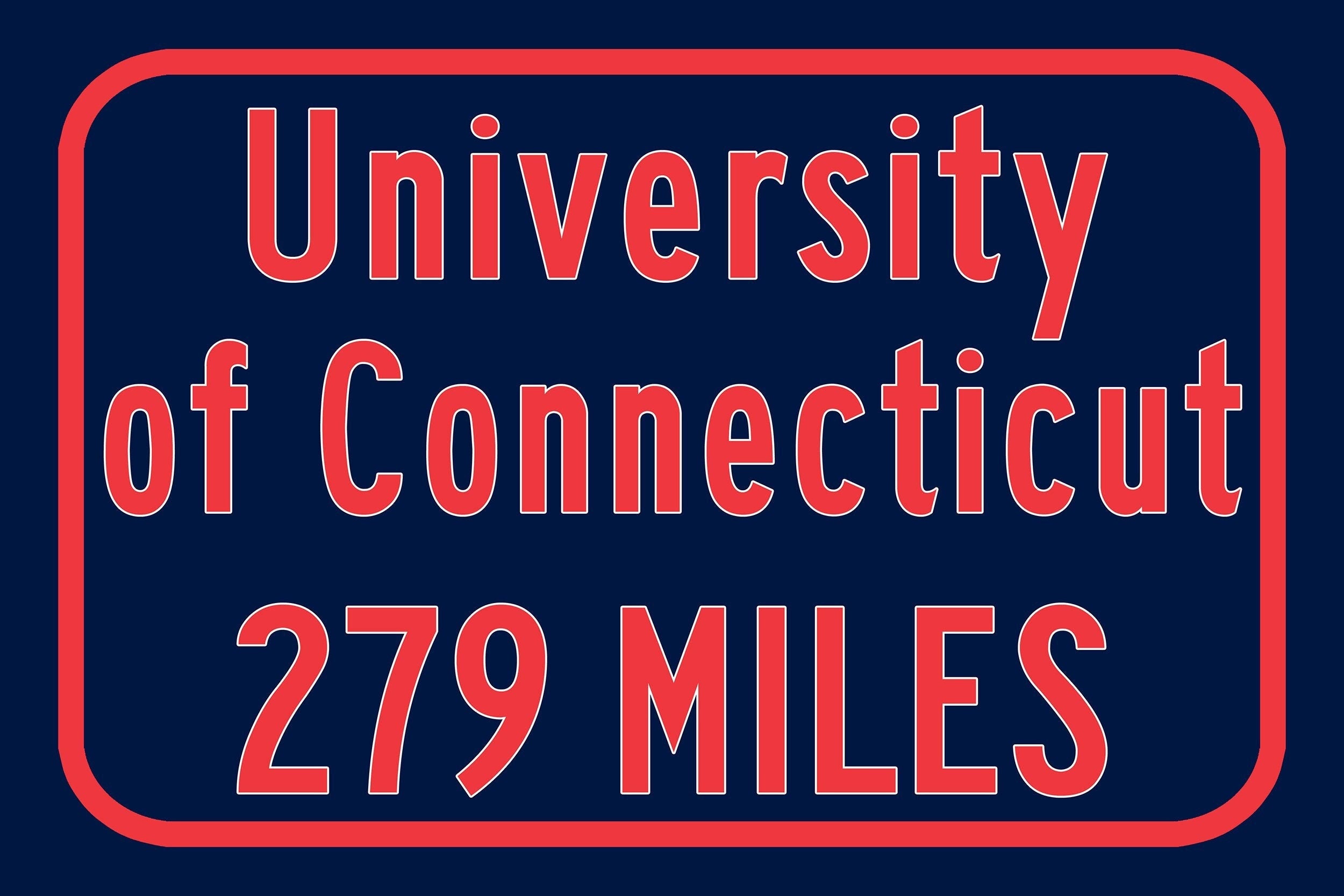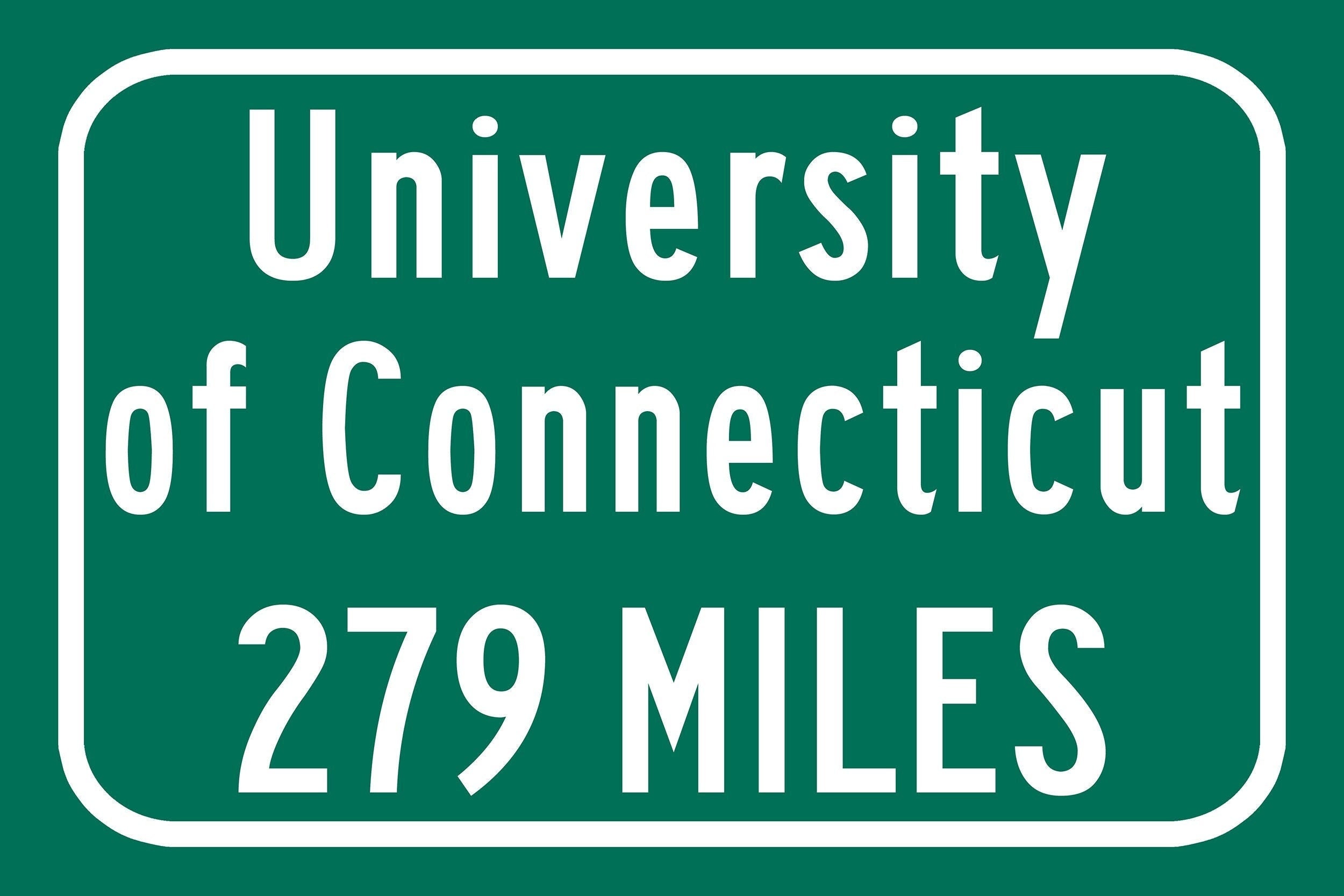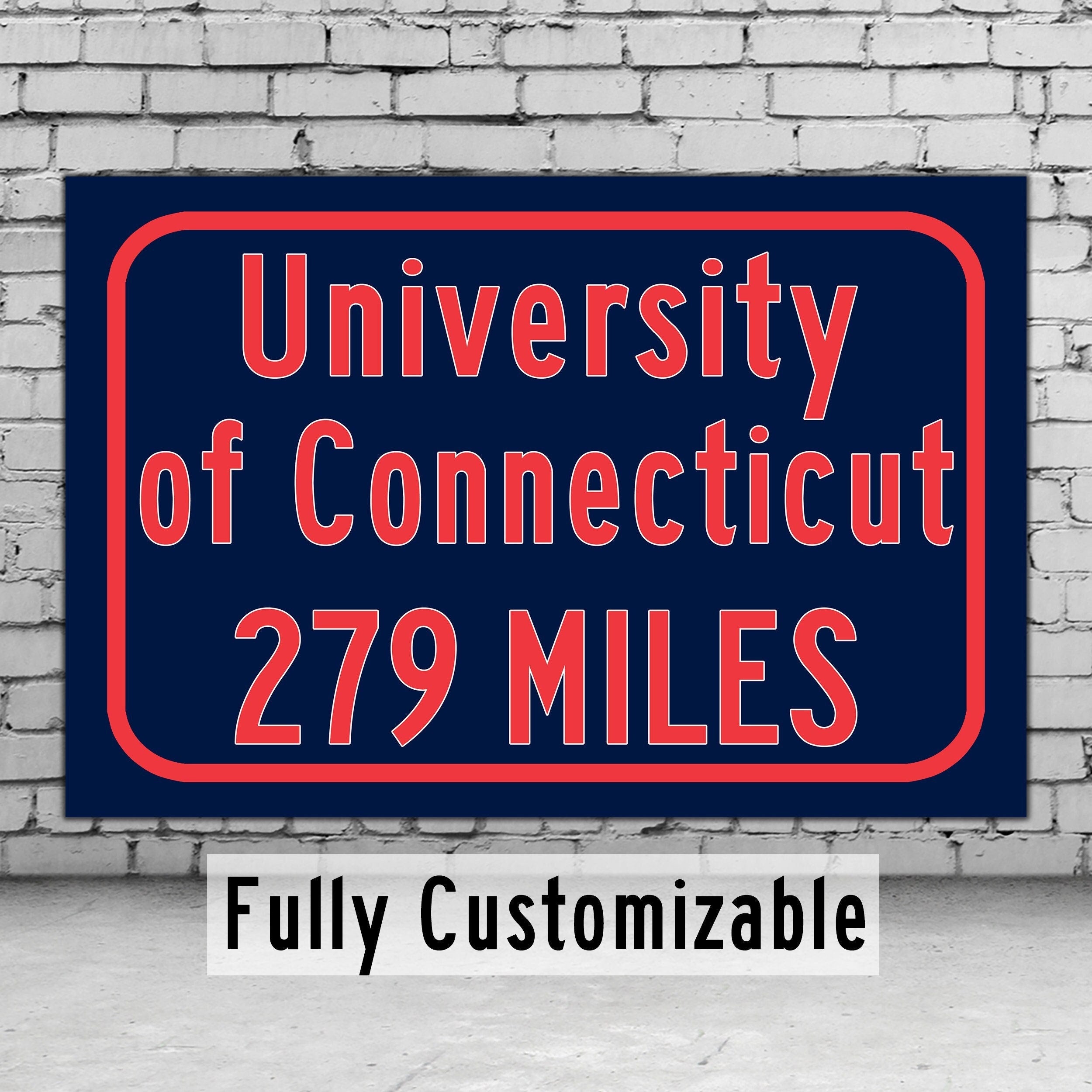 Personalized Highway Distance sign to University of Connecticut. University of Connecticut sign. UConn Huskies sign.