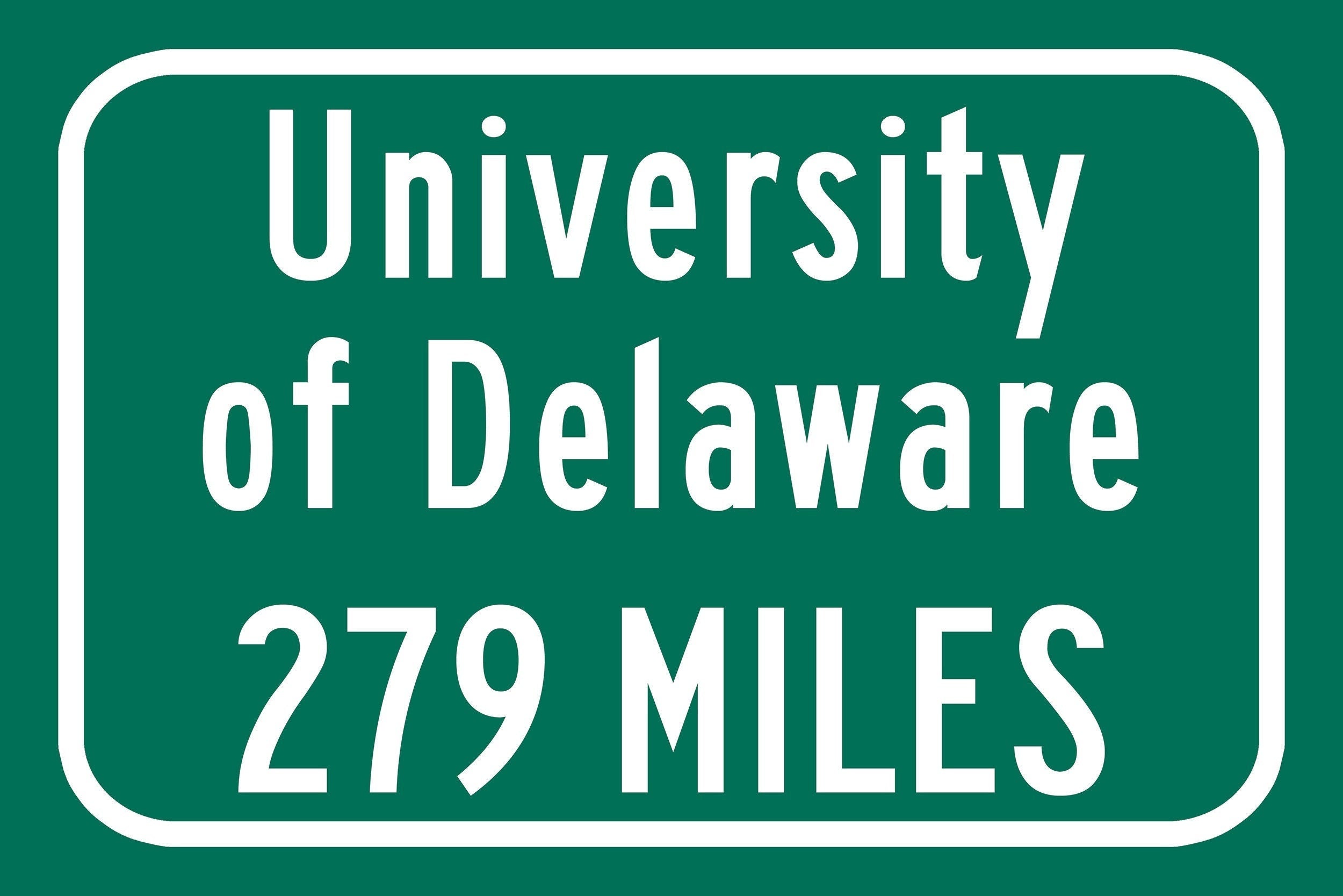 Personalized Highway Distance sign to Delaware State University / Delaware Blue Hens / Dover Delaware /