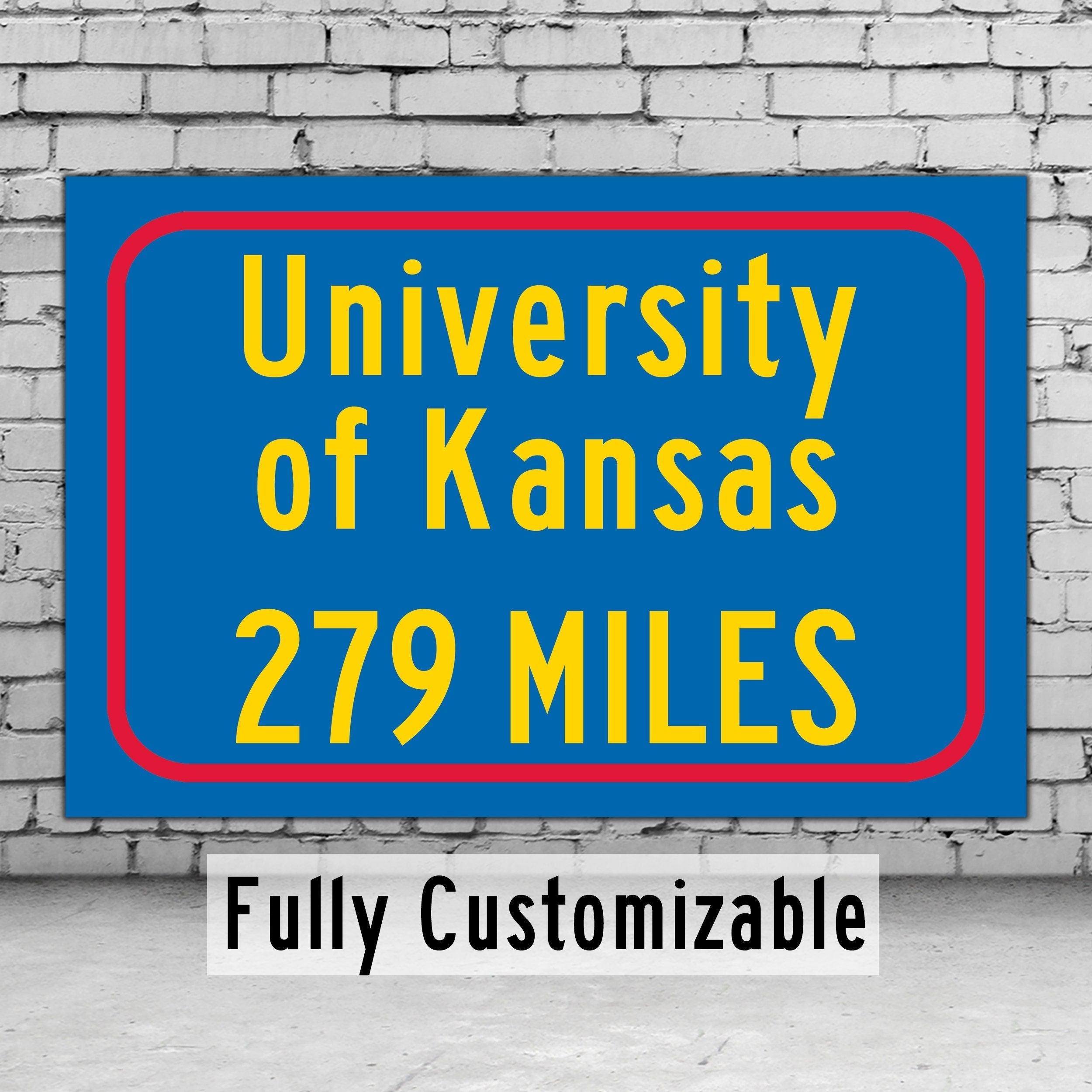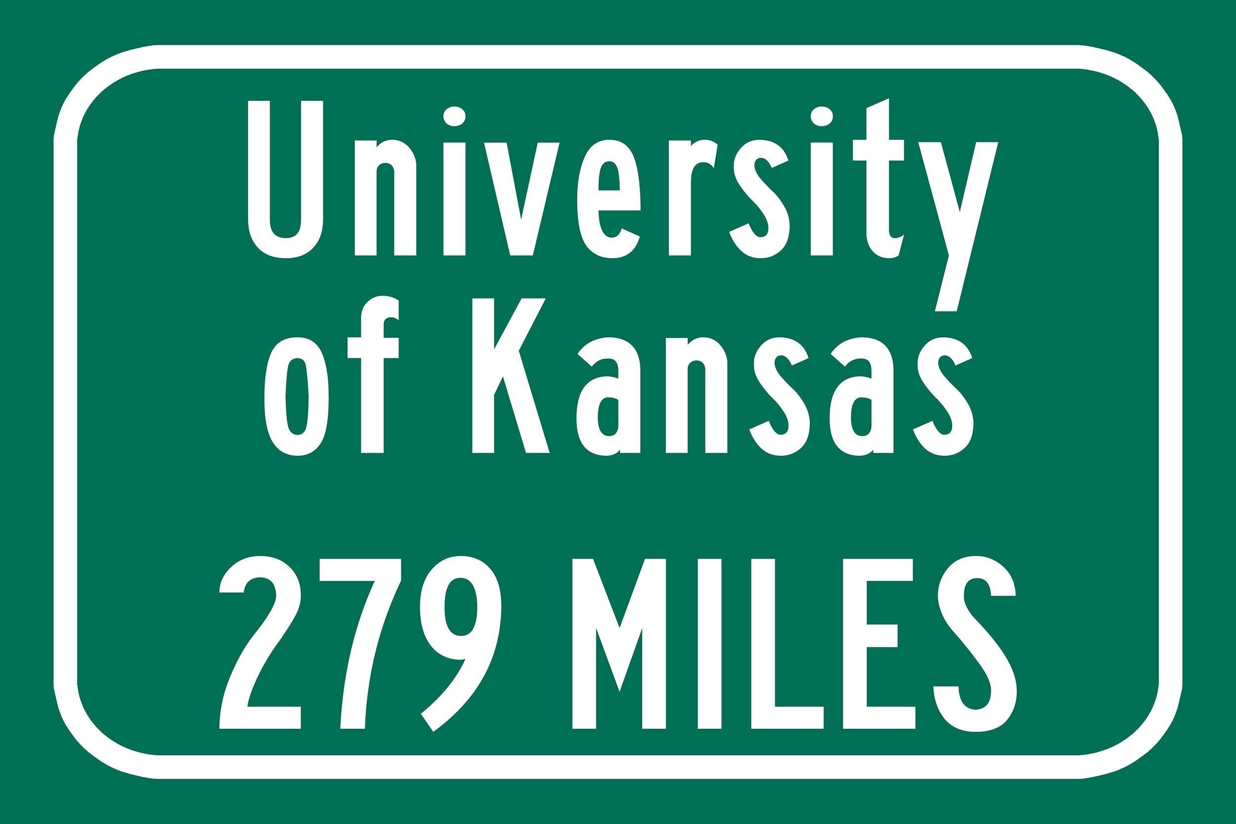 Personalized Highway Distance sign to University of Kansas , University of Kansas sign. / University of Kansas / Kansas Jayhawks