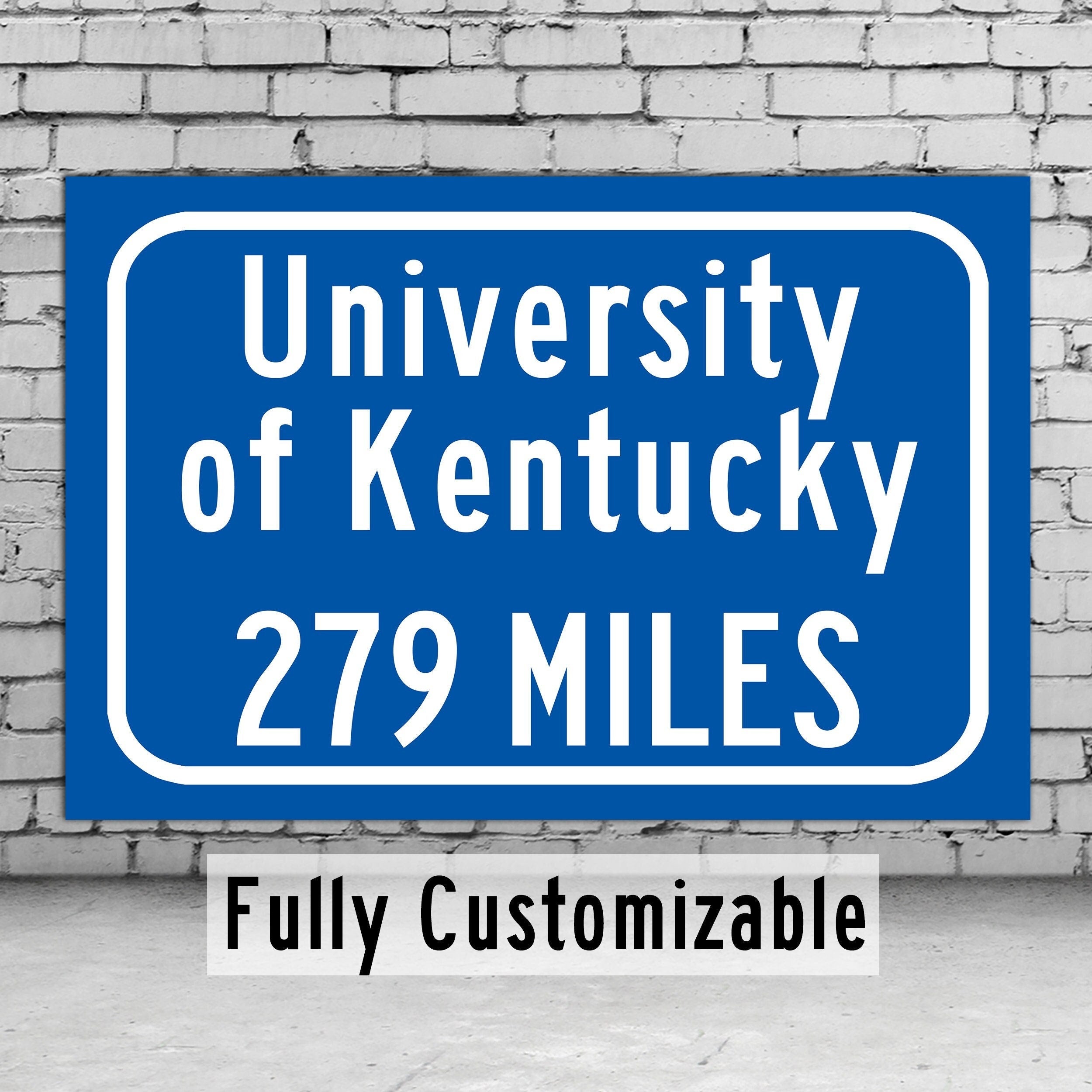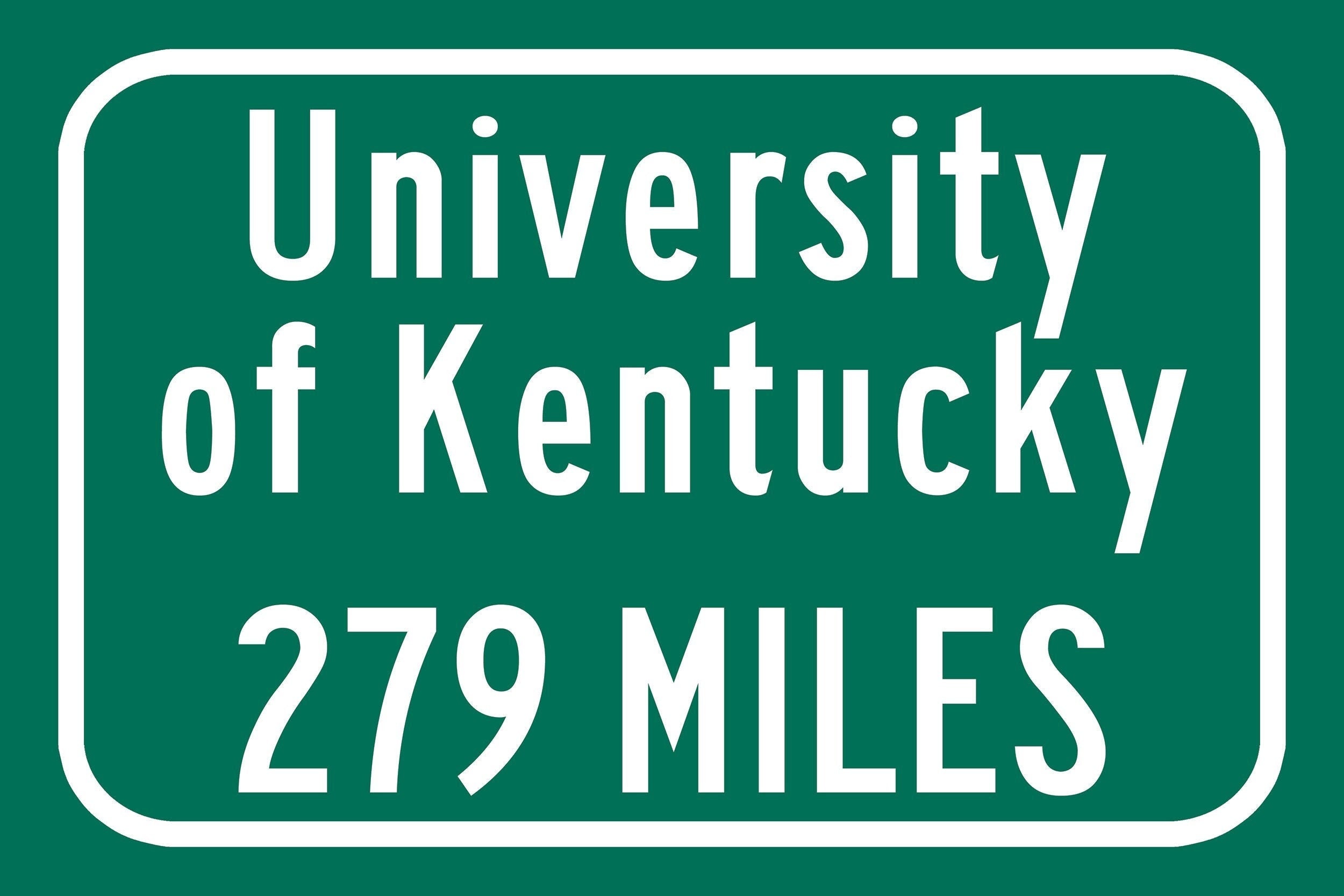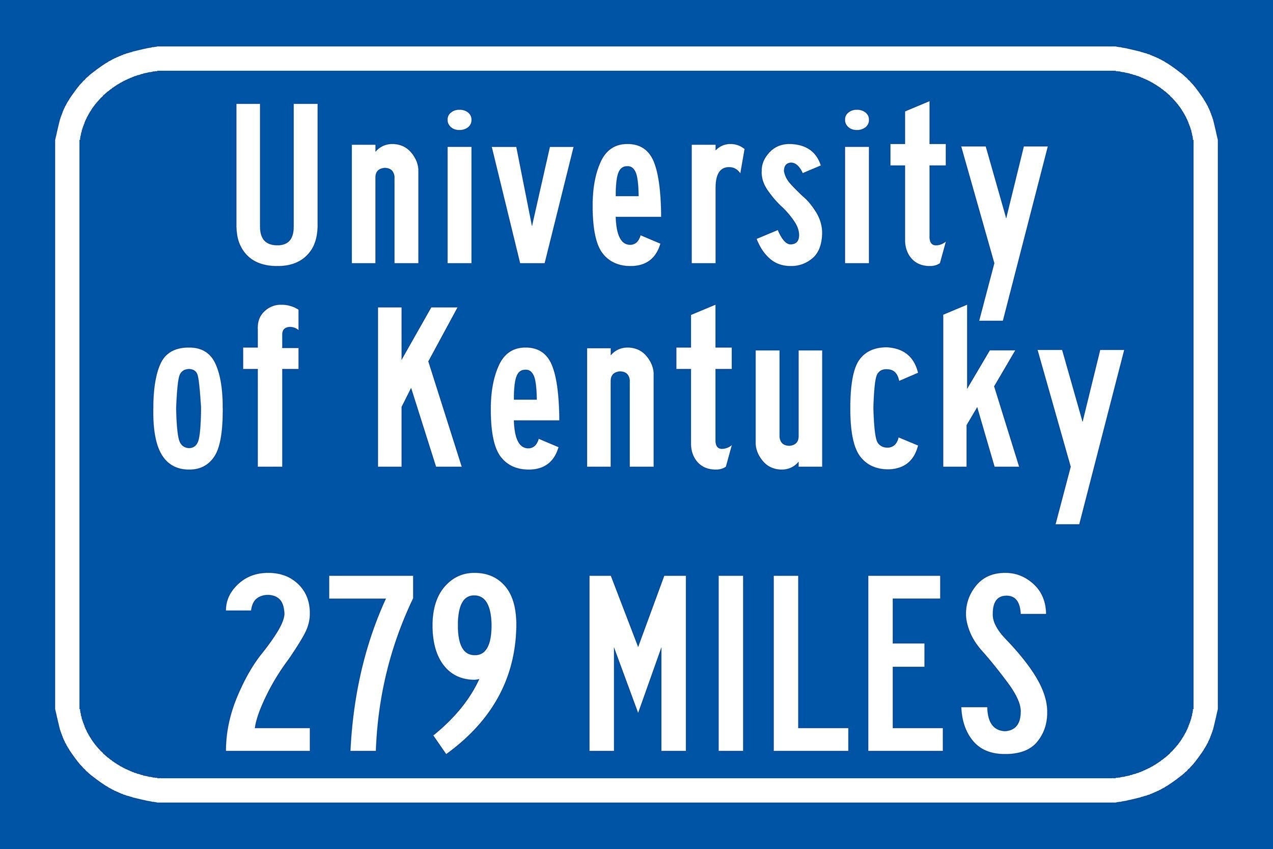 Personalized Highway Distance sign to University of Kentucky. Kentucky Wildcats