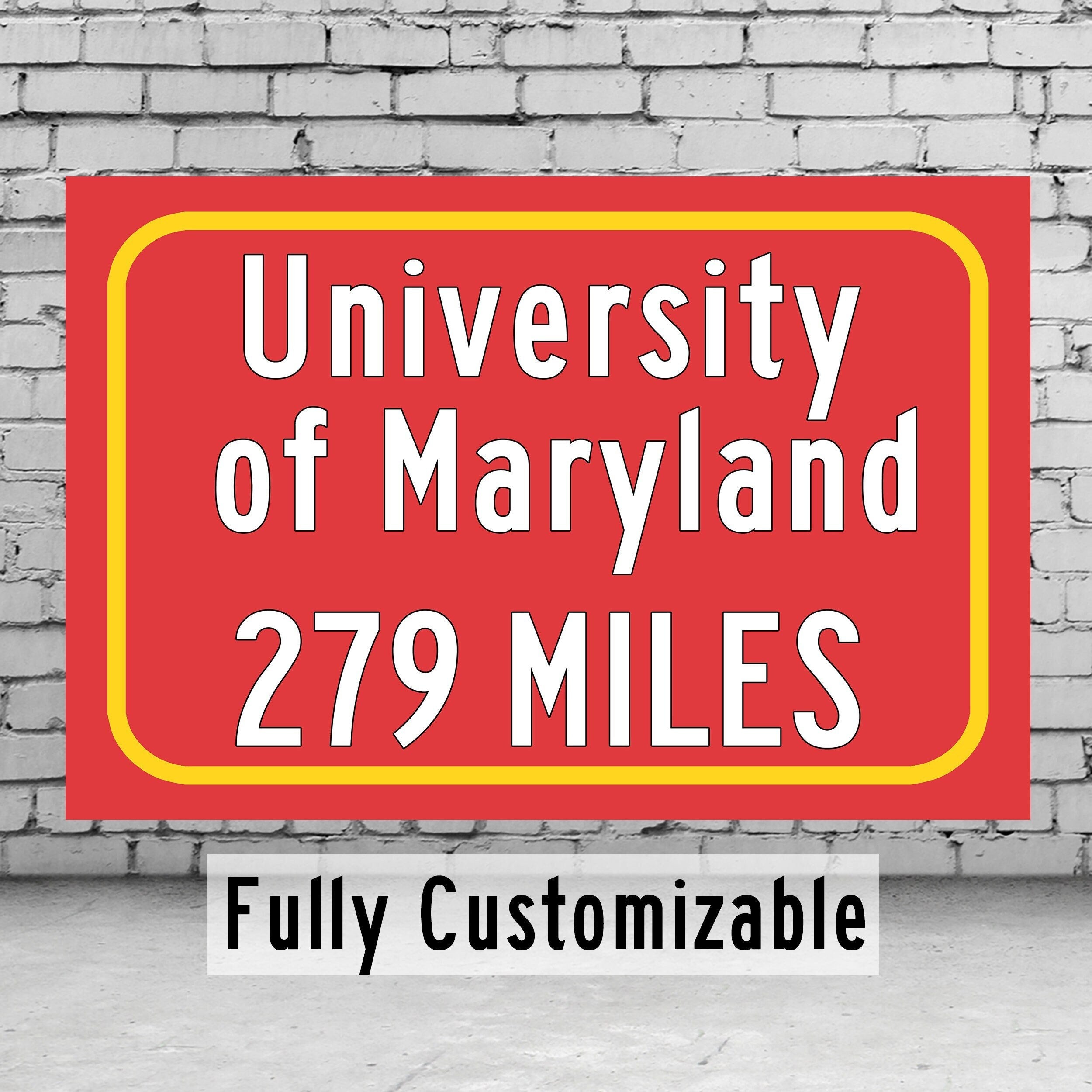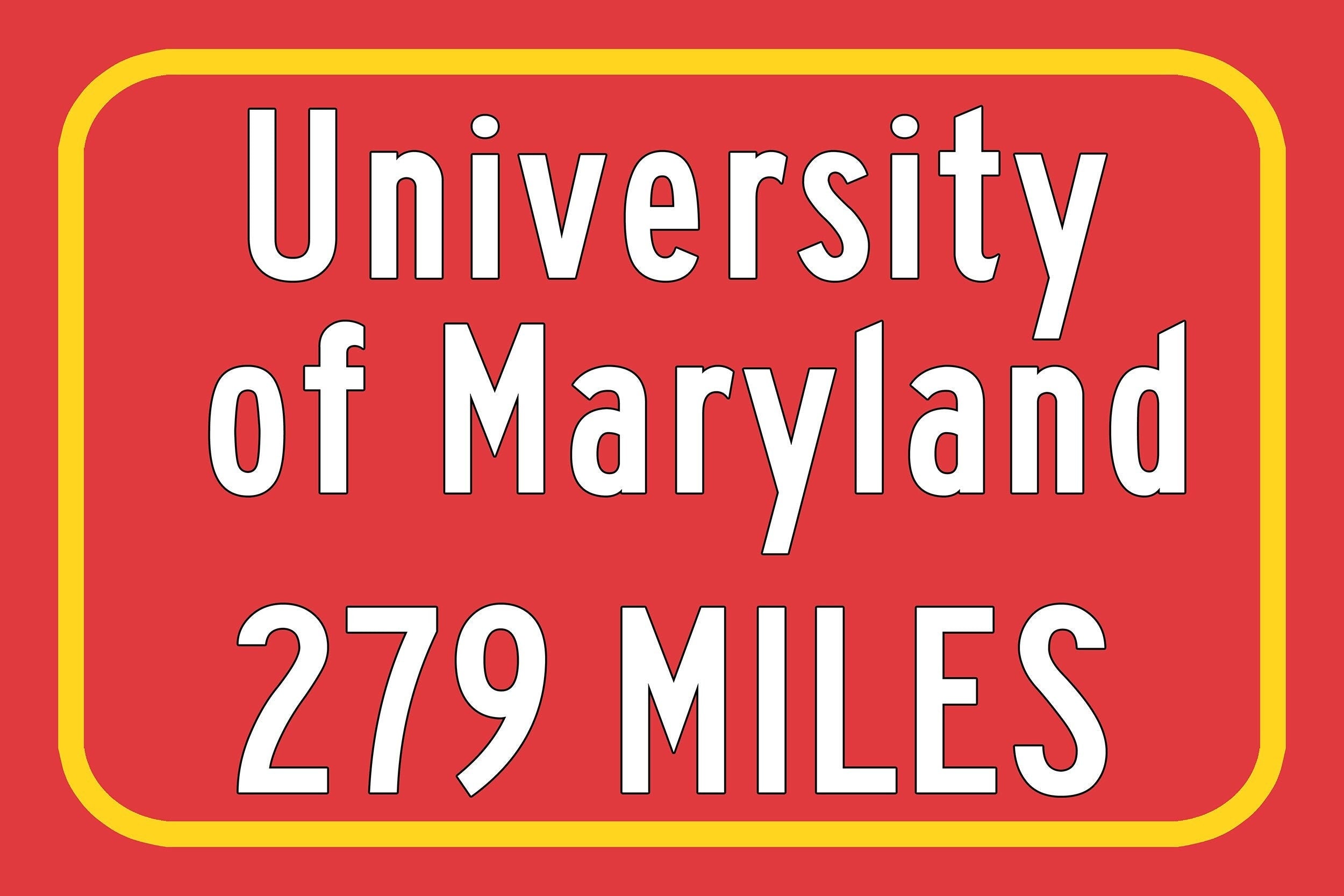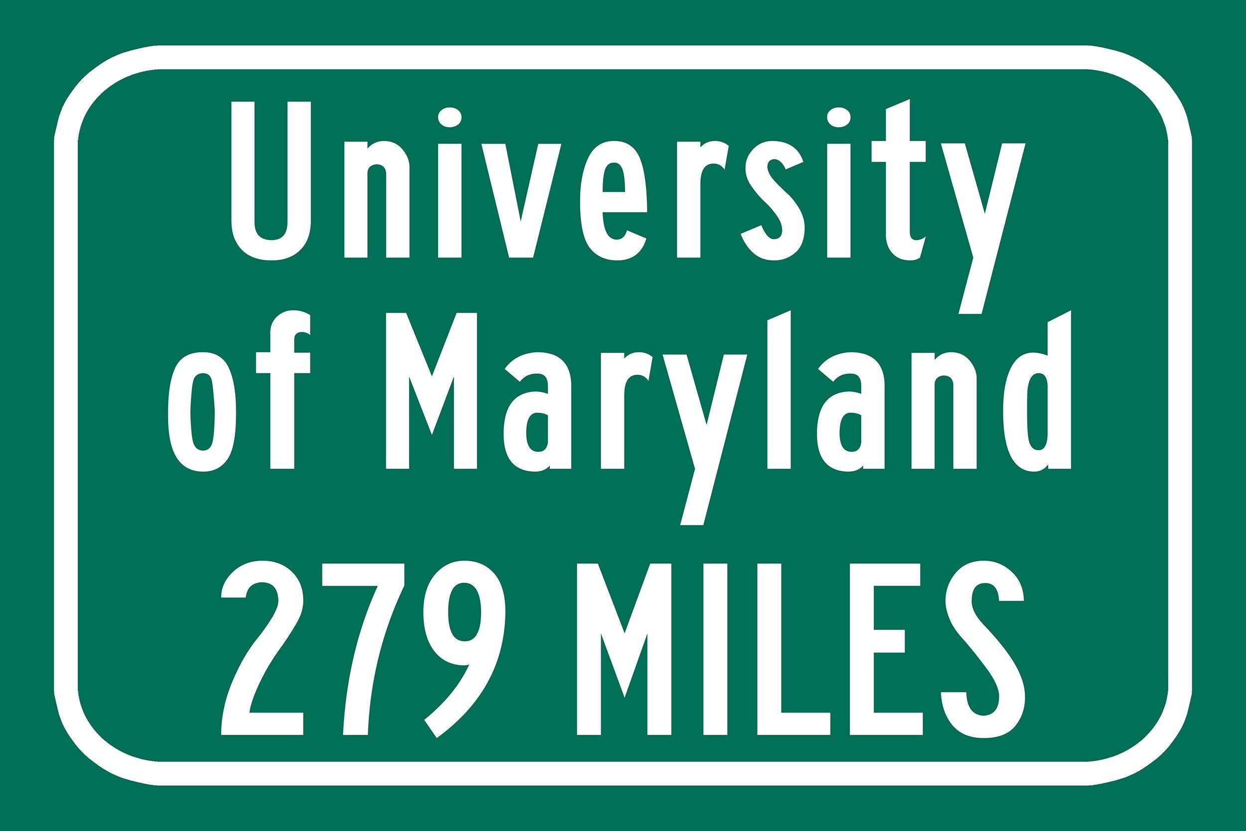 Personalized Highway Distance sign to University of Maryland Terrapins in College Park Maryland. University of Maryland Terrapins Sign