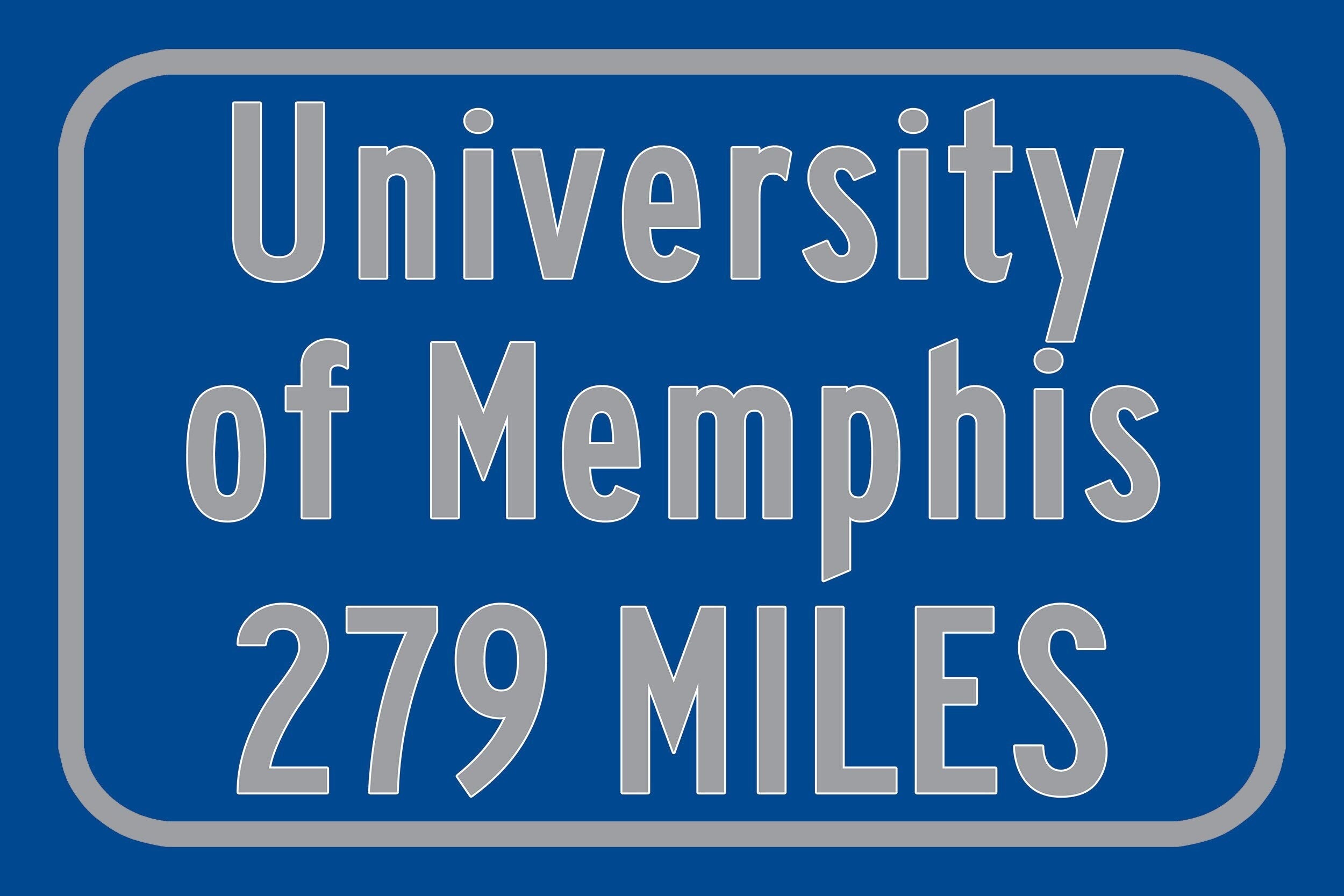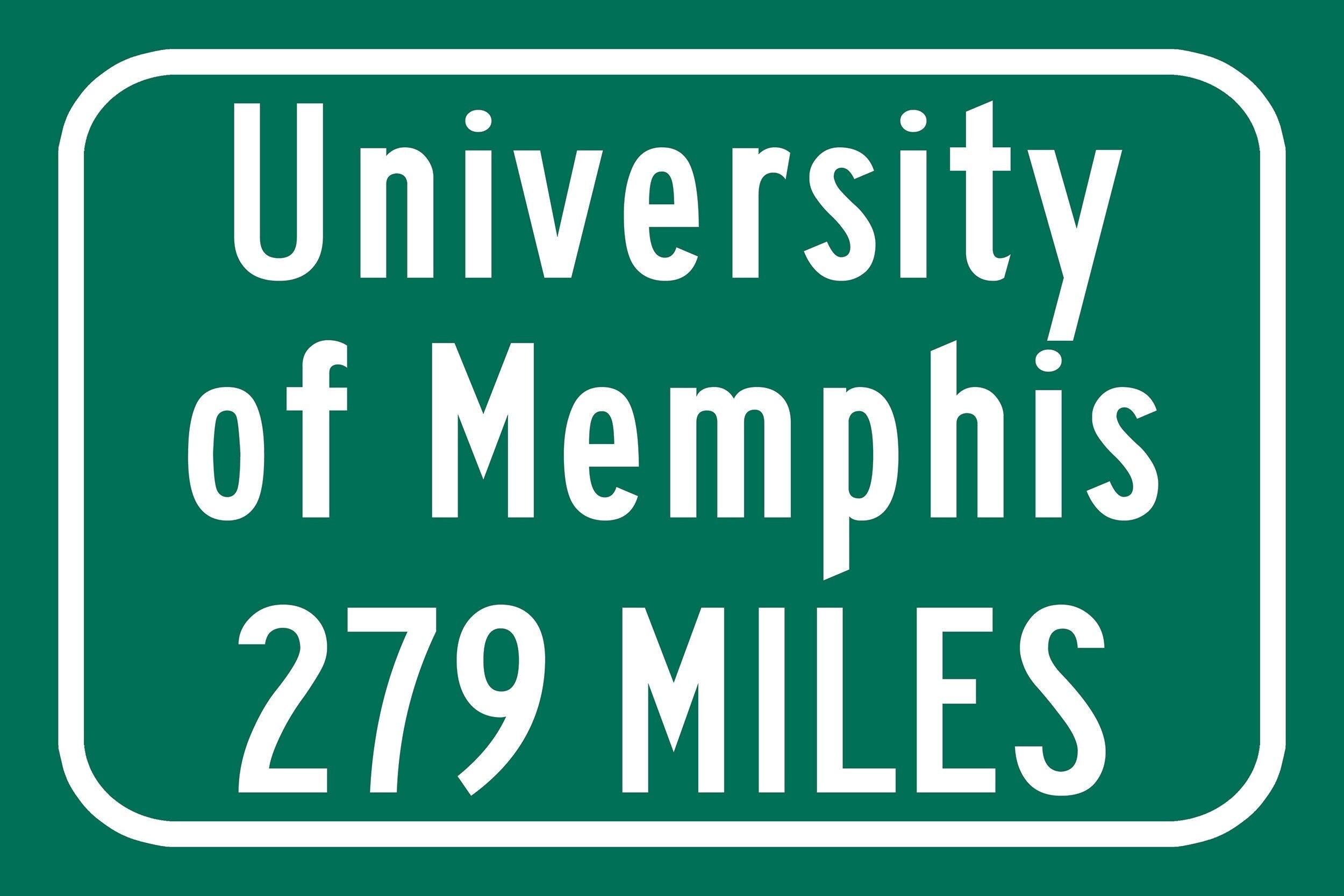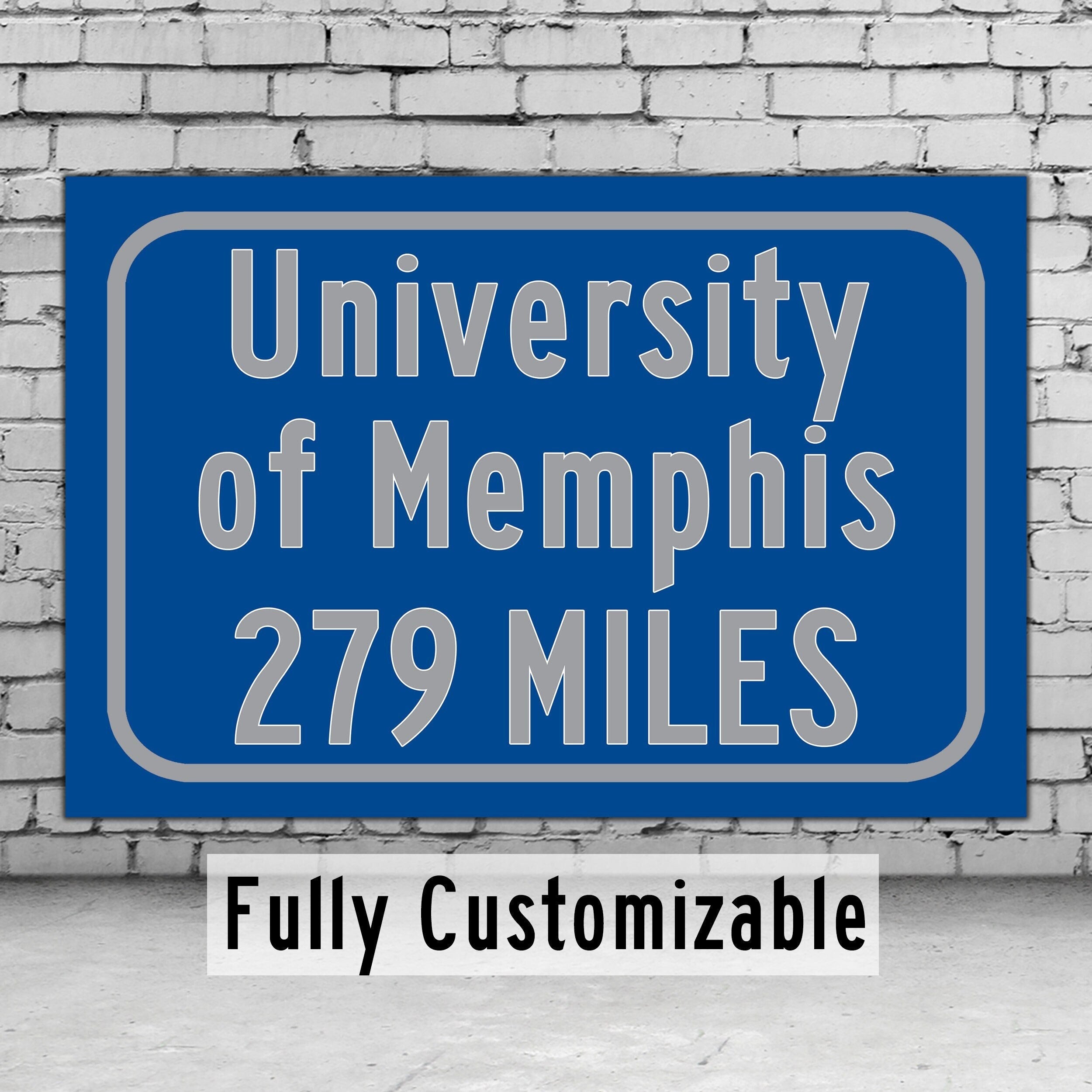 Personalized Highway Distance sign to University of Memphis. University of Memphis sign. Memphis Tigers sign.