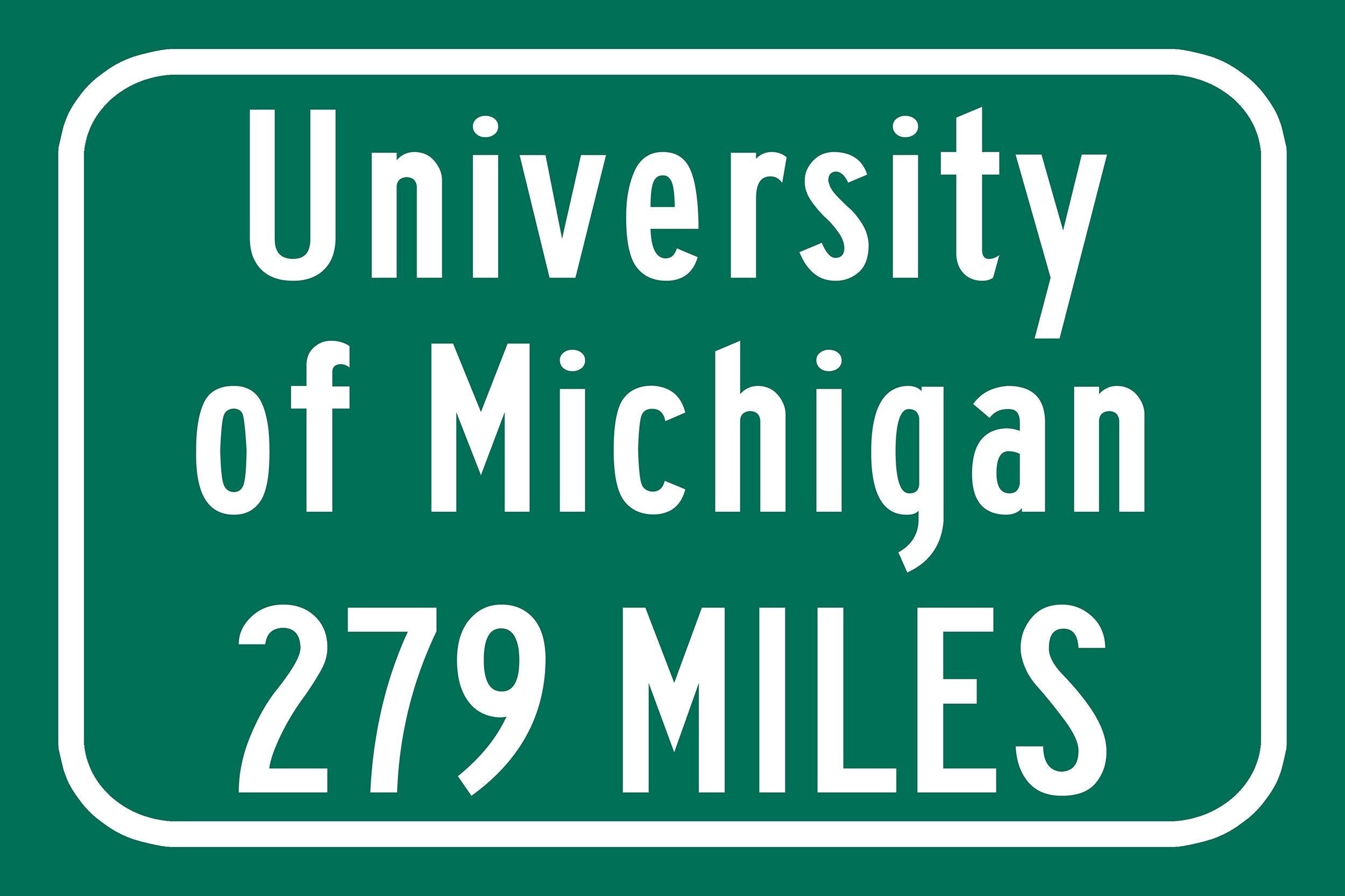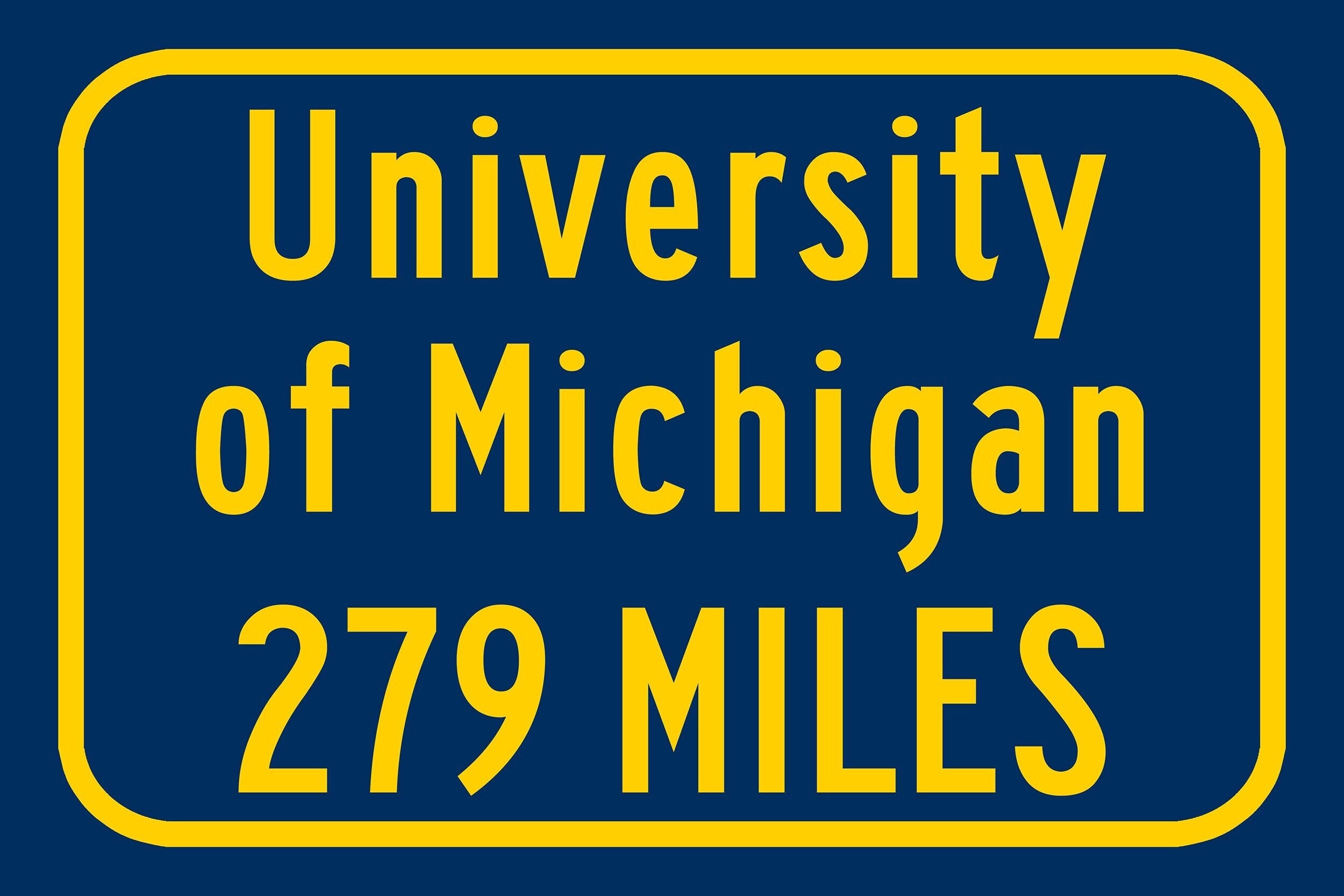 Personalized Highway Distance sign to the University of Michigan Anne Arbor . University of Michigan Sign