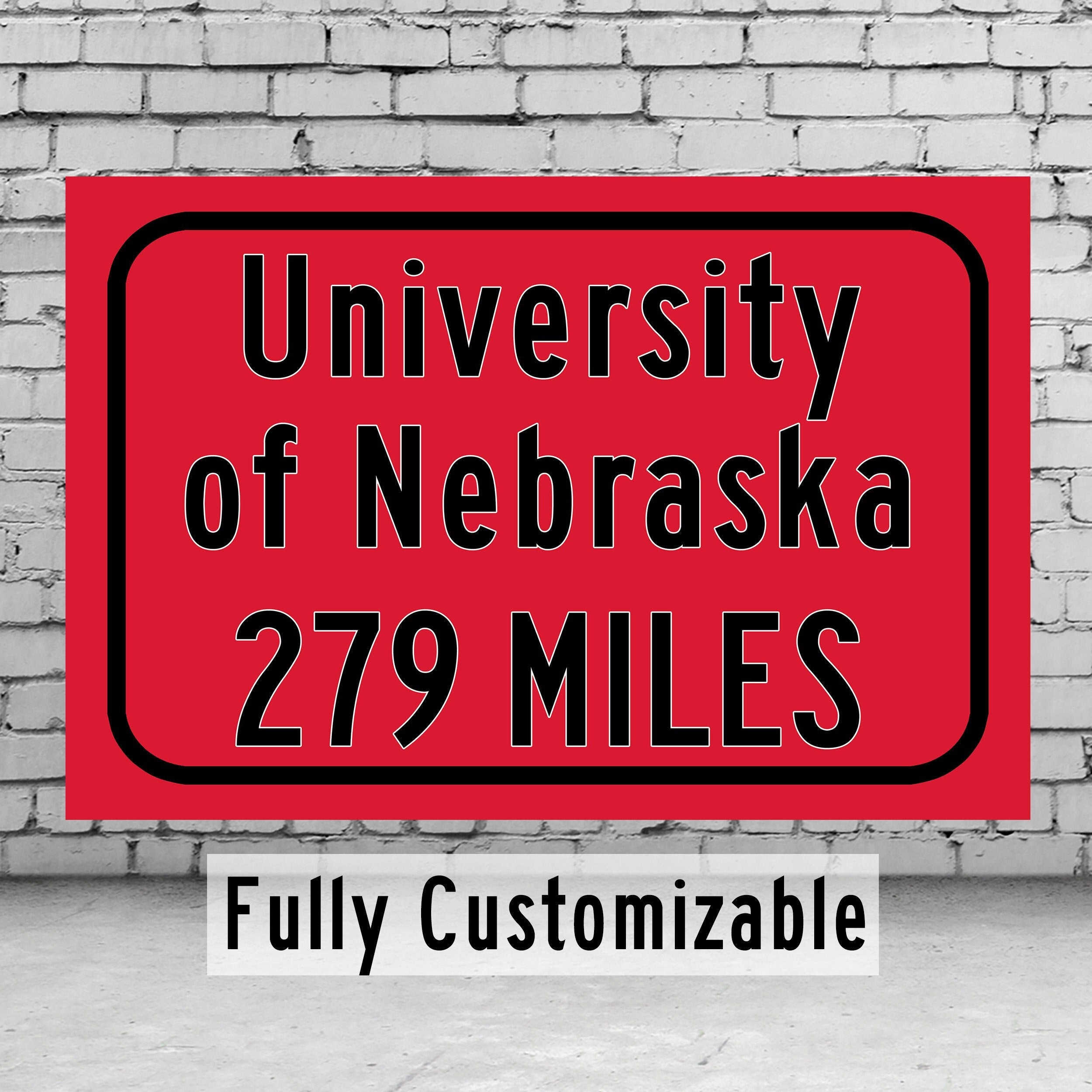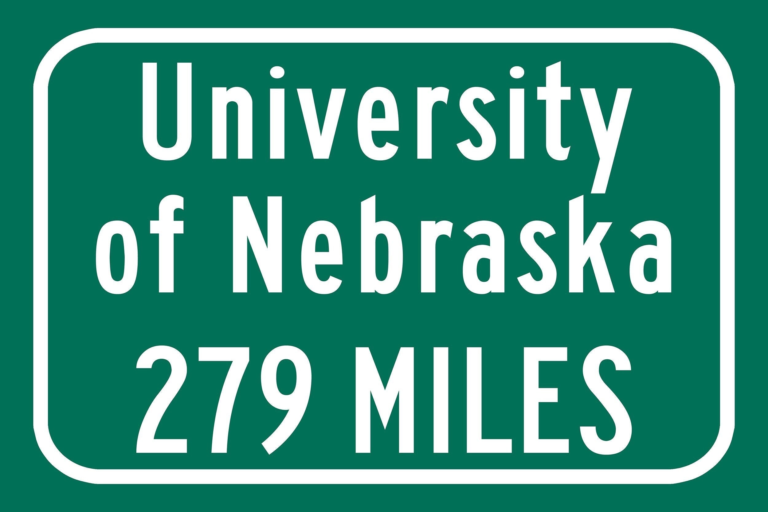 Personalized Highway Distance sign to The University of Nebraska Cornhuskers in Lincoln. University of Nebraska Cornhuskers Sign