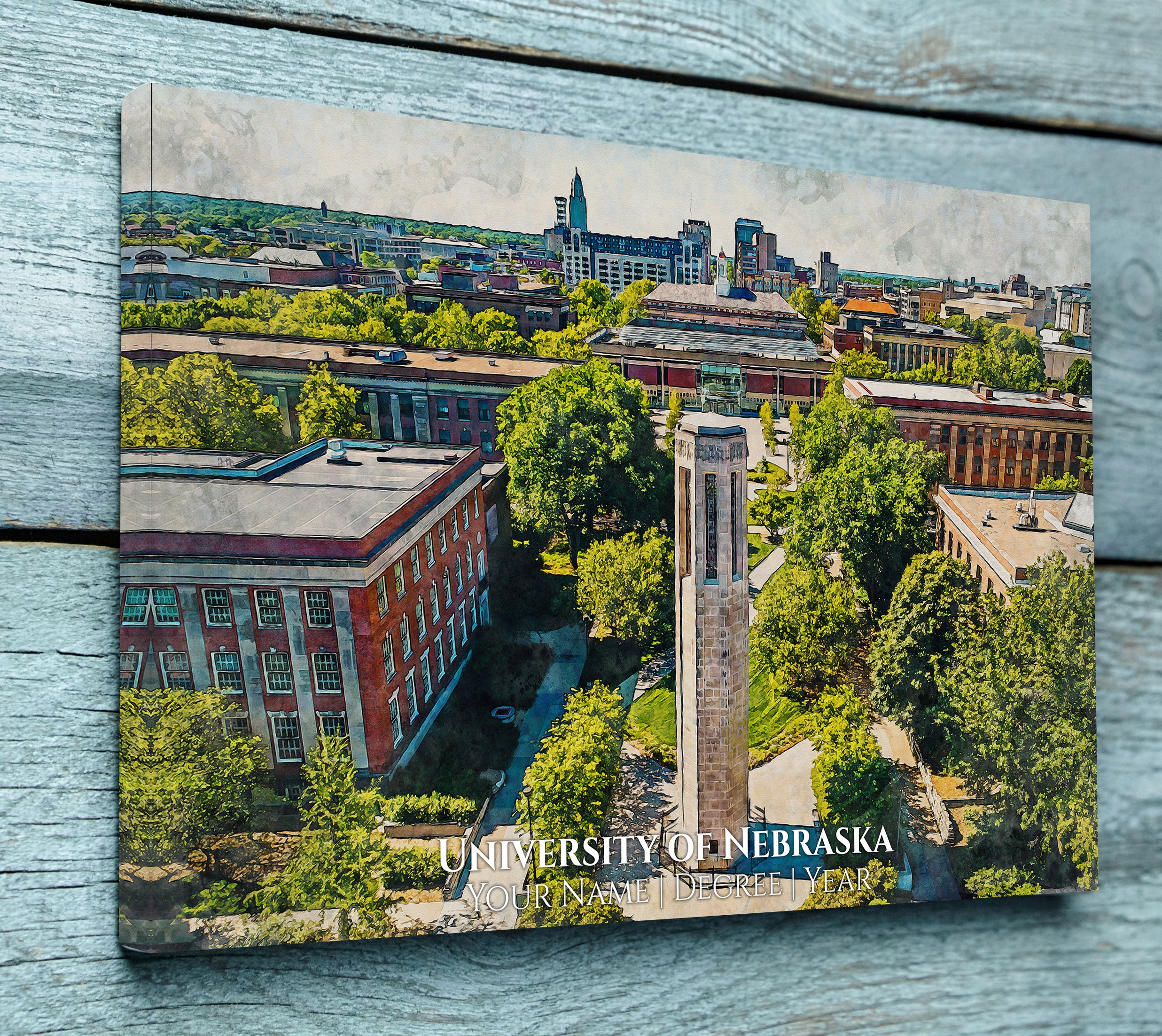 You will love these watercolor digital prints of University of Nebraska. Perfect for a graduation gift. These make wonderful gift for University of Nebraska Alumni and fans. Feel free to customize it as well when you check out. We will send a proof for you to approve before we print so please check your email about 24hrs after you order