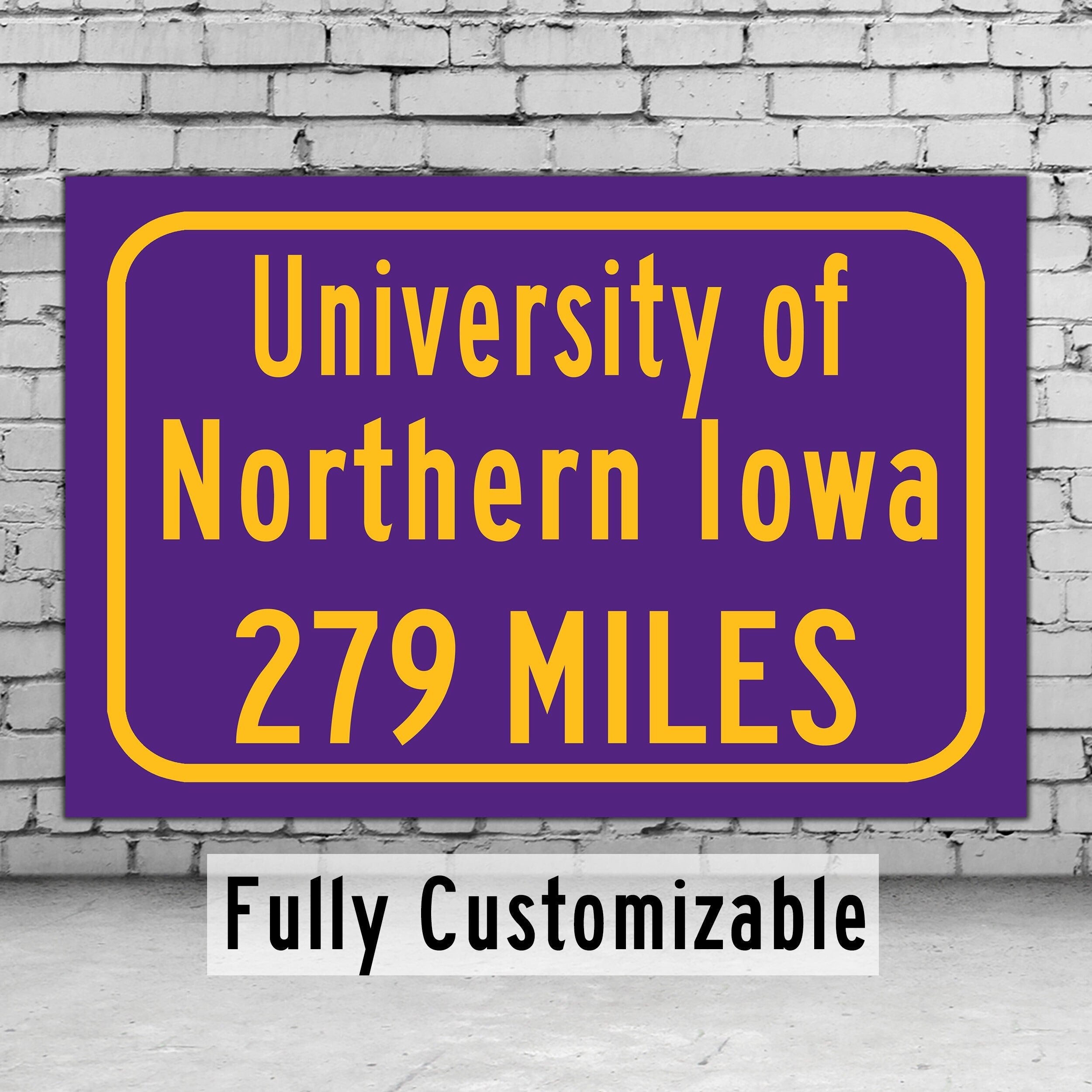 Personalized Highway Distance sign to University of Northern Iowa / Cedar Falls Iowa / Northern Iowa Panthers /