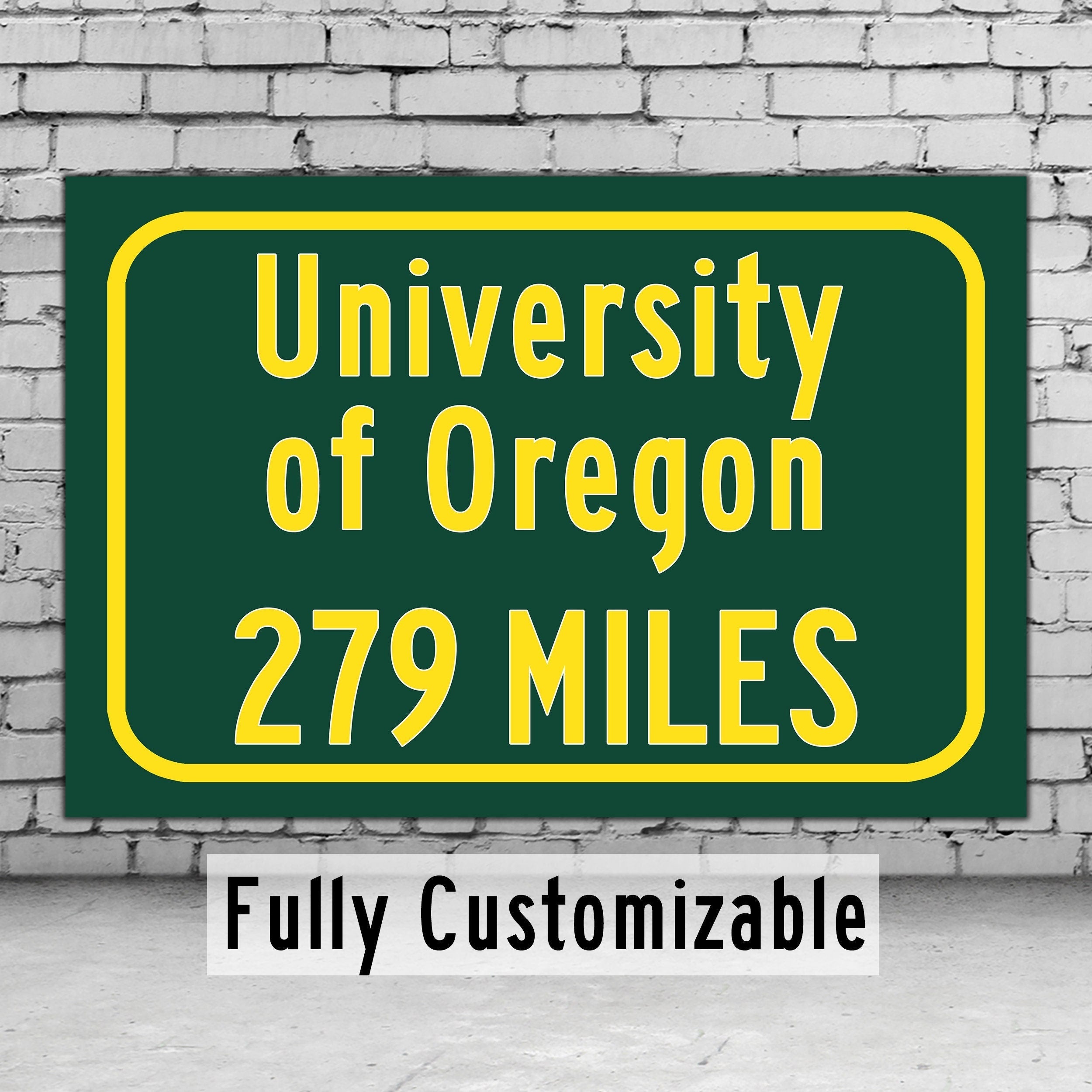 Personalized Highway Distance sign to University of Oregon / Oregon Ducks / Eugene Oregon /