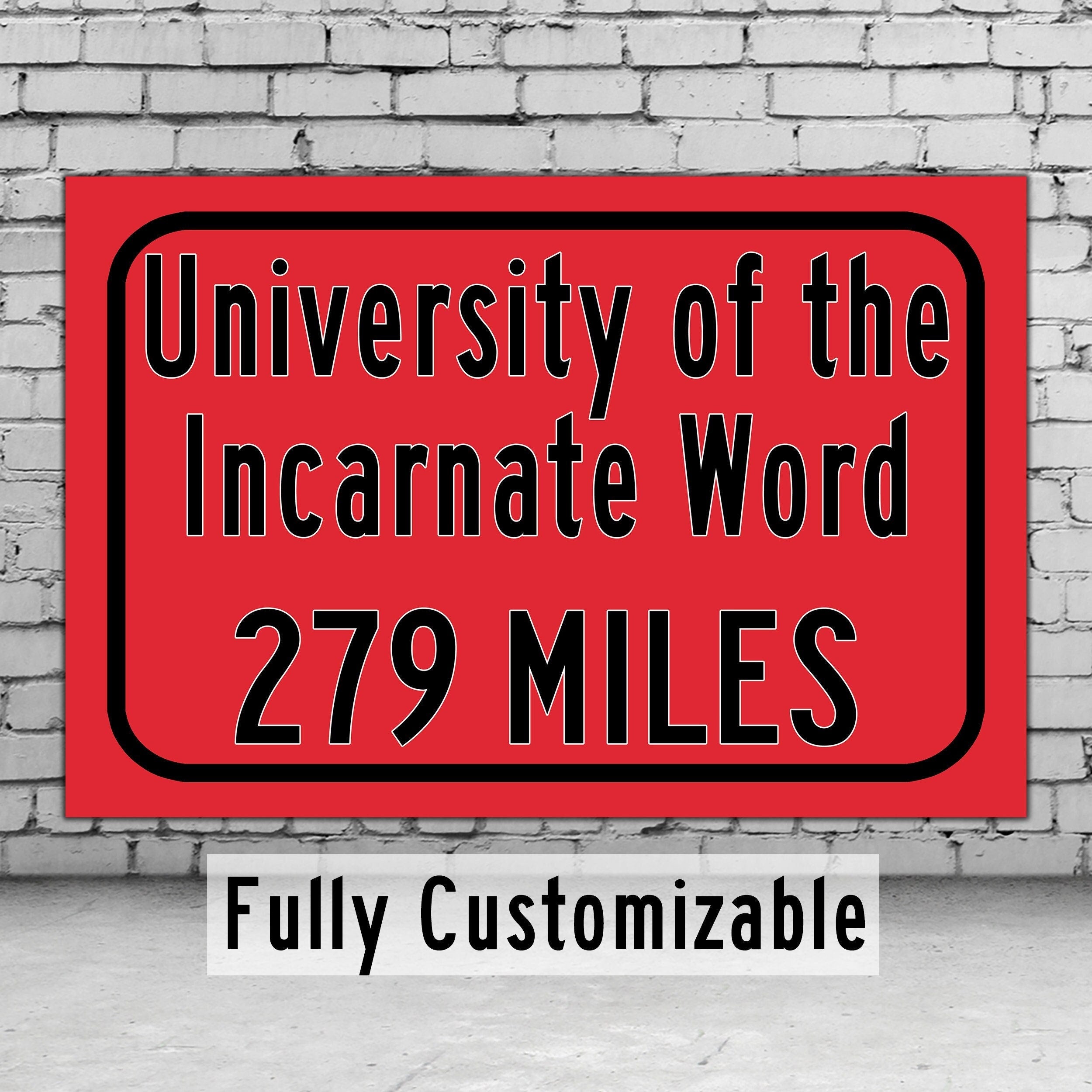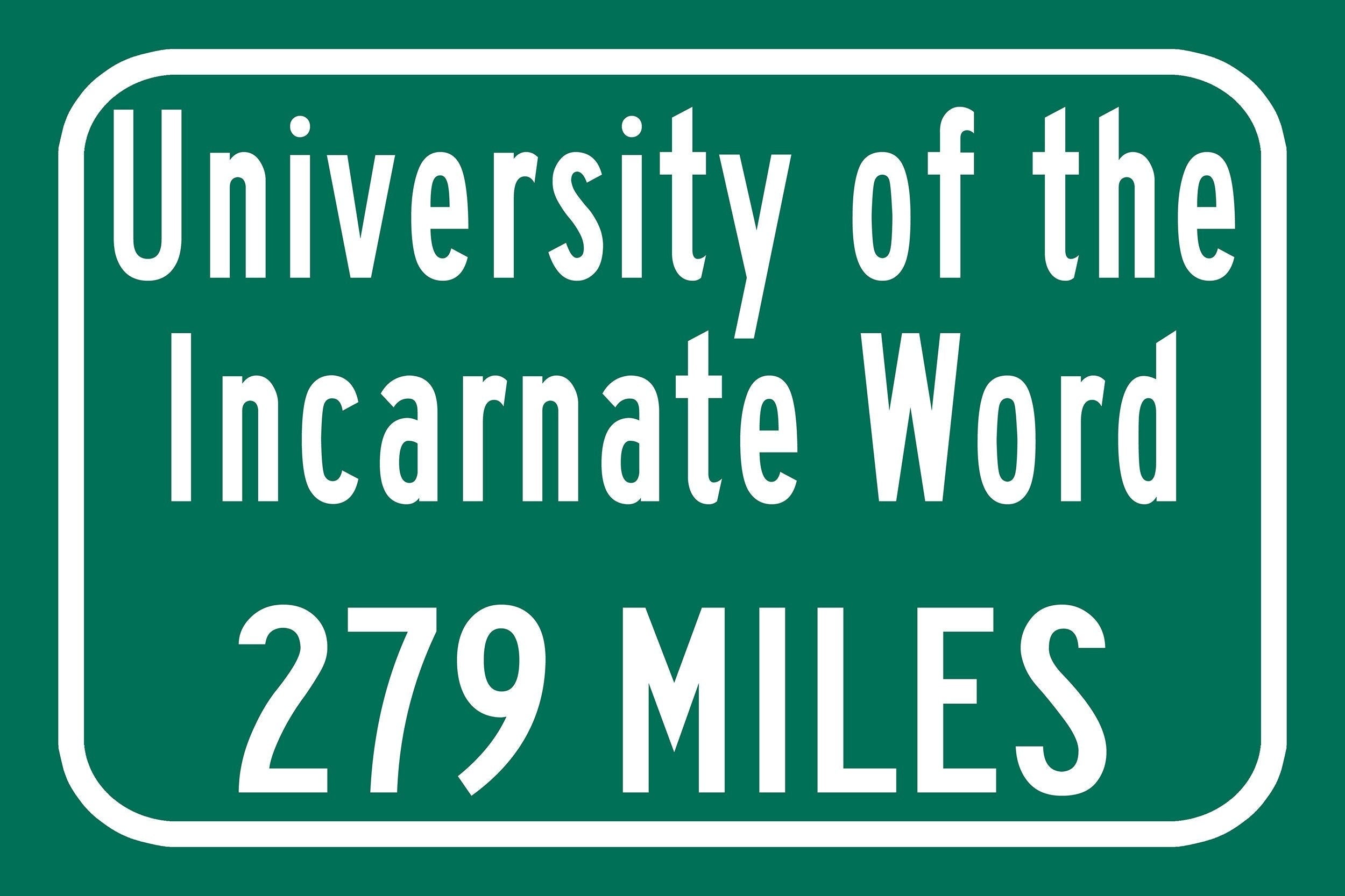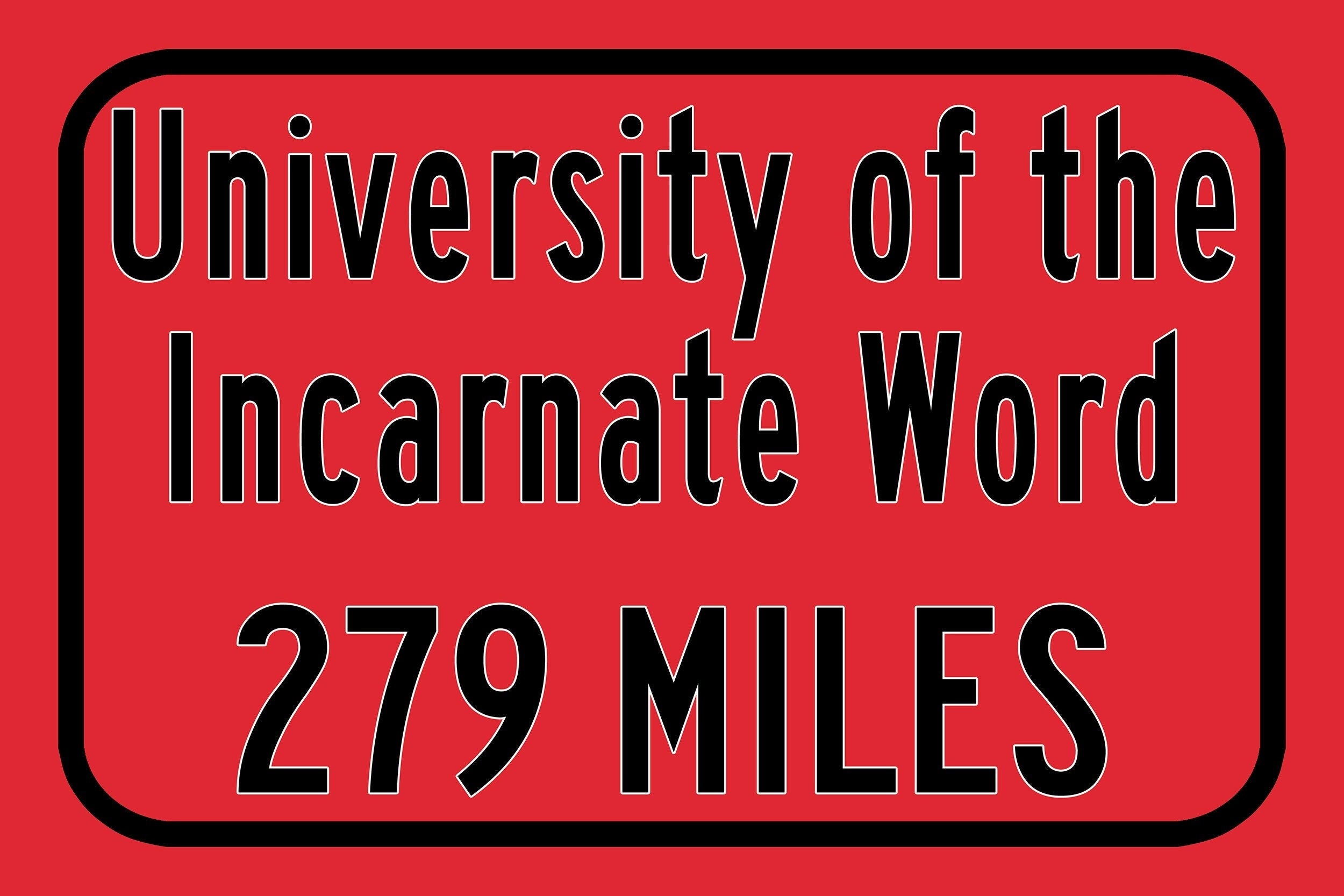 University of the Incarnate Word / Custom College Highway Distance Sign / Incarnate Word Cardinals / San Antonio Texas