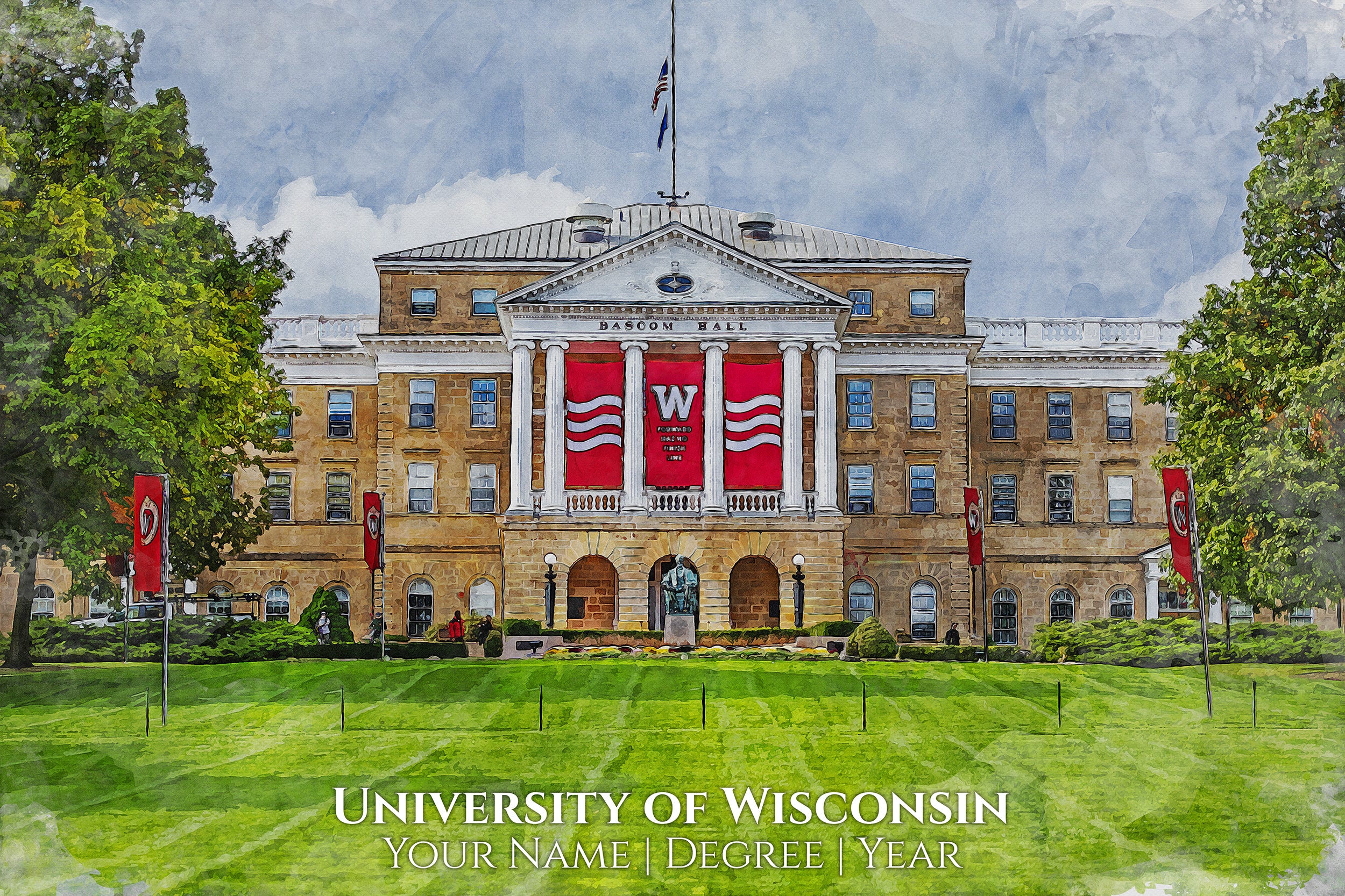 You will love these watercolor digital prints of University of Wisconsin – Madison. Perfect for a graduation gift. These make wonderful gift for University of Wisconsin – Madison, graduates, and fans. Feel free to customize it as well when you check out. We will send a proof for you to approve before we print so please check your email about 24hrs after you order