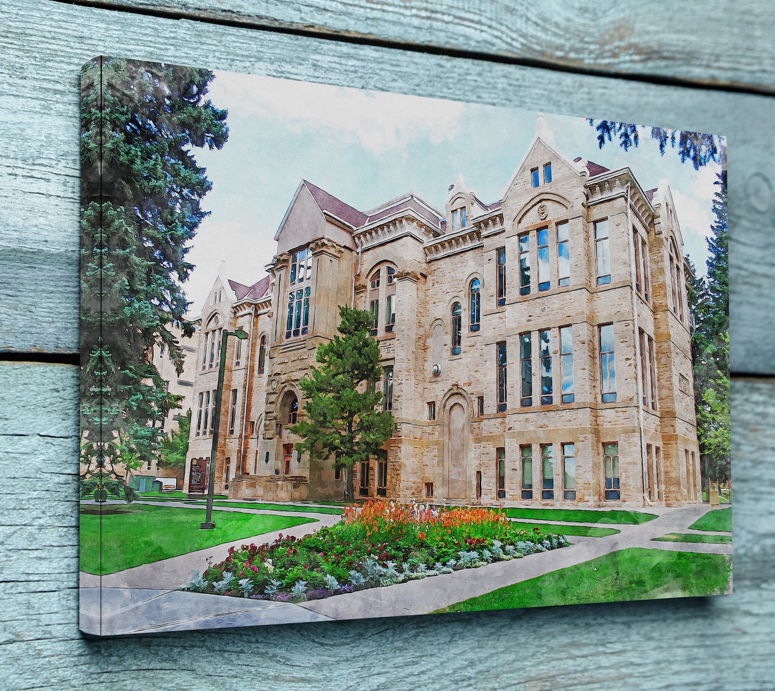 University of Wyoming watercolor. Graduation gift, University of Wyoming, College wall art, College WC