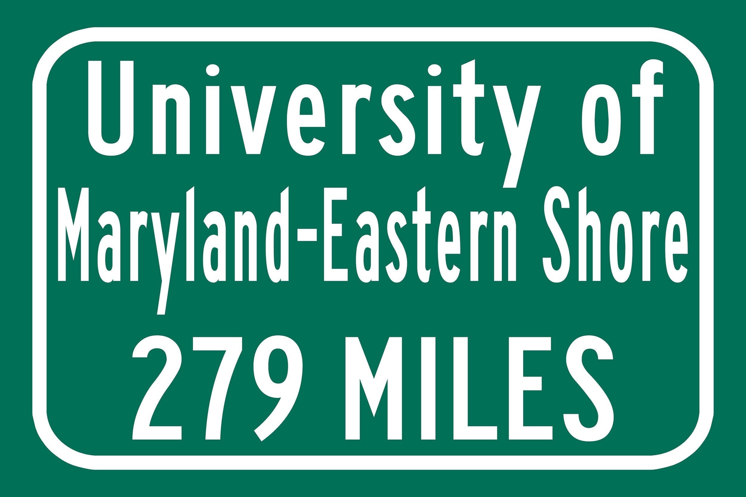 Personalized Highway Distance sign to UOM Eastern Shore / Eastern Shore Hawks / Princess Anne Maryland