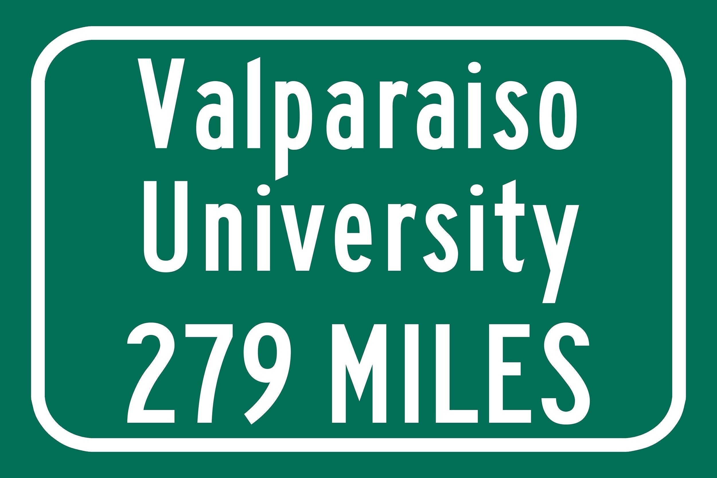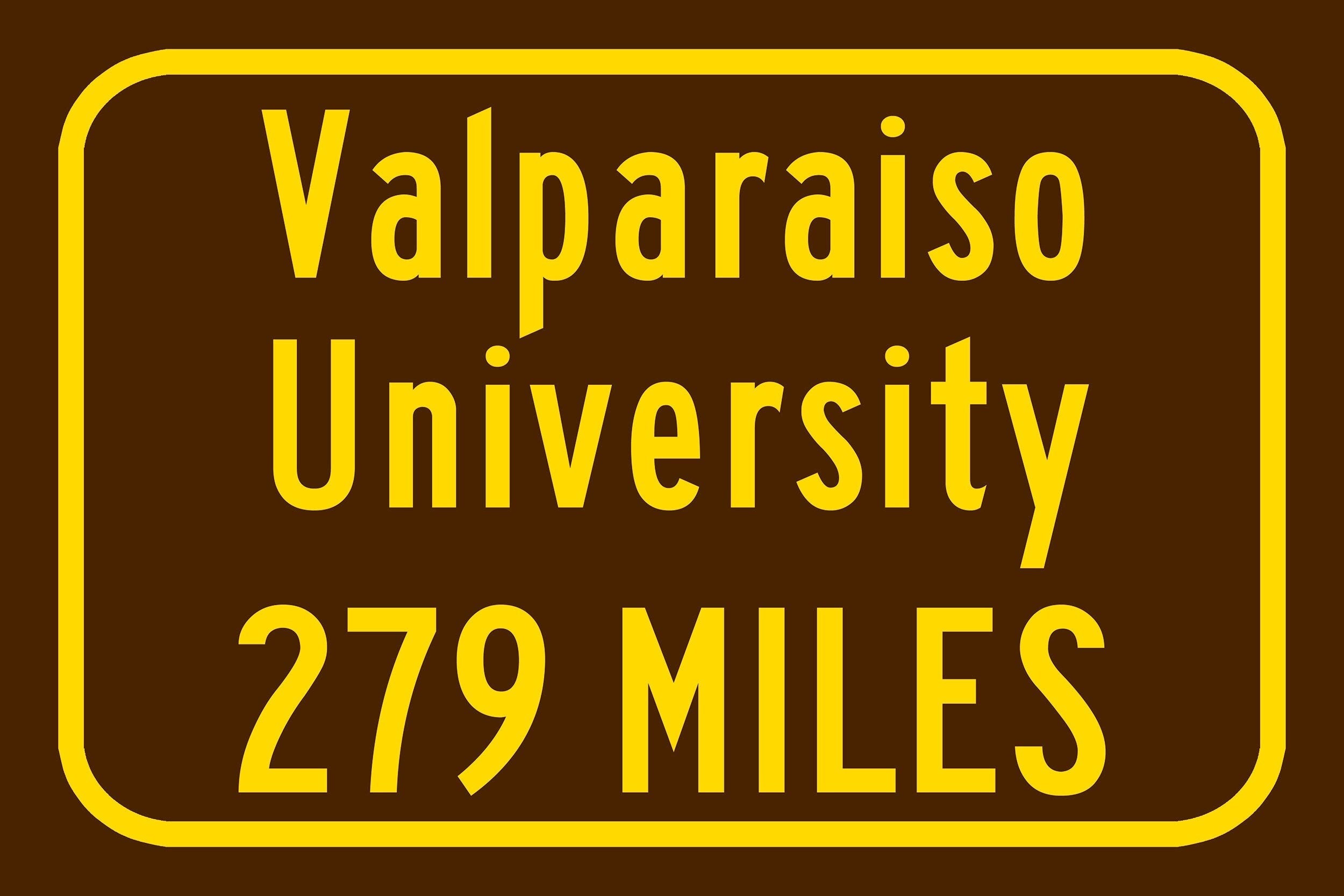 Personalized Highway Distance sign to Valparaiso University / Valparaiso Beacons / Valparaiso Indiana /