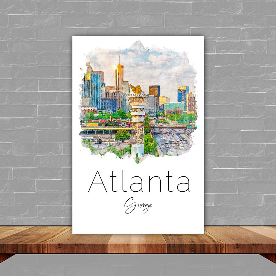 Introducing our breathtaking Atlanta wall art canvas, a luxurious addition to your home decor that promises to elevate any room with its vibrant colors and striking watercolor depiction of the iconic Atlanta skyline.