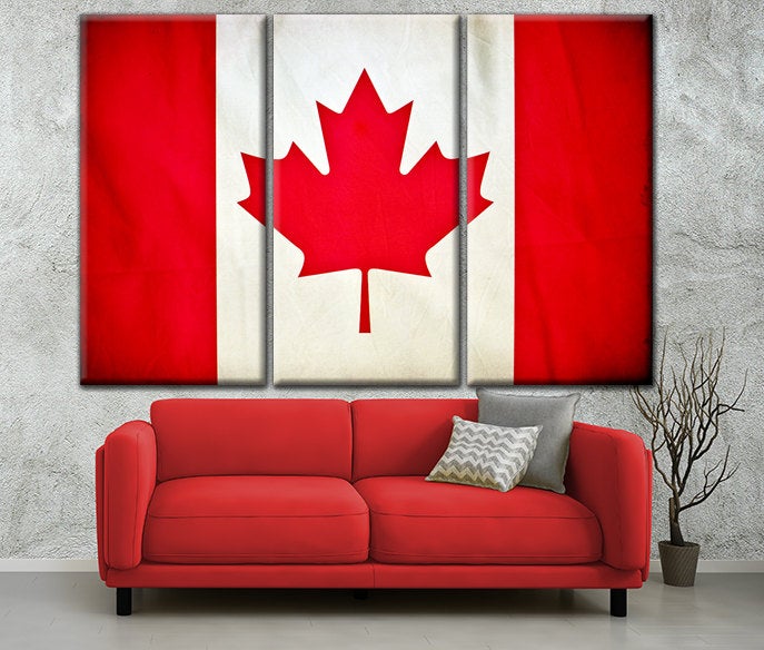 Vintage created Canada Flag. Show your Canadian Pride. Great for a piece of wall art. Available as a SINGLE canvas at 16″ x 24″ , 24″ x 36″ , or 32″ x 48″ or a 3 panel work of art canvas as 5 x 3 foot wide.