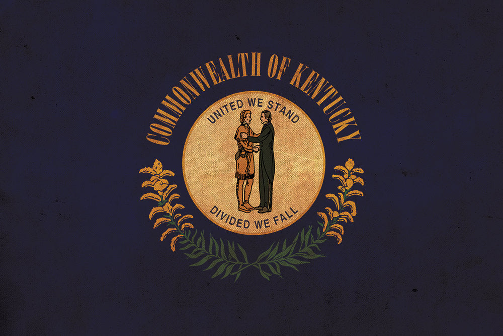 Vintage created Kentucky Flag. Show your Kentucky Pride. Great for a piece of wall art. Available as a SINGLE canvas at 16″ x 24″ , 24″ x 36″ , or 32″ x 48″ or a 3 panel work of art canvas as 5 x 3 foot wide.