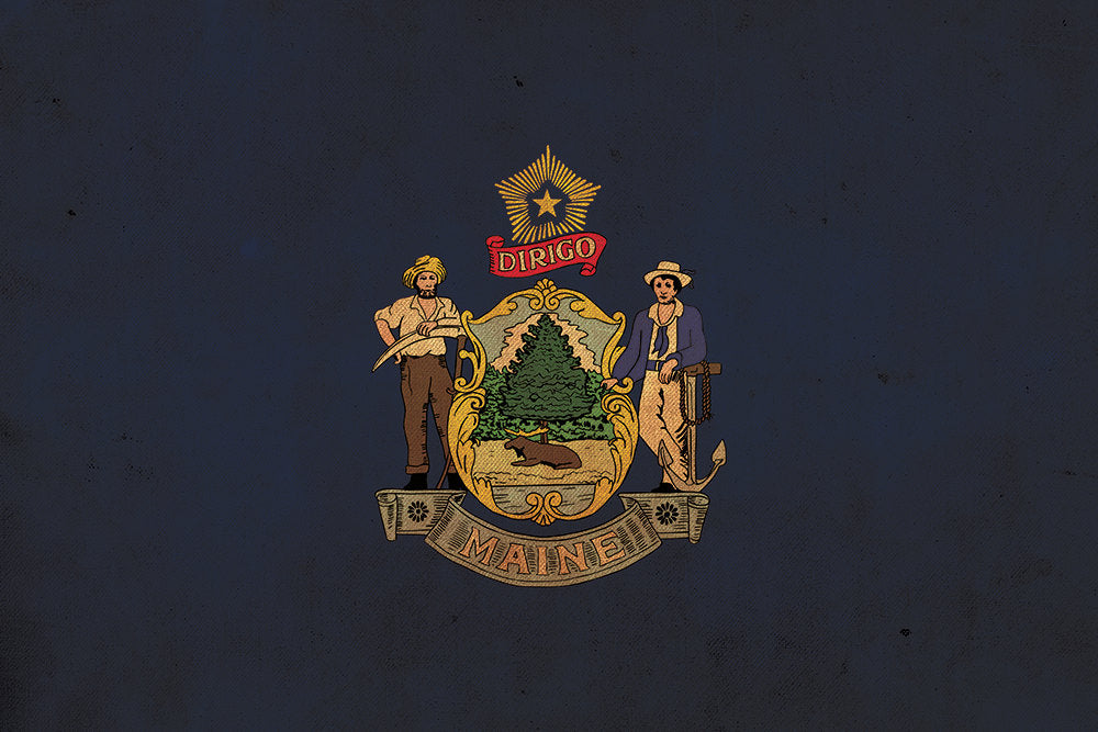 Vintage created Maine Flag. Show your northeast Pride. Great for a piece of wall art. Available as a SINGLE canvas at 16″ x 24″ , 24″ x 36″ , or 32″ x 48″ or a 3 panel work of art canvas as 5 x 3 foot wide.