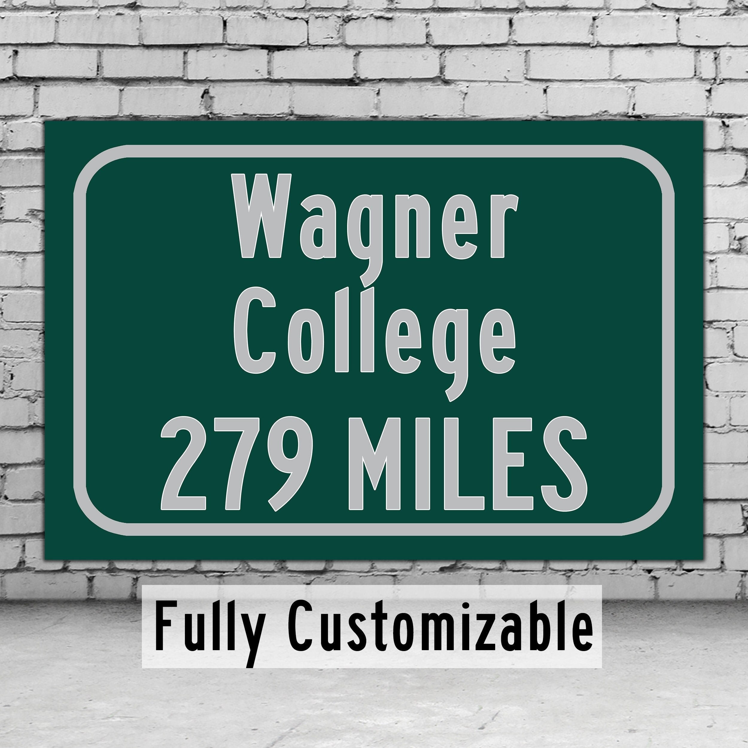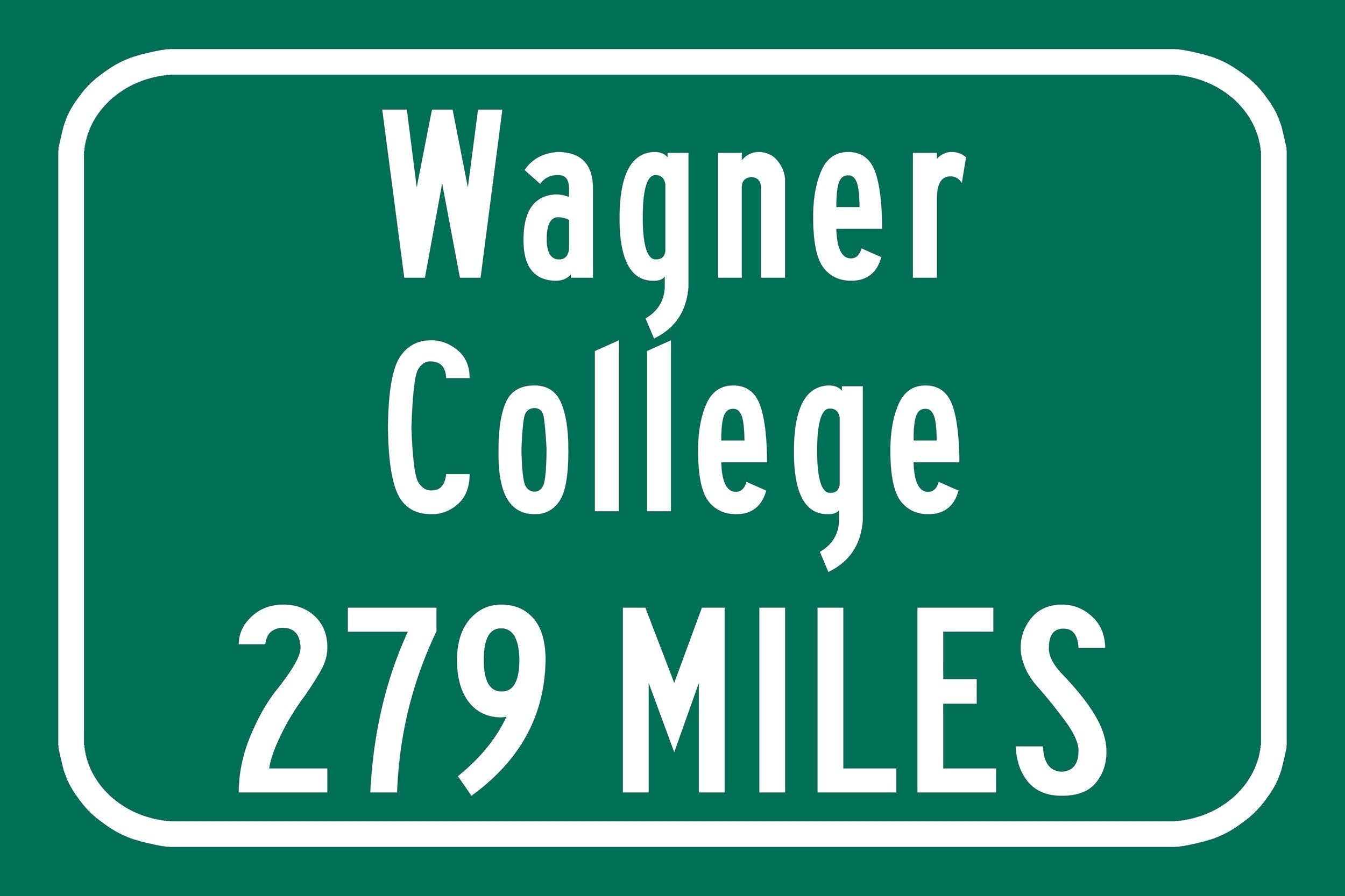 Personalized Highway Distance sign to Wagner College / Wagner Seahawks / New York New York /