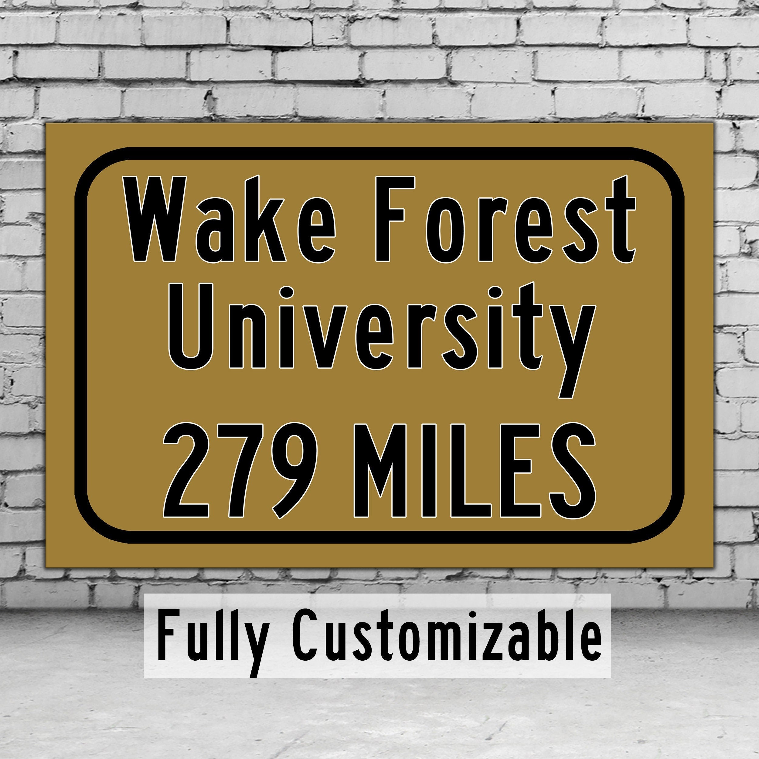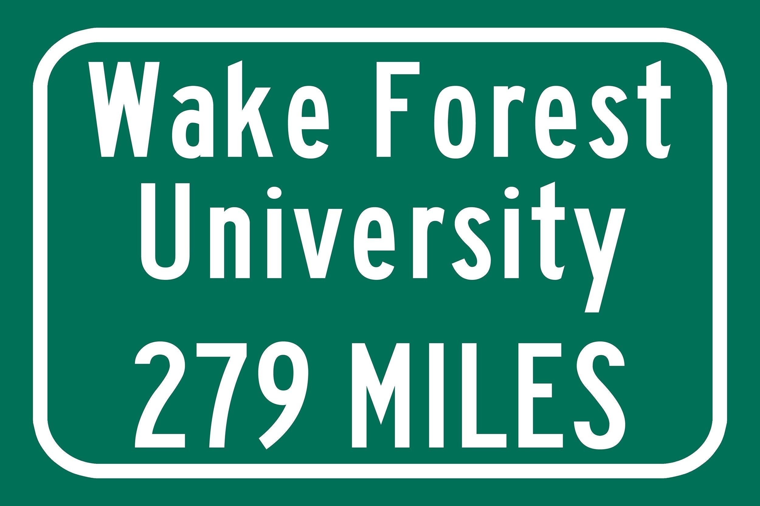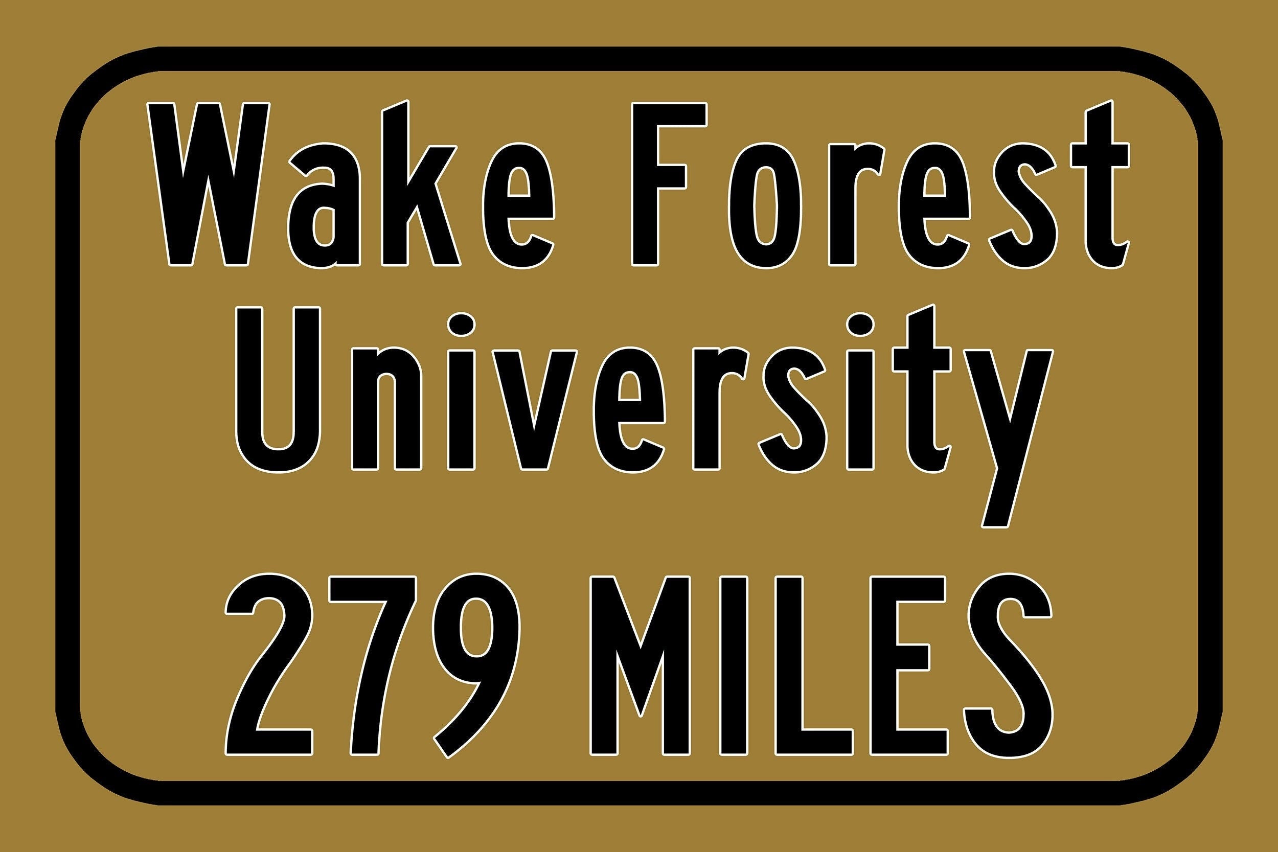 Personalized Highway Distance sign to Wake Forest University . Wake Forest University sign. Wake Forest Demon Deacons sign.