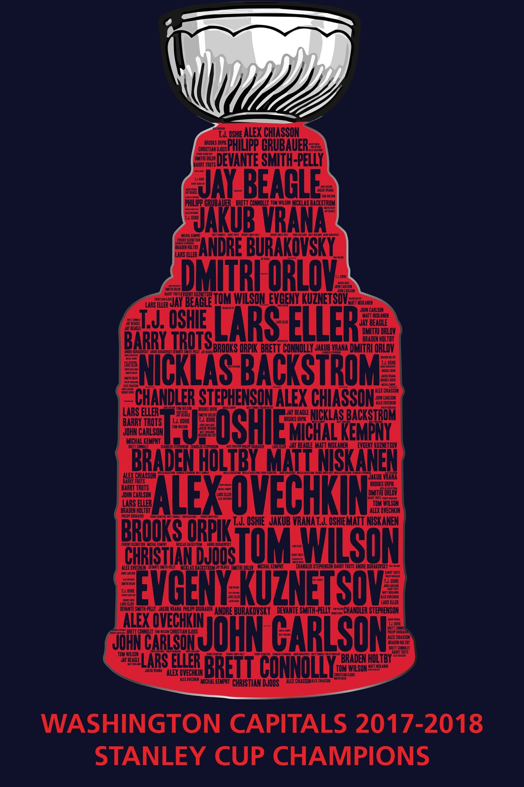 Beautiful print of the Washington Capitals Stanley Cup trophy Includes names of all players on championship team.